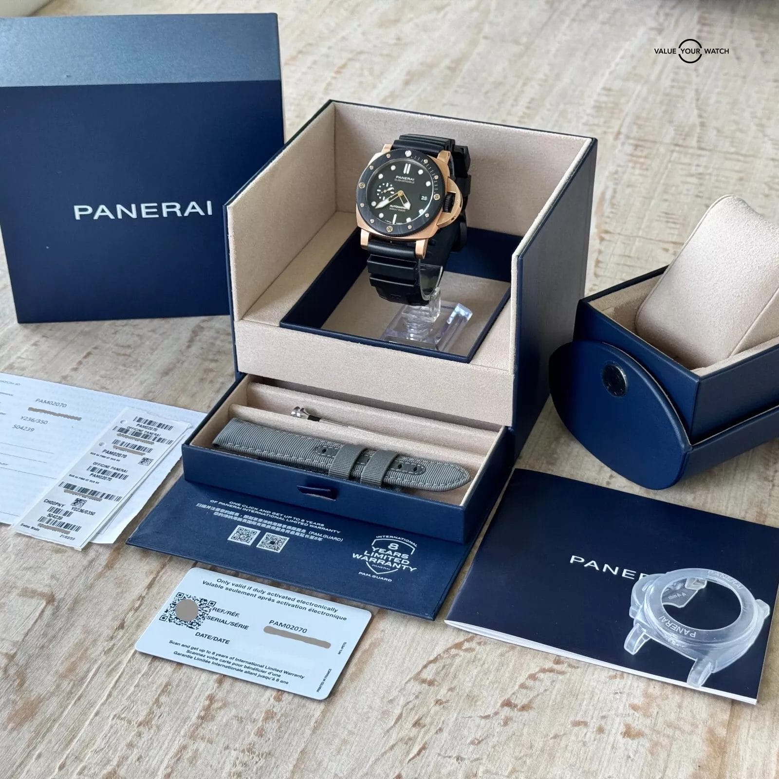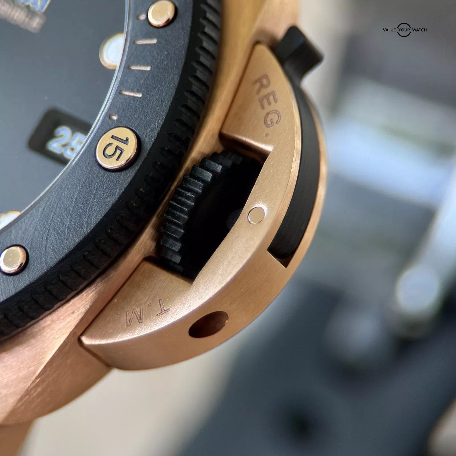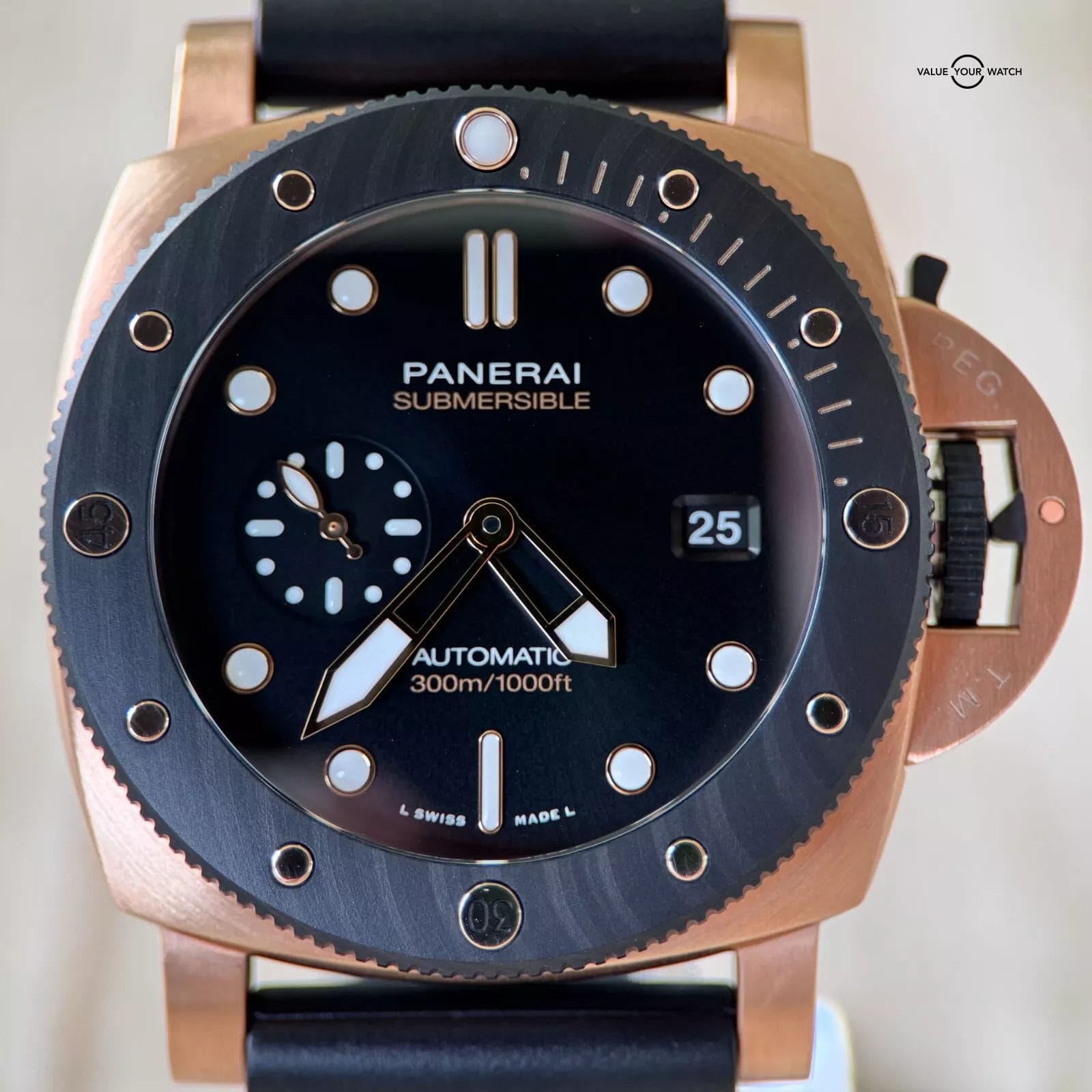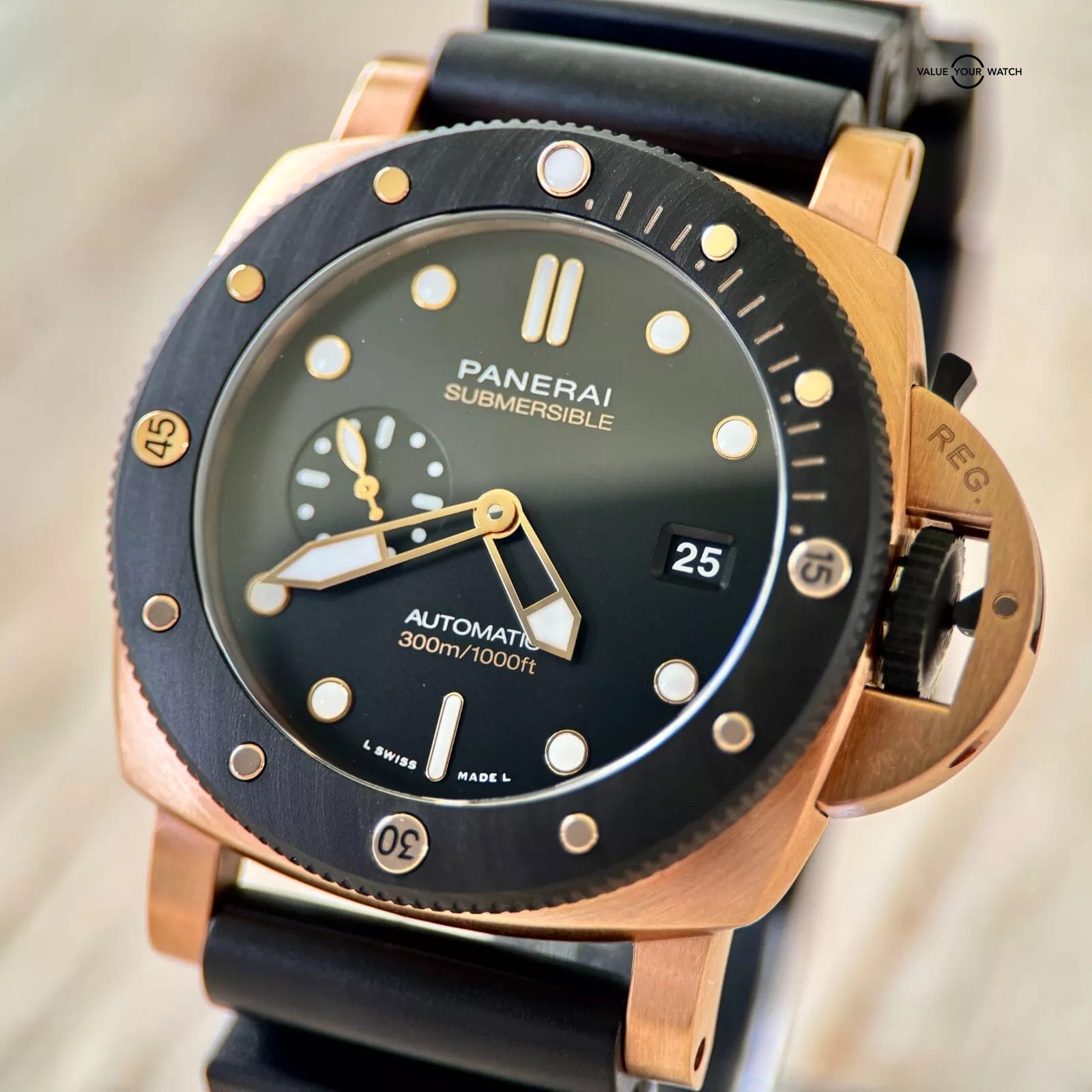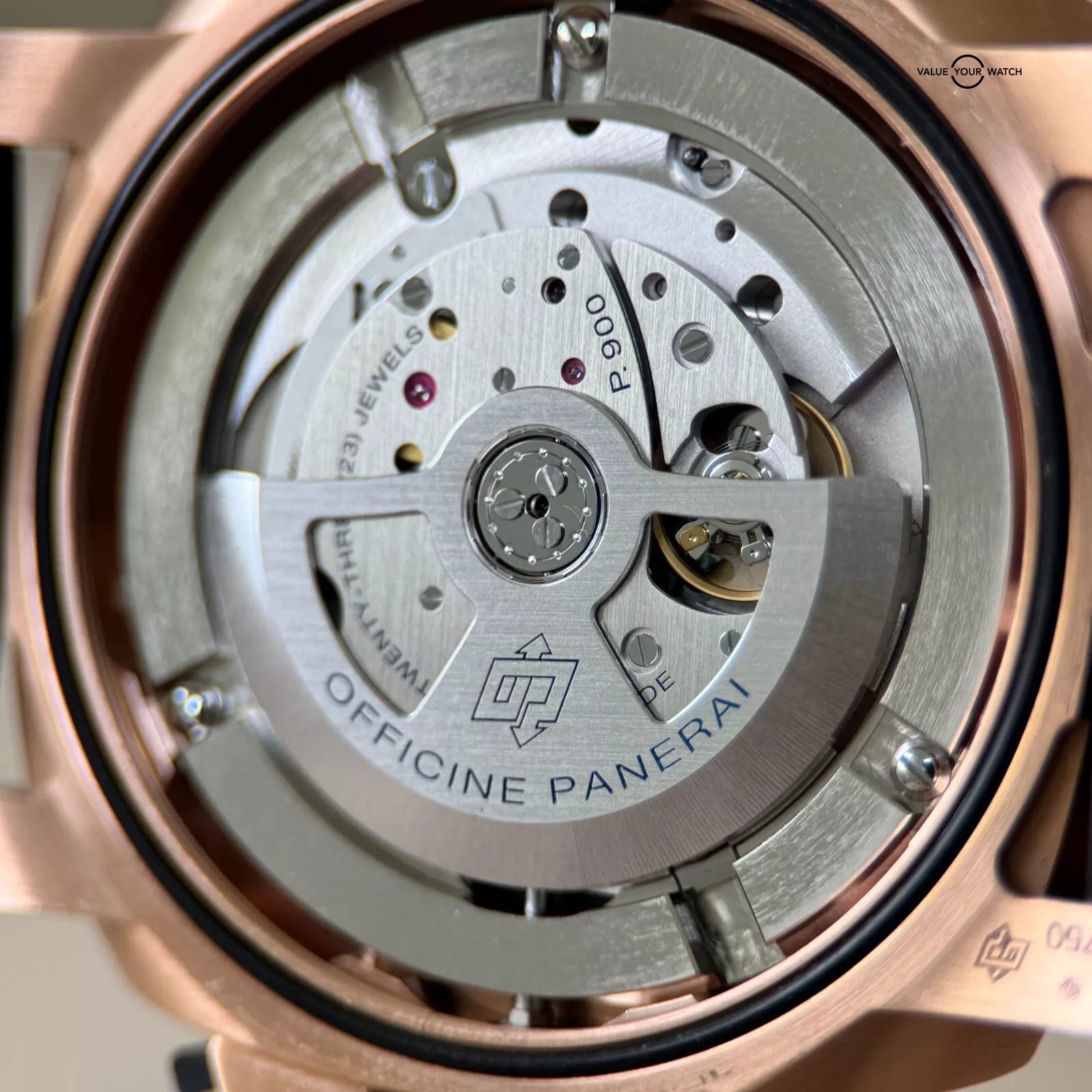 Goldtech™ Case: Experience the rich, warm hue of Panerai’s proprietary Goldtech™ alloy, designed for exceptional durability and a distinctive aesthetic.