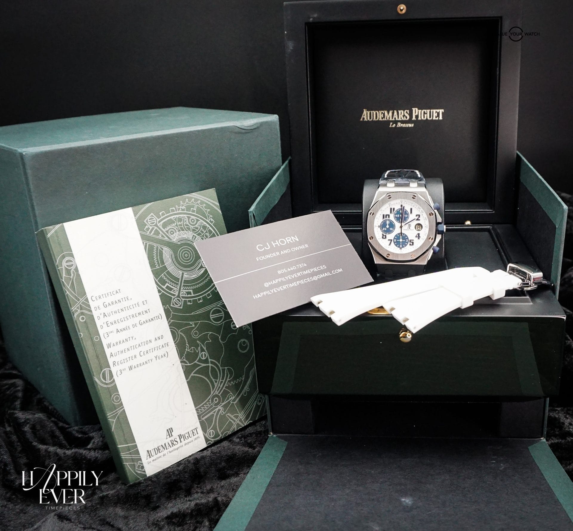 Powered by Audemars Piguet’s precise automatic chronograph movement, this Offshore delivers reliable performance, smooth chronograph operation, and an impressive presence on the wrist. This example is in very good pre-owned condition and comes as a full set, including box, papers, and all original accessories — a collector-ready piece for enthusiasts of modern luxury sport watches.