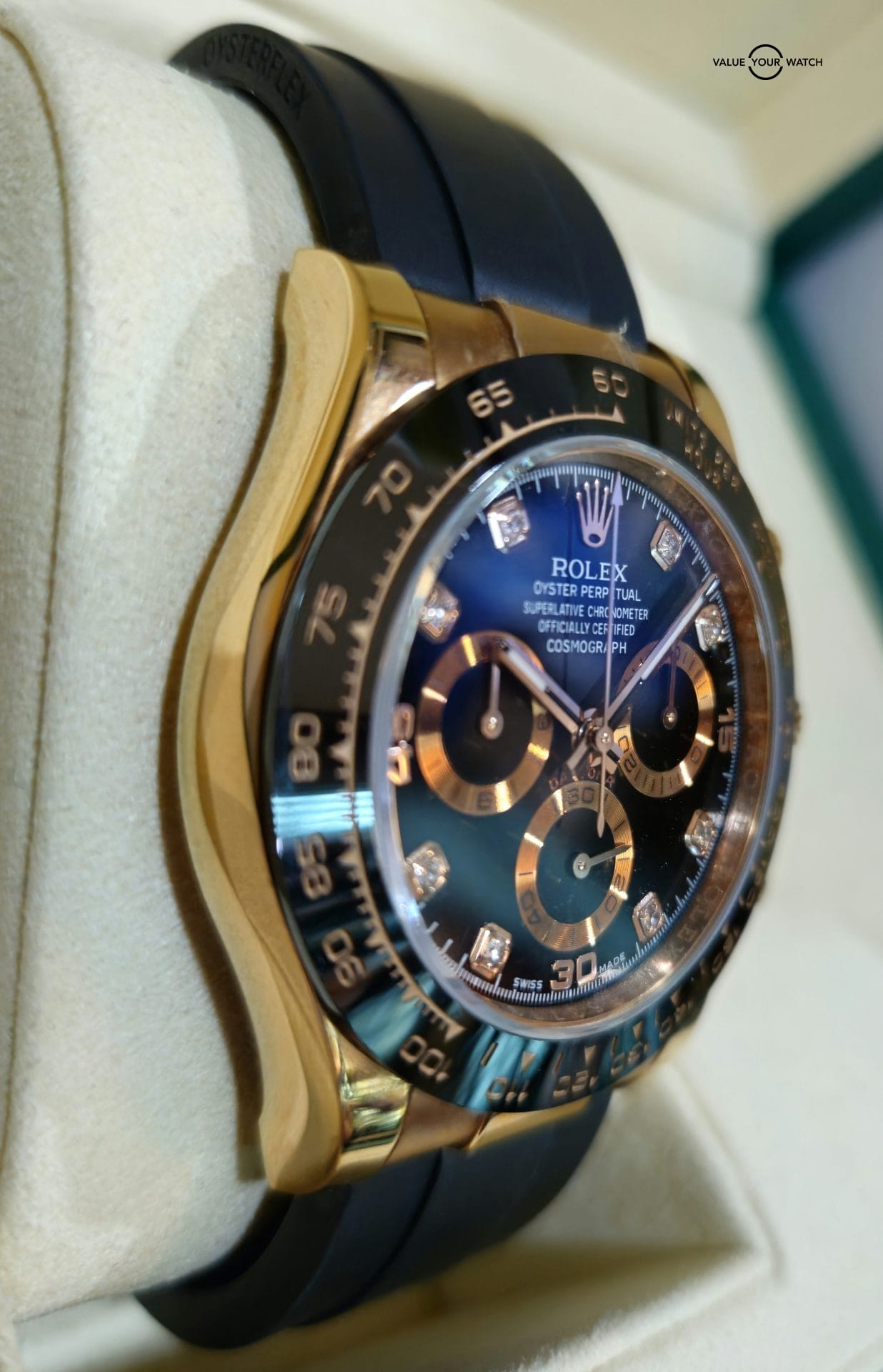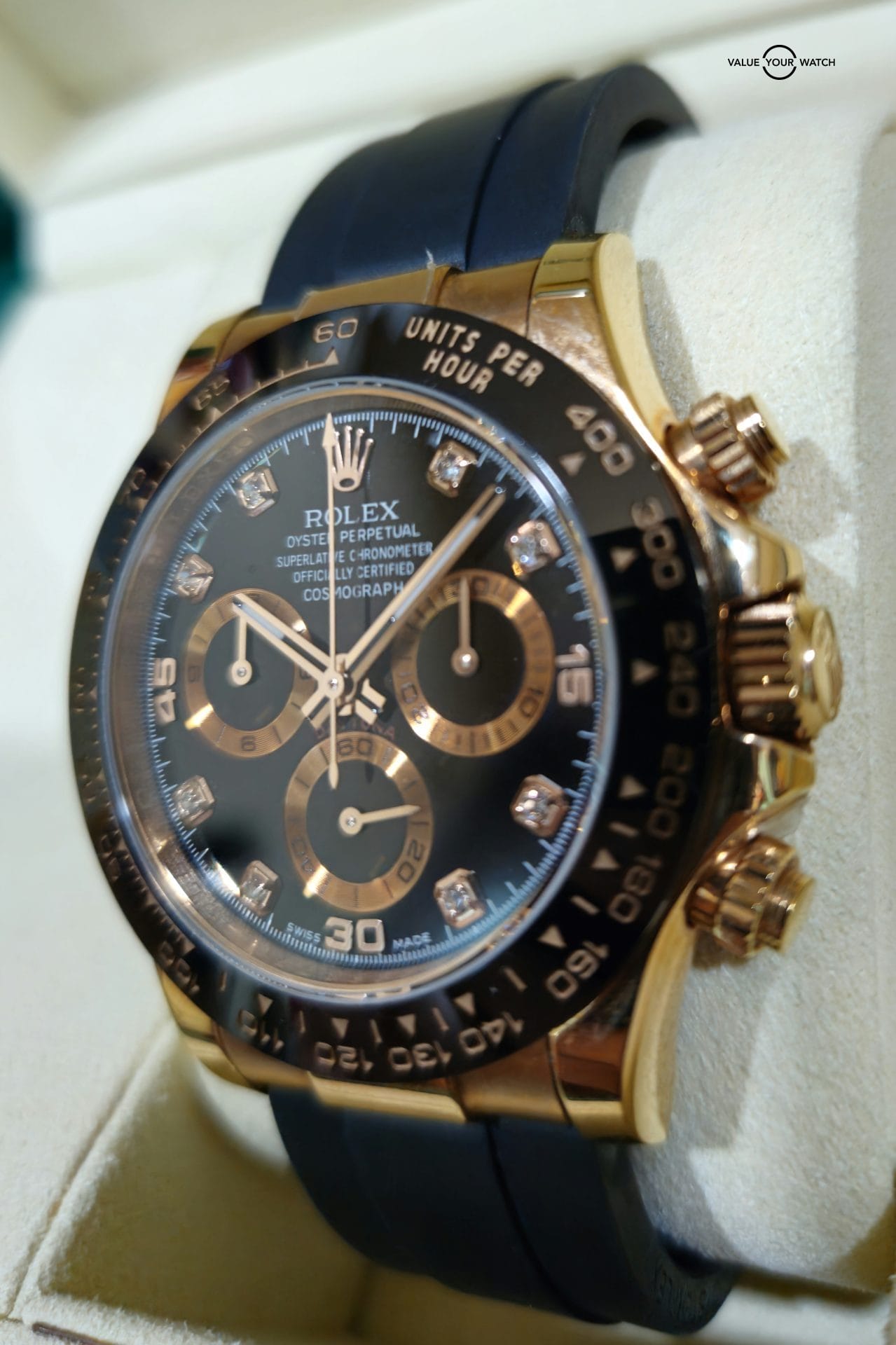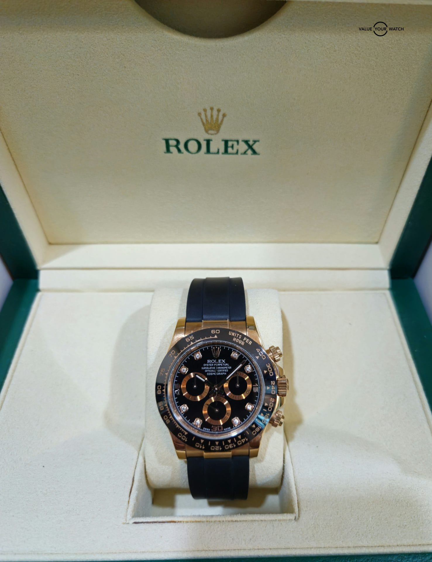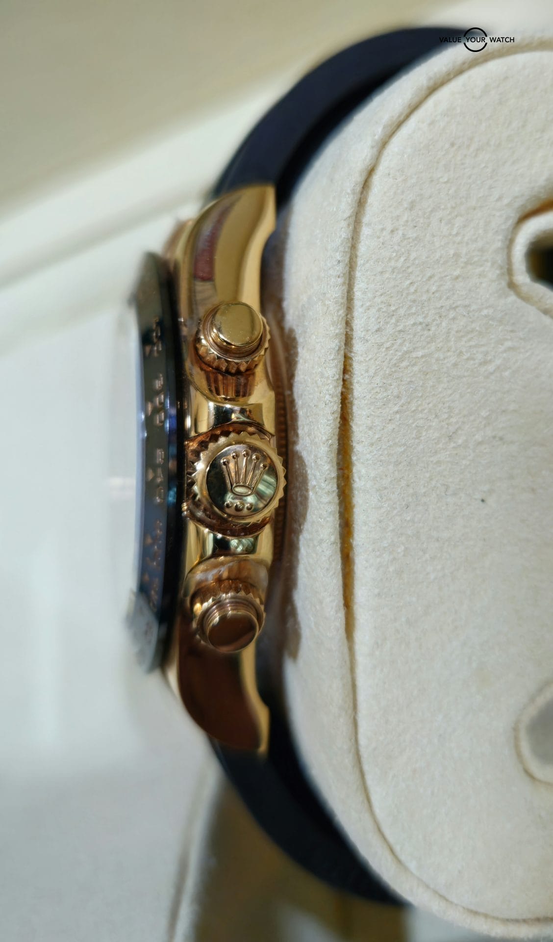This Daytona is not only a luxury timepiece but also a statement of exclusivity and sophistication. Its bold design and exceptional craftsmanship make it a sought-after piece for Rolex enthusiasts and discerning collectors.