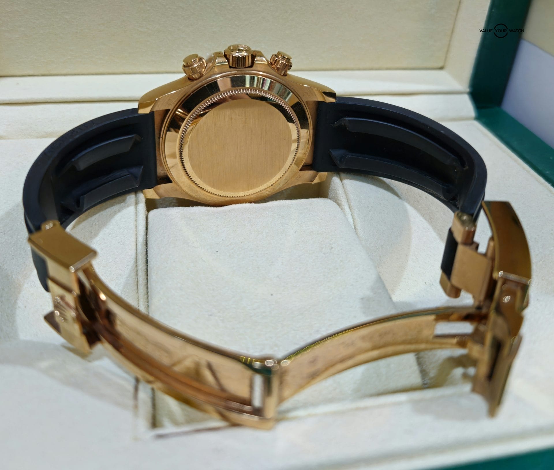 • Oysterflex Rubber Strap: Engineered for comfort and durability, this strap pairs seamlessly with the gold case.