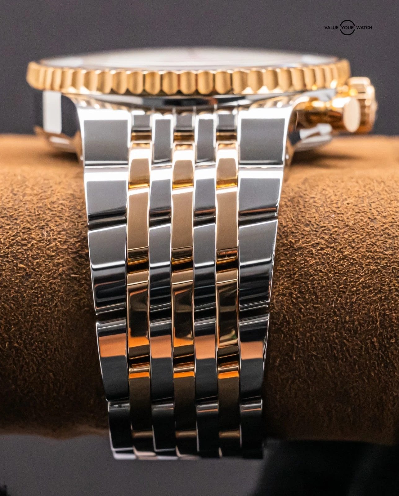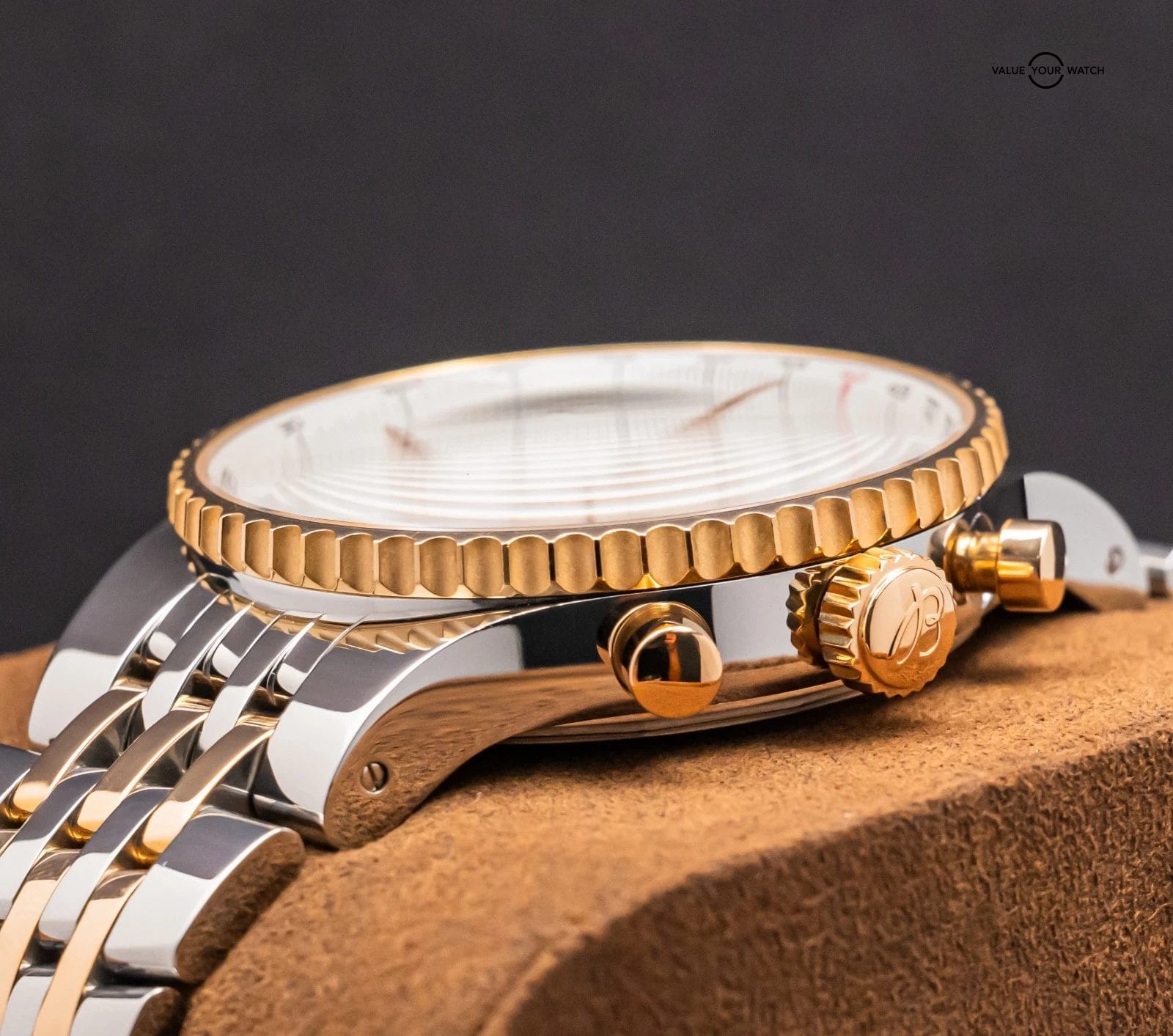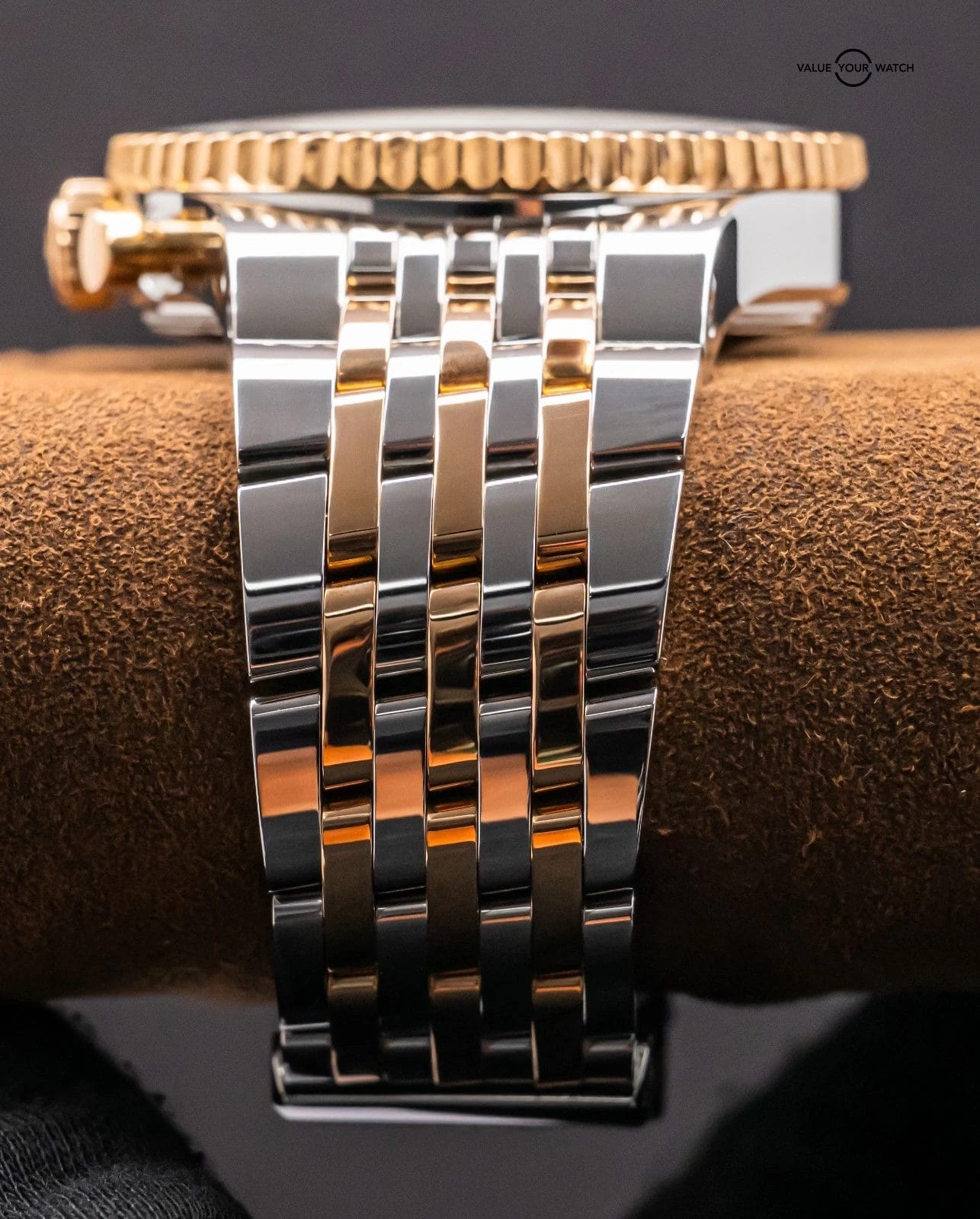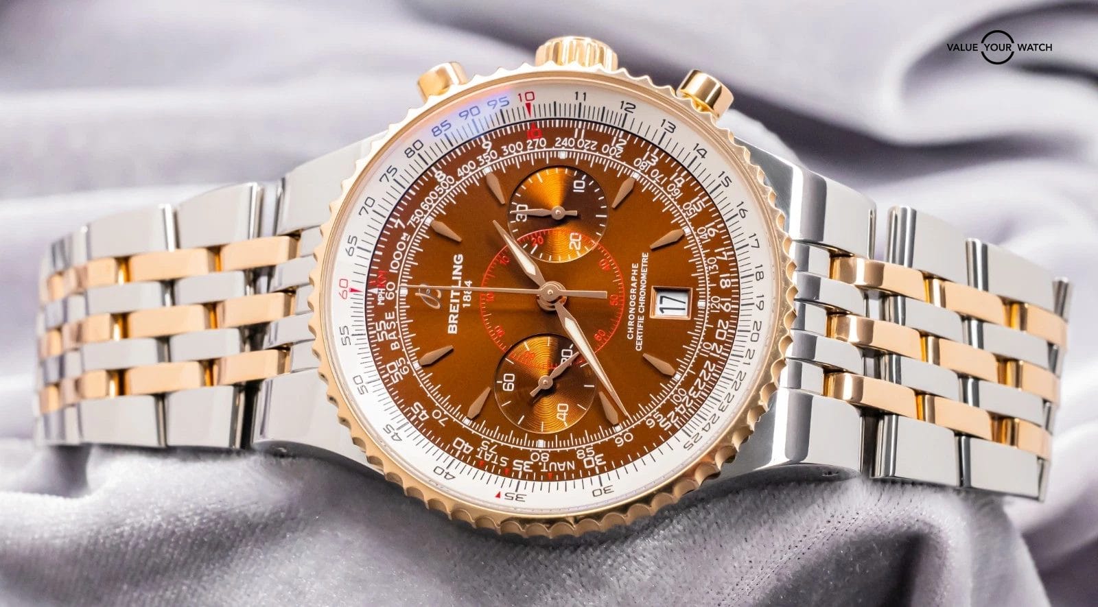 STRIKING Breitling Montbrillant Legende 47mm in Two-Tone 18K Rose Gold with Bronze Dial on Integrated Two-Tone Bracelet! Arrives as a complete set with the original Breitling boxes and papers including the international warranty booklet, serialized COSC certificate, maintenance booklet, and manual. Originally purchased from a Breitling Authorized Dealer in February 2011. This is an incredibly rare find, I have only owned three other Two-Tone Montbrillant Legende in the past nine years, and one was a complete set, never another Bronze Dial! Currently the only one for sale nationally with the black dial. This Montbrillant is similar to the Navitimer, it’s essentially a larger Navitimer at 47mm with the Integrated Bracelet and Classic Montbrillant Dial. Pretty incredible watch on wrist!