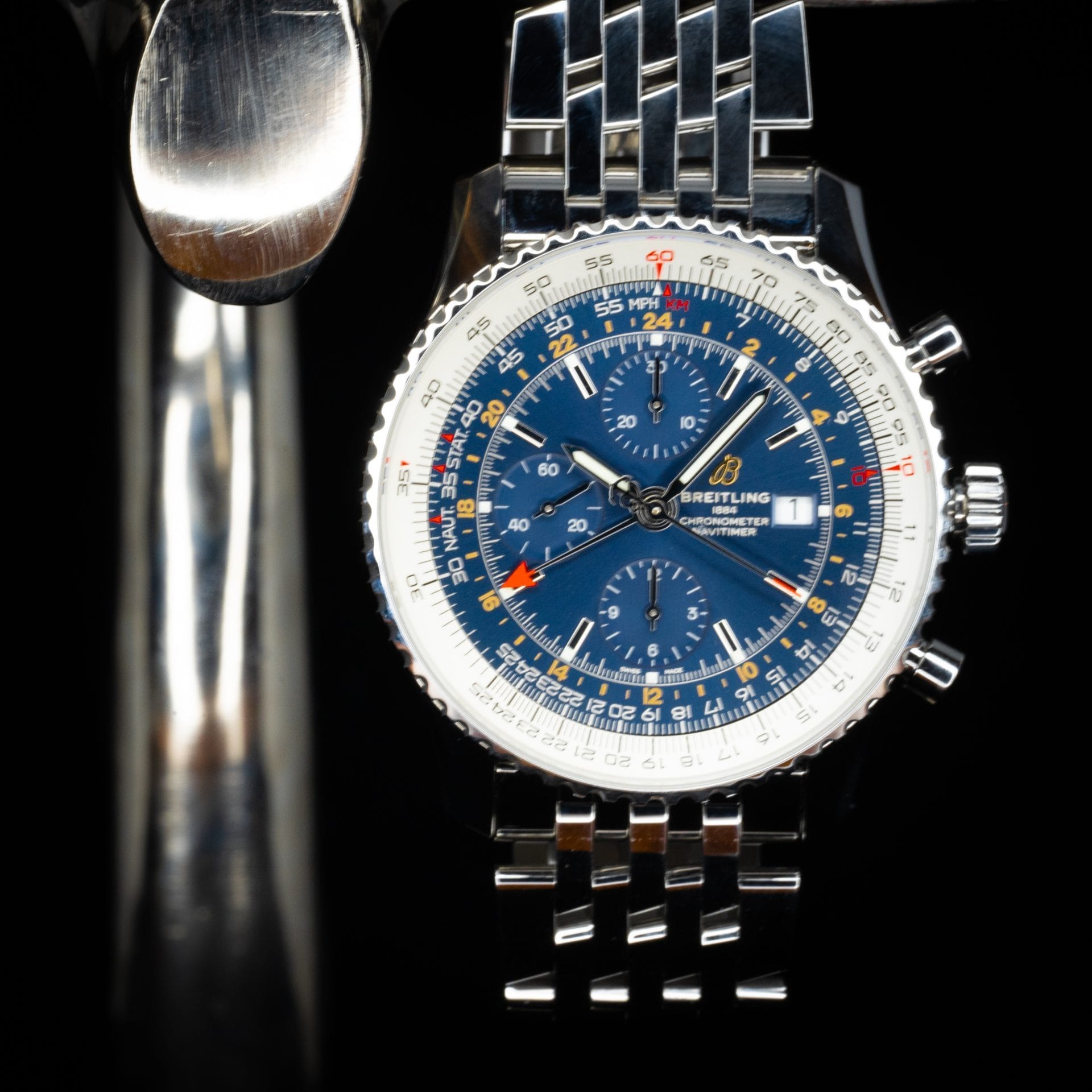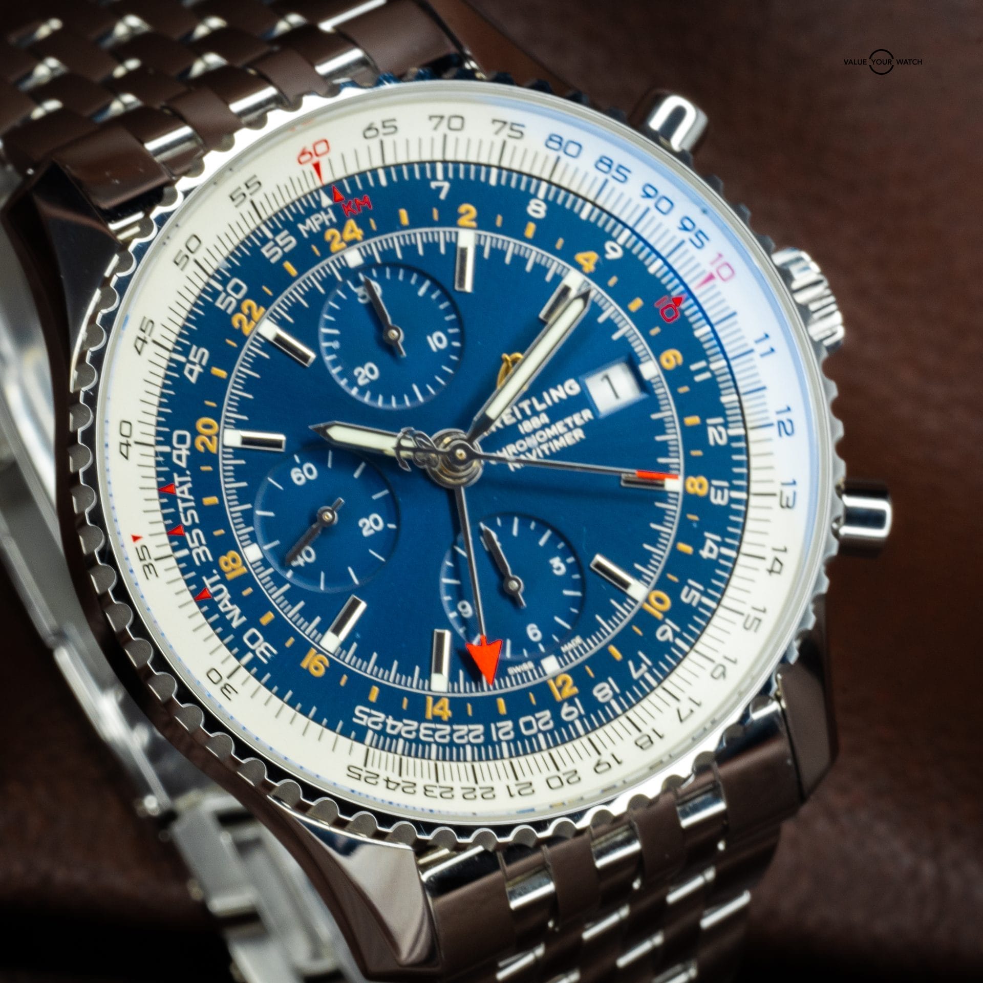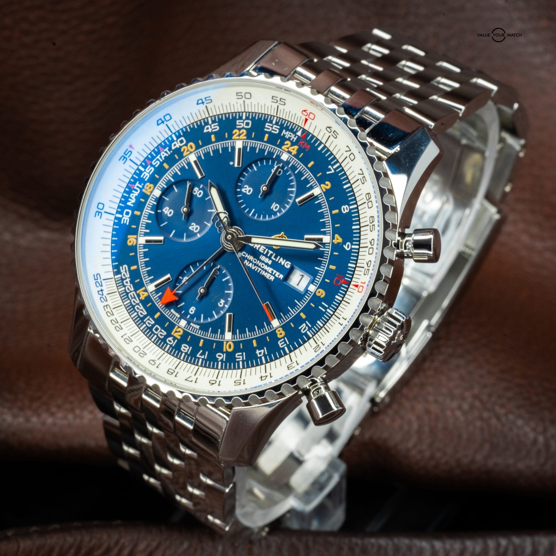 The Breitling Navitimer 1 Chronograph GMT is an exceptional timepiece that merges style with functionality. The striking blue dial and practical features, such as the GMT hand and chronograph, make it ideal for travelers, pilots, and anyone with an active lifestyle.