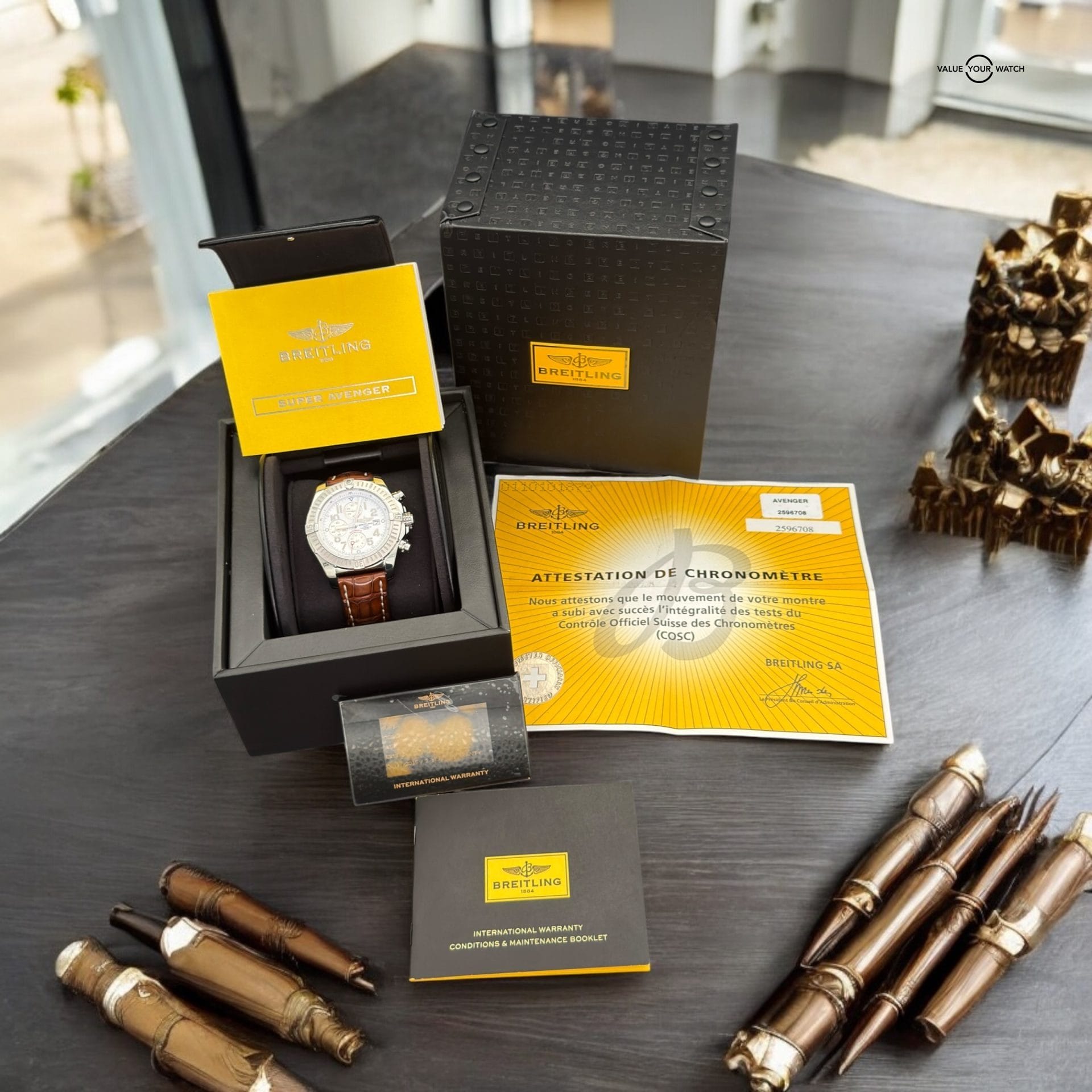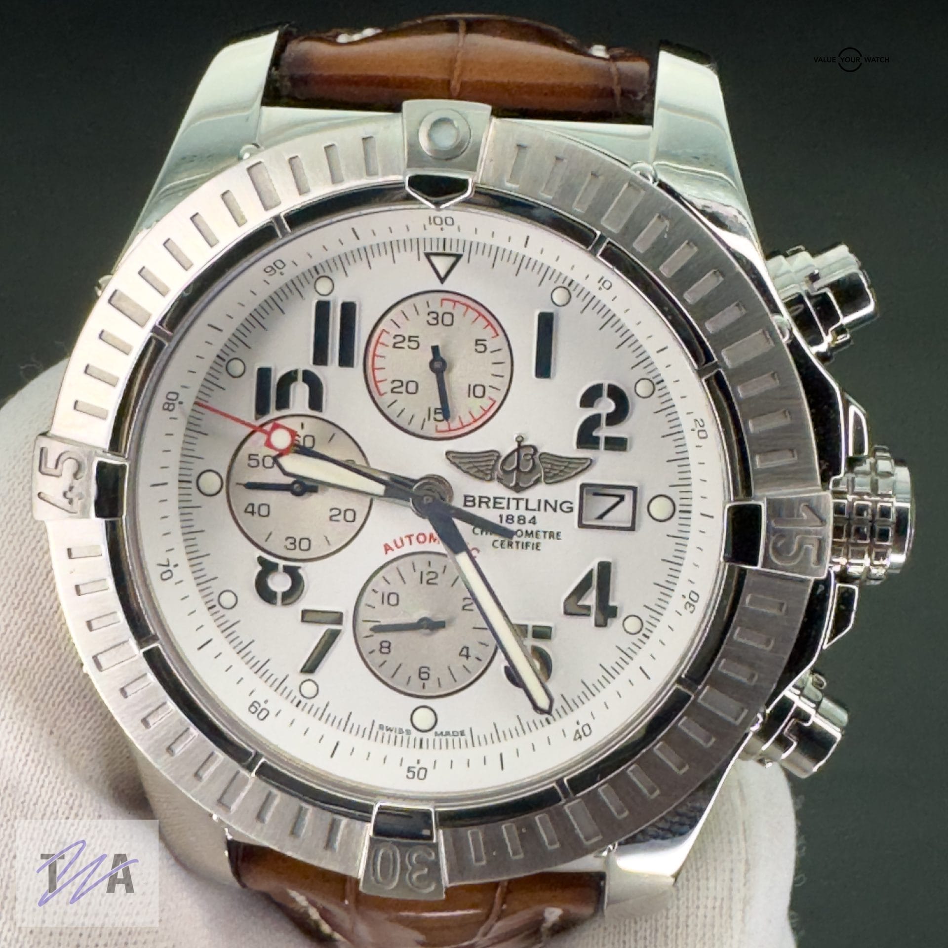 Specification: Breitling Super Avenger A13370 White Dial Chronograph Automatic Complete 48mm