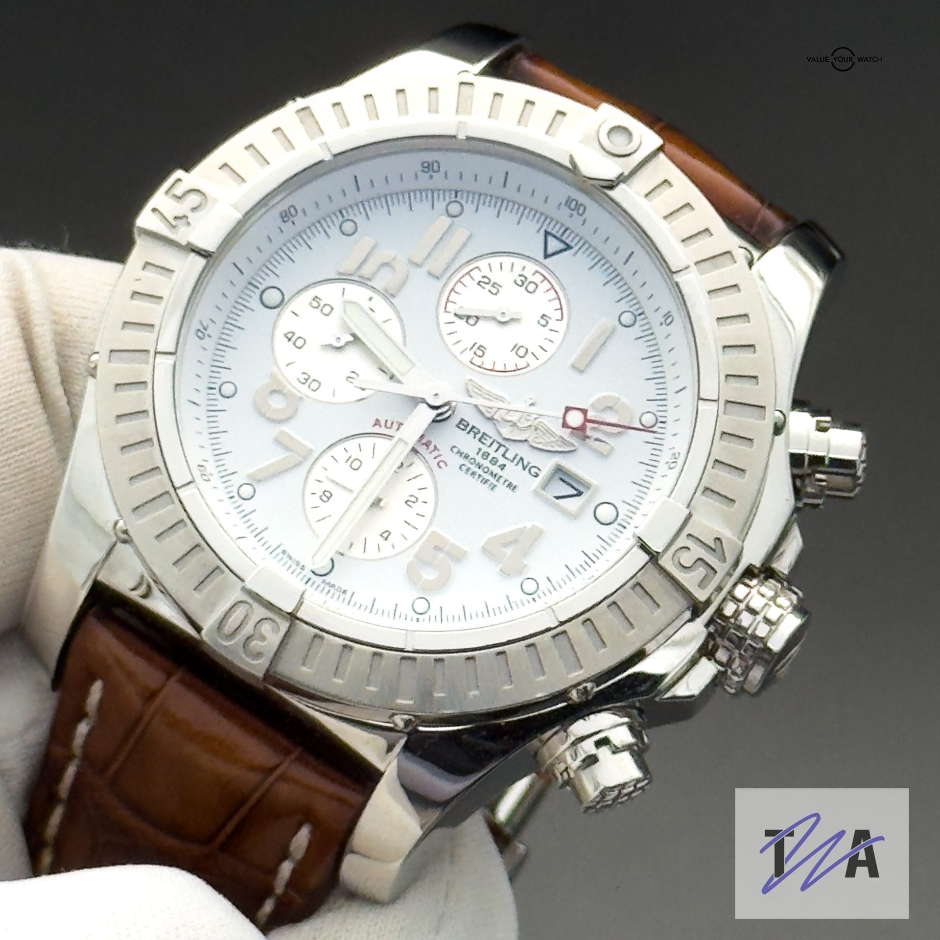 Breitling Super Avenger A13370 White Dial Chronograph Automatic Complete 48mm