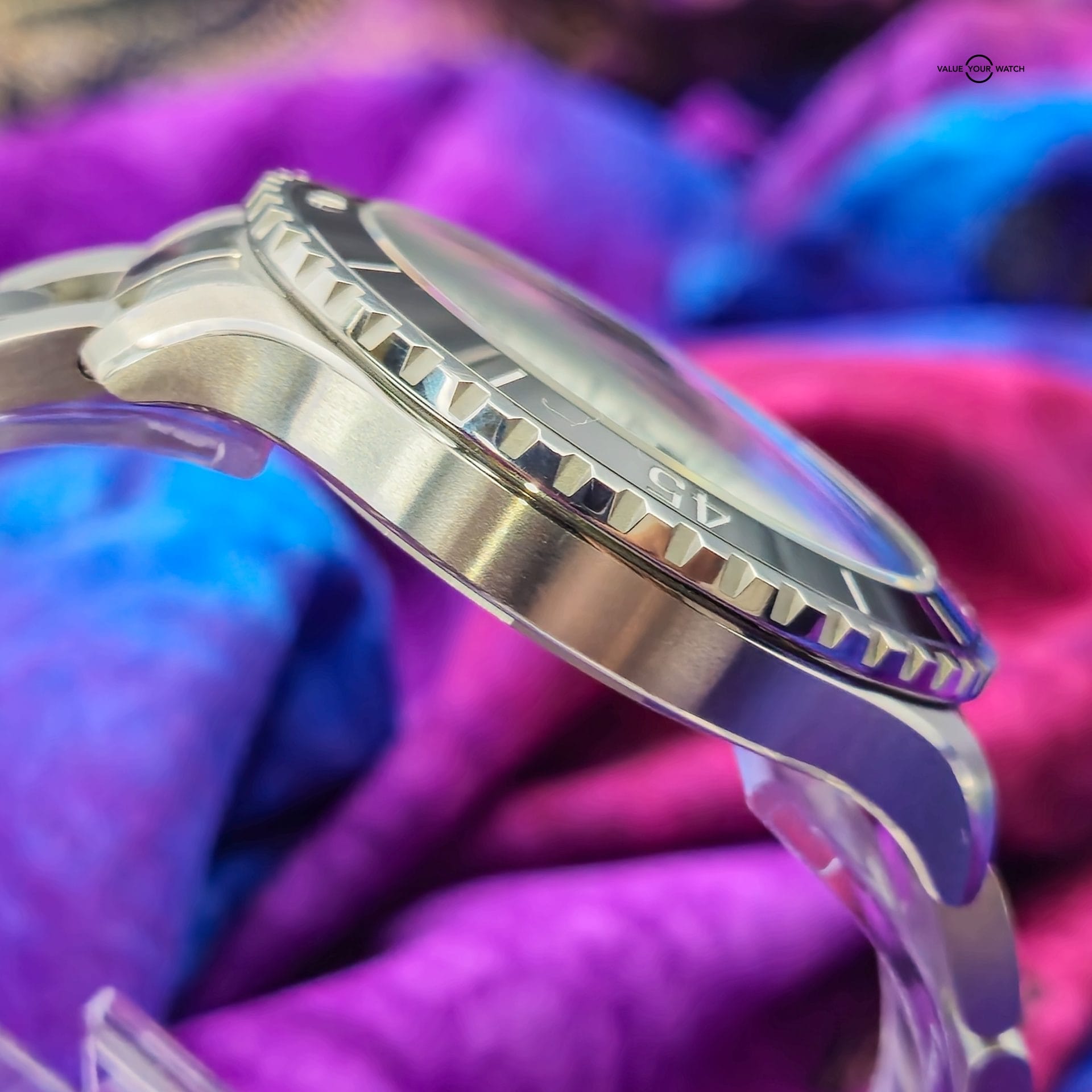 Photos are of actual watch and we use a Macro Lens to phtograph so it may shop flaws that is typically not seen with the naked eyes.