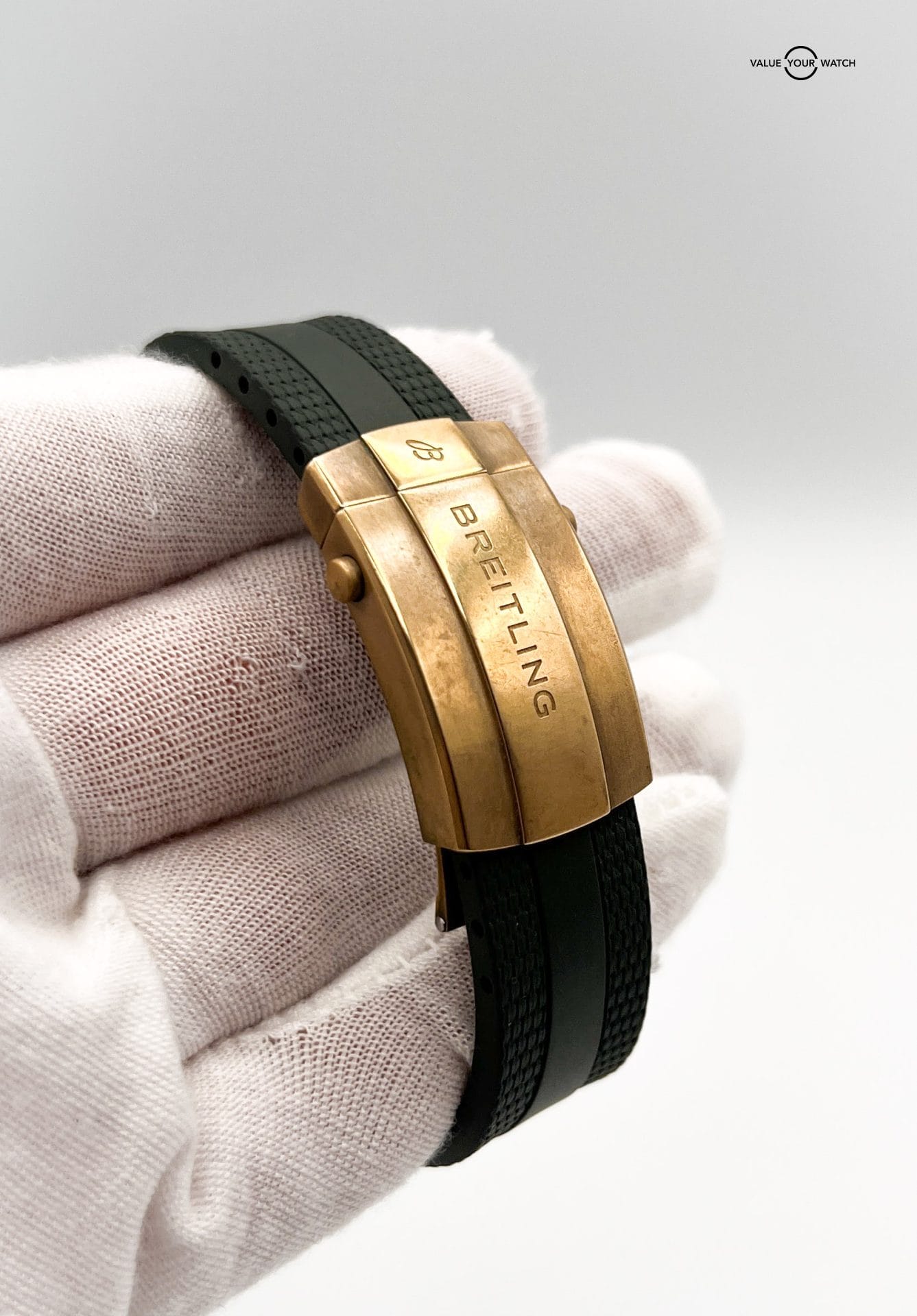 With Breitling’s durability and quality craftsmanship, this timepiece offers years of reliable service. This watch has two rubber links cut, and will fit a wrist size up to 8″.