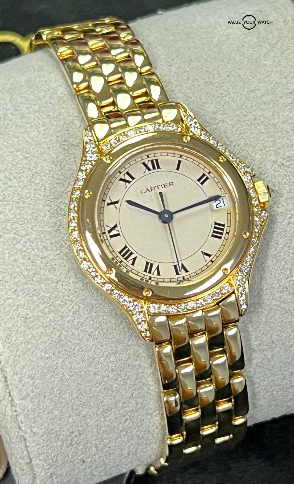 Cartier Cougar 18K Yellow Gold Factory Diamonds 26mm WF8002B9!