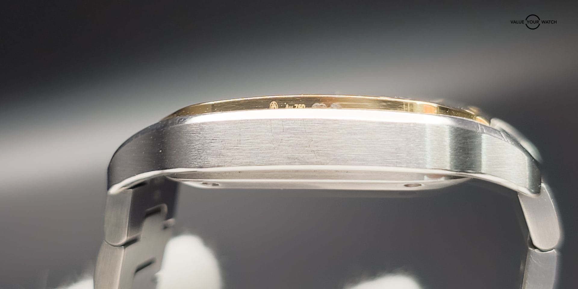 Case Size: 35.1 stainless steel with 18k yellow gold bezel