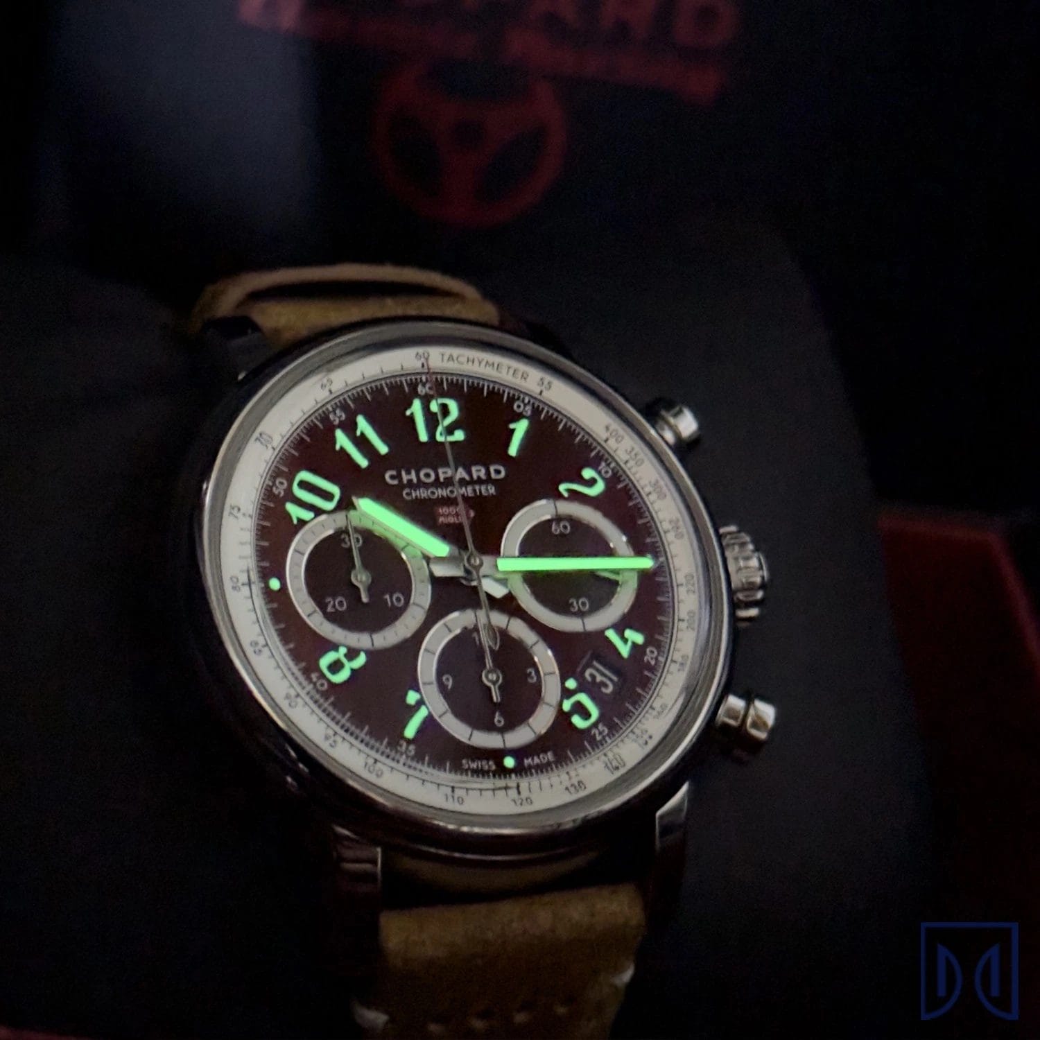 It comes fitted on a calfskin leather strap, and the watch is water resistant to 50 meters, though it’s best suited for the track. It’s a true racing-inspired chronograph that connects its wearer to one of the greatest motoring traditions in the world. Every detail reflects Chopard’s meticulous craftsmanship and the spirit of performance engineering.