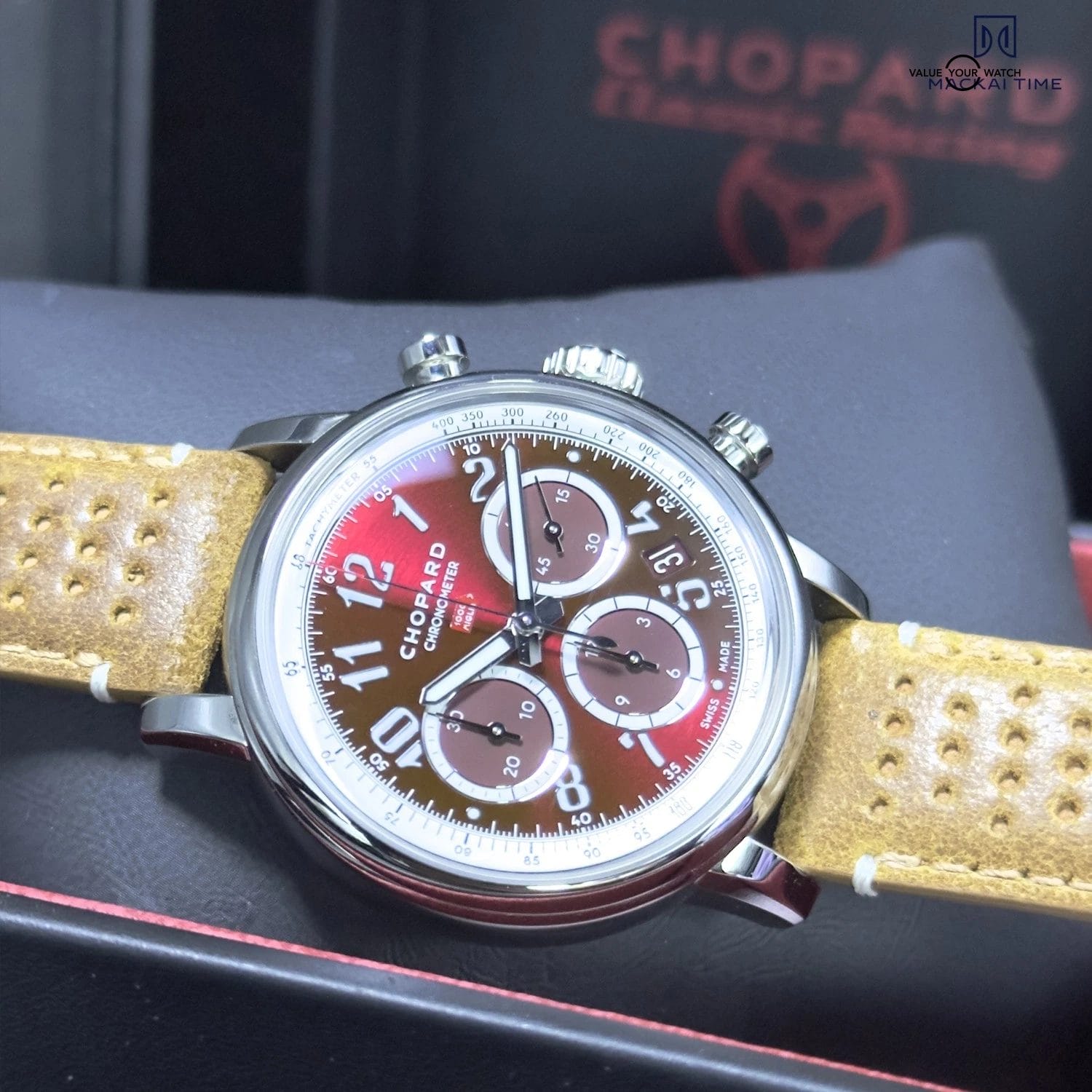 This Red Mille Miglia Chrono is a piece of racing history. A story told in steel, lacquer, and movement. Ready to accelerate your collection with passion, precision, and timeless style.