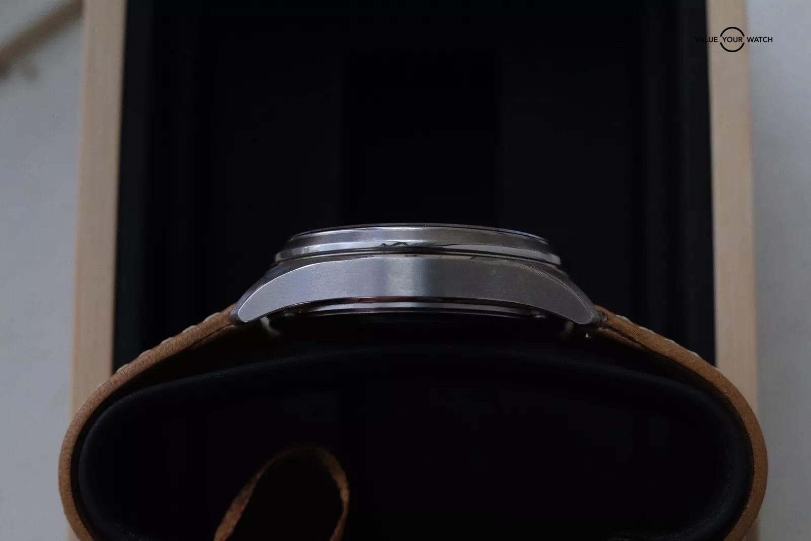 – Watch has been worn and shows minor signs of wear. The movement runs and functions like it should. The crystal is free from any damage. The leather strap has plenty of life left in it. See photos.