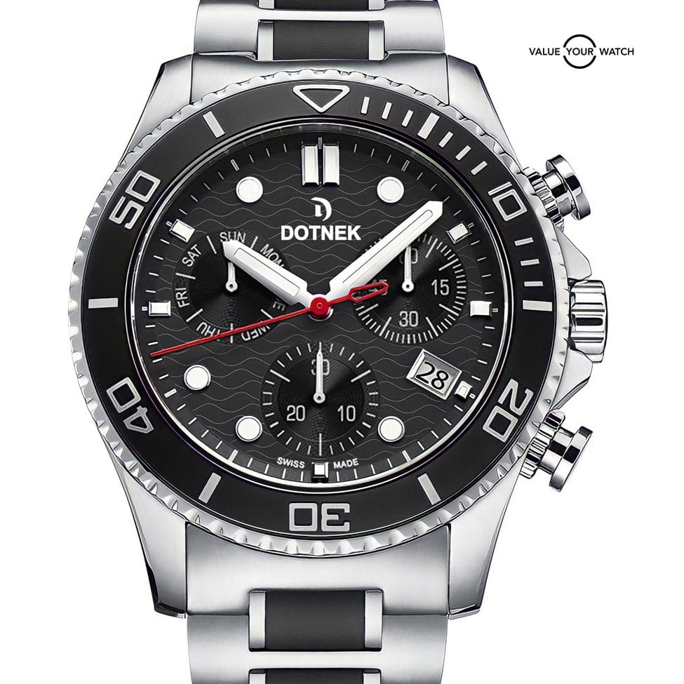DOTNEK Drift-Master Swiss-Made Chronograph Watch for Men Stainless Steel case Black dial Luxury Watch Stainless steel bracelet with Lug size 24mm Reference number: DN860405 – 01