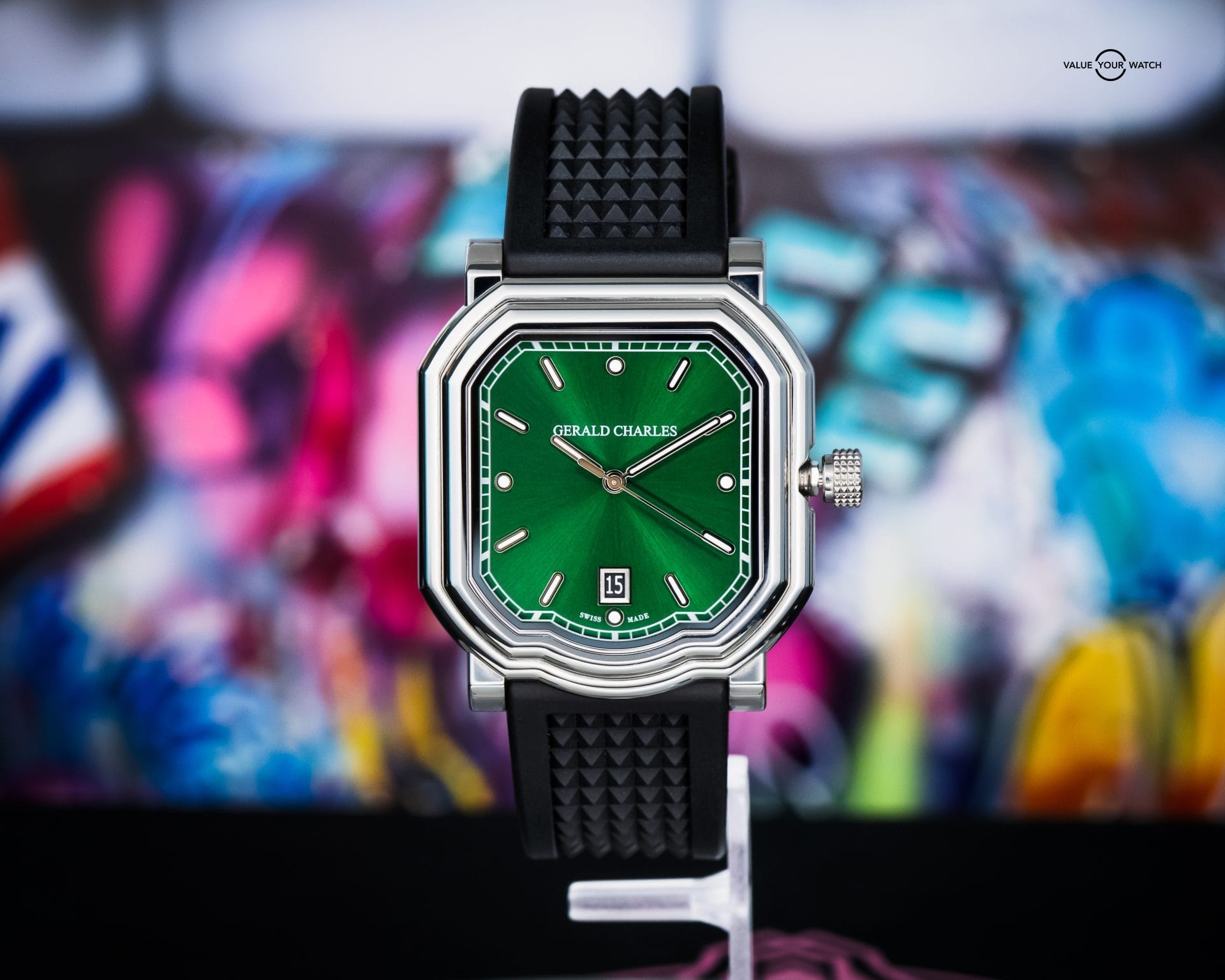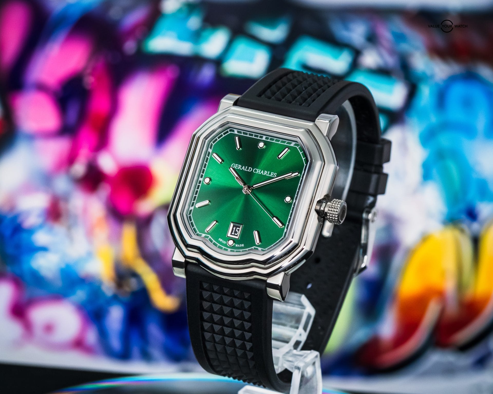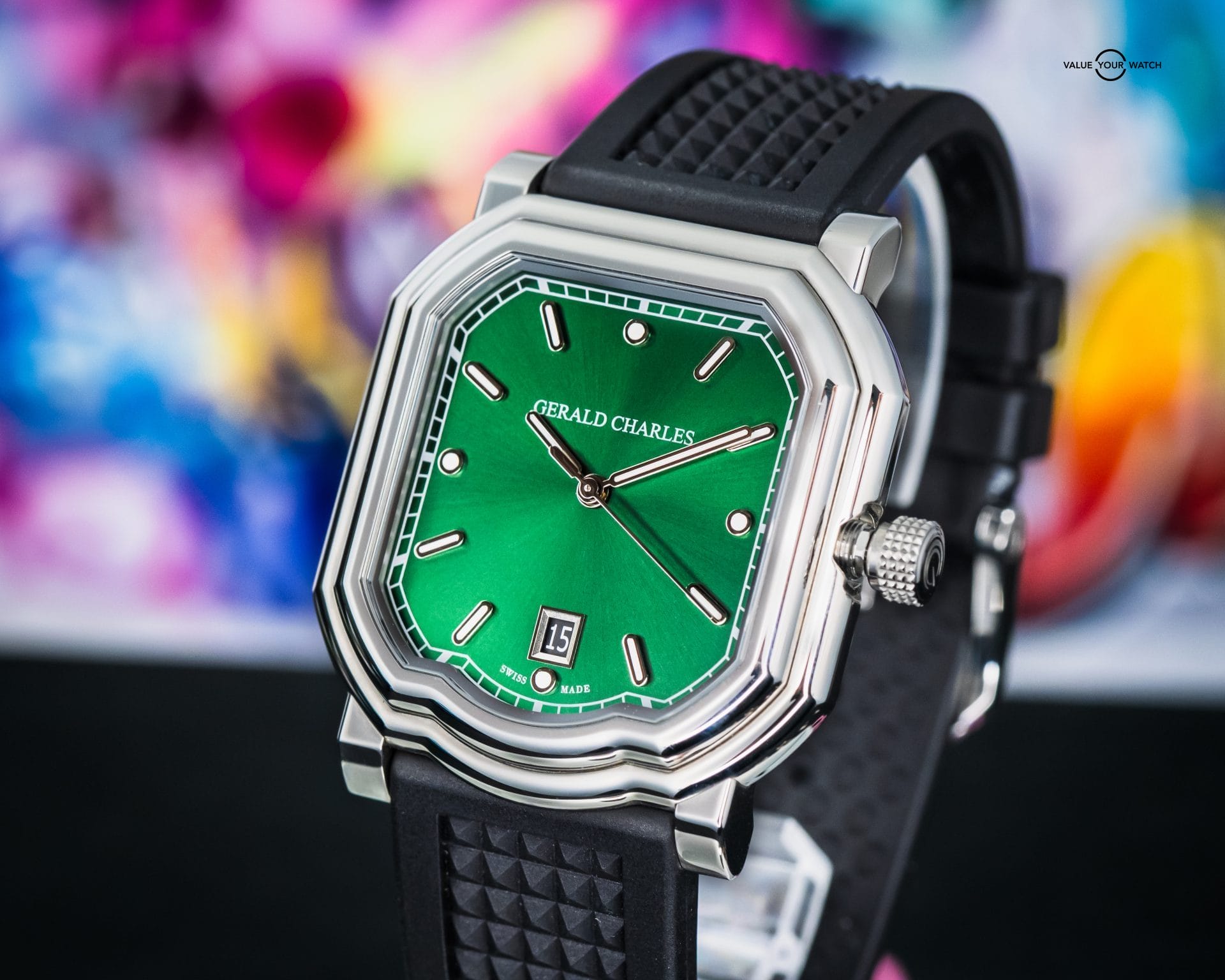 • Contrasting Green Aesthetic –Green sunburst dial and black rubber strap for a contrasting yet cohesive look.