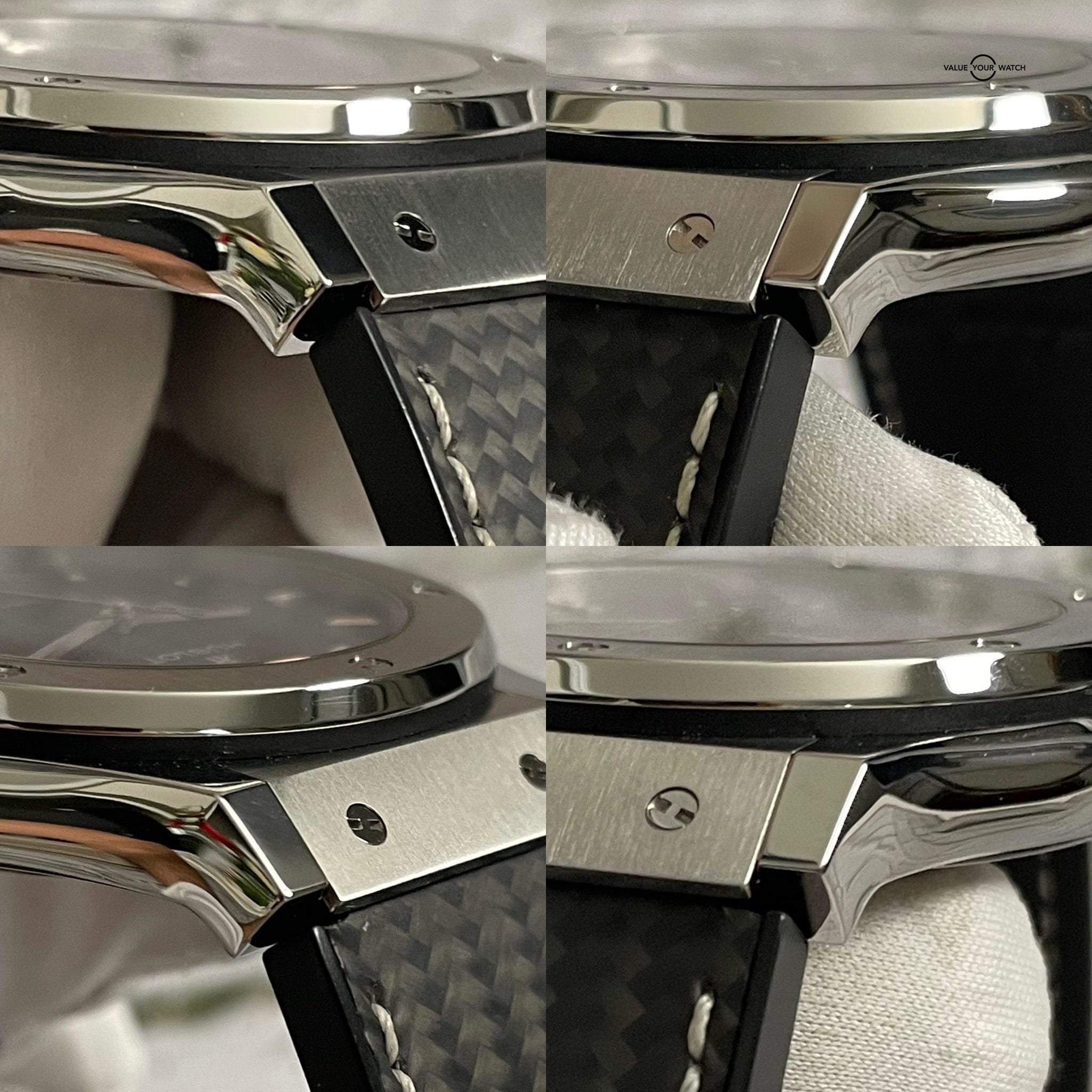Pre-owned, and in great condition. The high polish surfaces are shining like the day it was new. Crystal is perfect. Very minor marks on the bezel from normal use. Strap looks almost new. Watch is in complete working order and keeping great time. Comes with all the bits from the authorized dealer, and an added Hublot leather travel case.