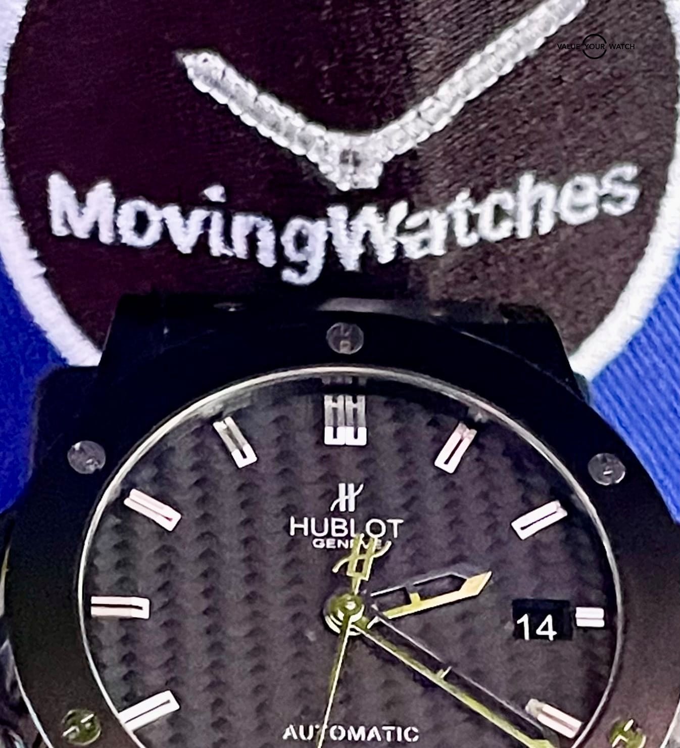 This Hublot is light, impressive, and the carbon fiber dial is definitely a head turner. This is part of my collection that I recently added a striking orange aftermarket strap. Not only is the carbon fiber dial a conversation starter, the orange strap now commands attention in a very good way. Get it at a fraction of the msrp cost and let those around you know that you’re the person who knows his luxury timepiece, want one that not everybody has but shows that you have the fun side in you. Please check out photos as they are part of the description. Watch comes with the box and a book. I included photos to show you how great it looks when on the wrist and at the same time photos to highlight imperfections such as scratch on bezel at around 11’o clock and imperfections on the glass. Watch works as it should. You will get it with the original black strap and the aftermarket orange strap. Please note in the photo, 1 small screw in the clasp (does not affect the function) flew away when I installed the orange strap. (One of the mishaps we collectors go through at times) If i find it or get a replacement, I would try to put back on but in the meantime, I’m listing it as it is. No returns. Sold as is. Check out MovingWatches on f b and I G for references. I am a professional timepiece collector that trades watches. Message me to ask questions, available for face time or video call. as I strive to be transparent to ensure smooth transactions and a satisfied purchase. |