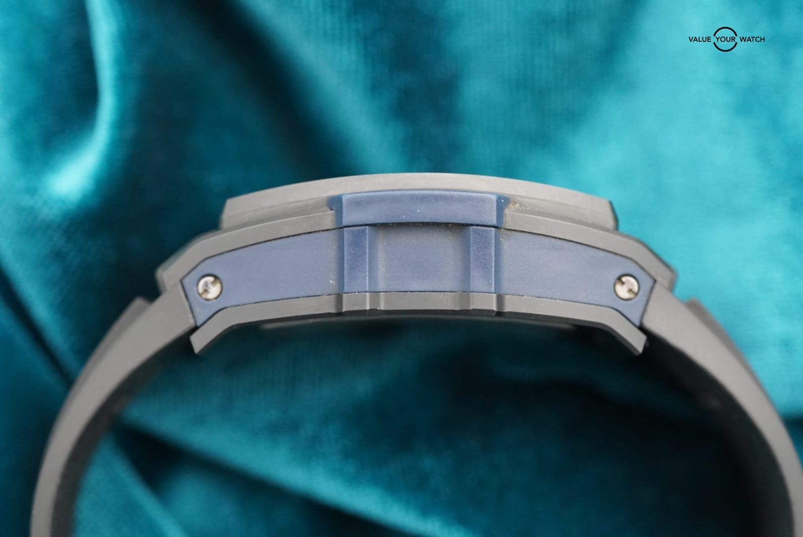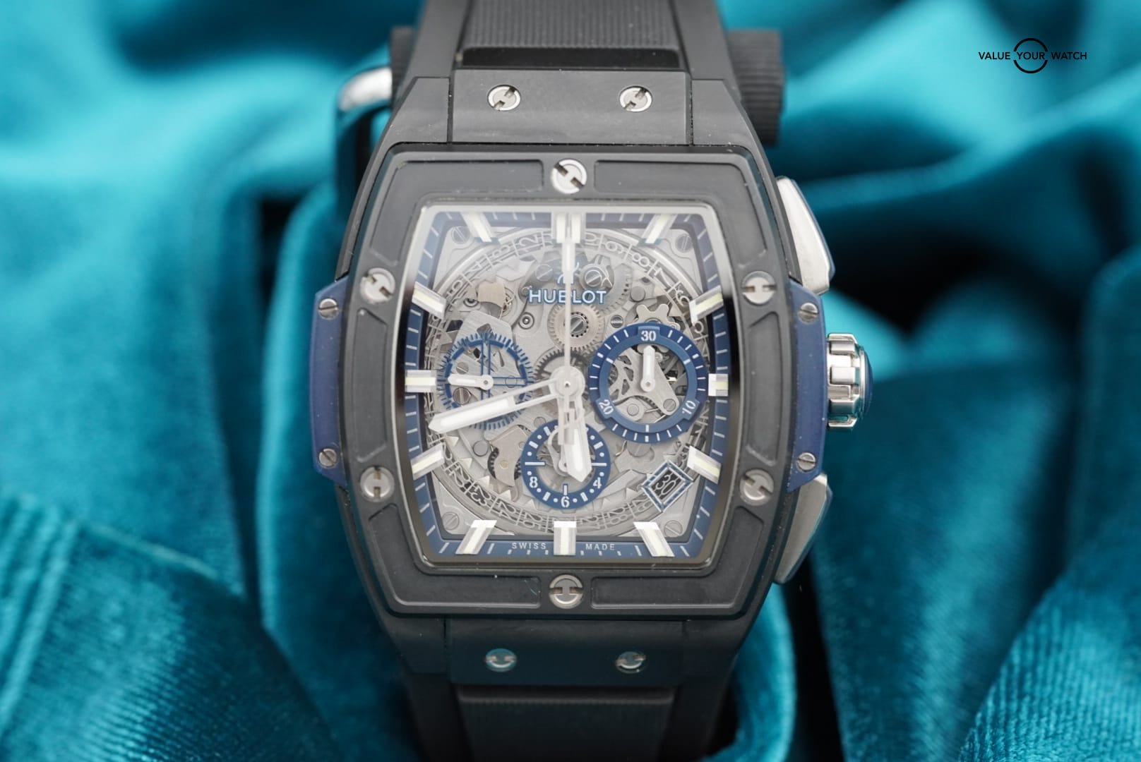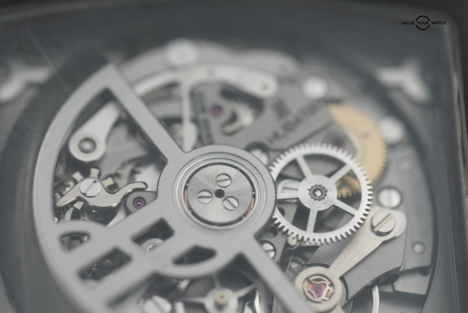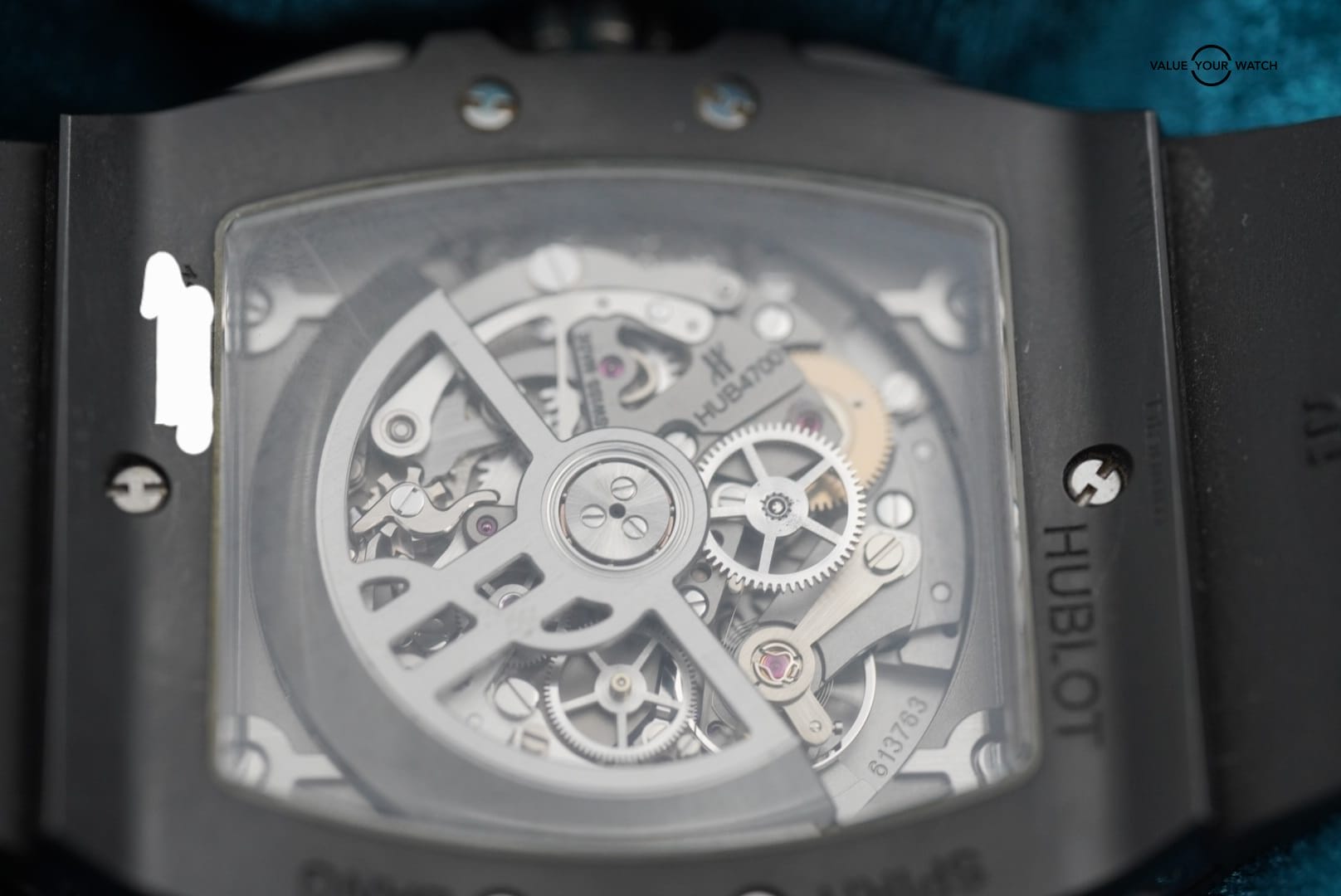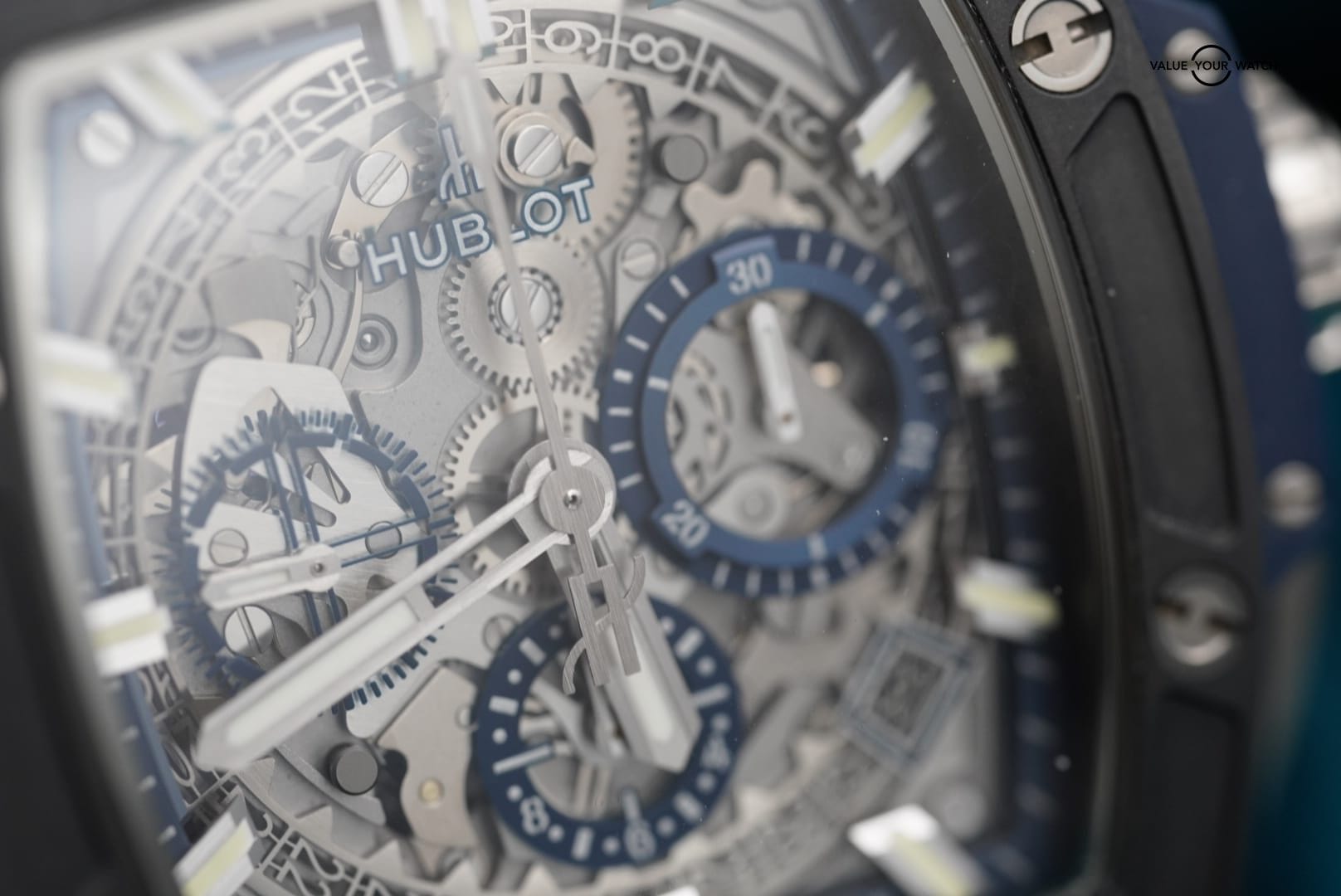 The ceramic case houses the stunning skeleton movement. Pair it with the rubber strap and this makes for a conversation starter.
