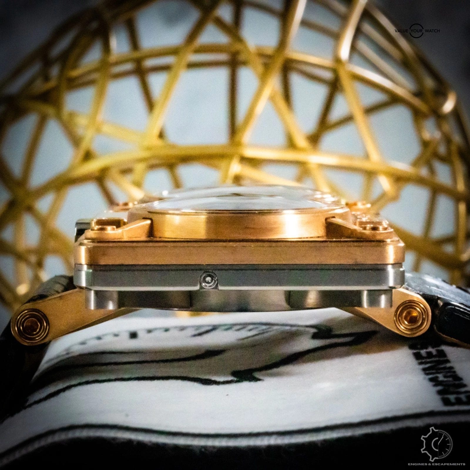 Beneath the surface lies an exceptional movement, conceived in collaboration with some of the greatest minds in independent watchmaking. The intricate mechanism powers the watch’s unusual displays with flawless precision, while its finishing and construction reveal the highest levels of craftsmanship.