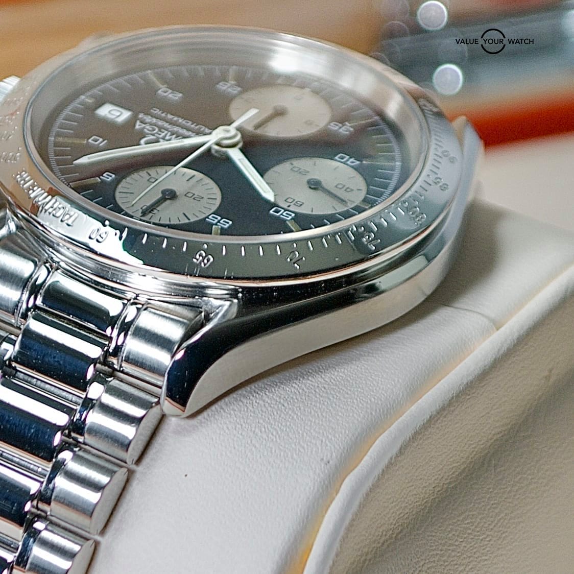 Experience the enduring legacy of Omega with this exceptional Speedmaster 3511.50 Chronograph Automatic Date Watch. This timepiece embodies a blend of classic design and robust functionality, making it a sought-after addition for any watch enthusiast. The sophisticated black dial provides a striking contrast with the chronograph subdials, offering both readability and a distinctive aesthetic.