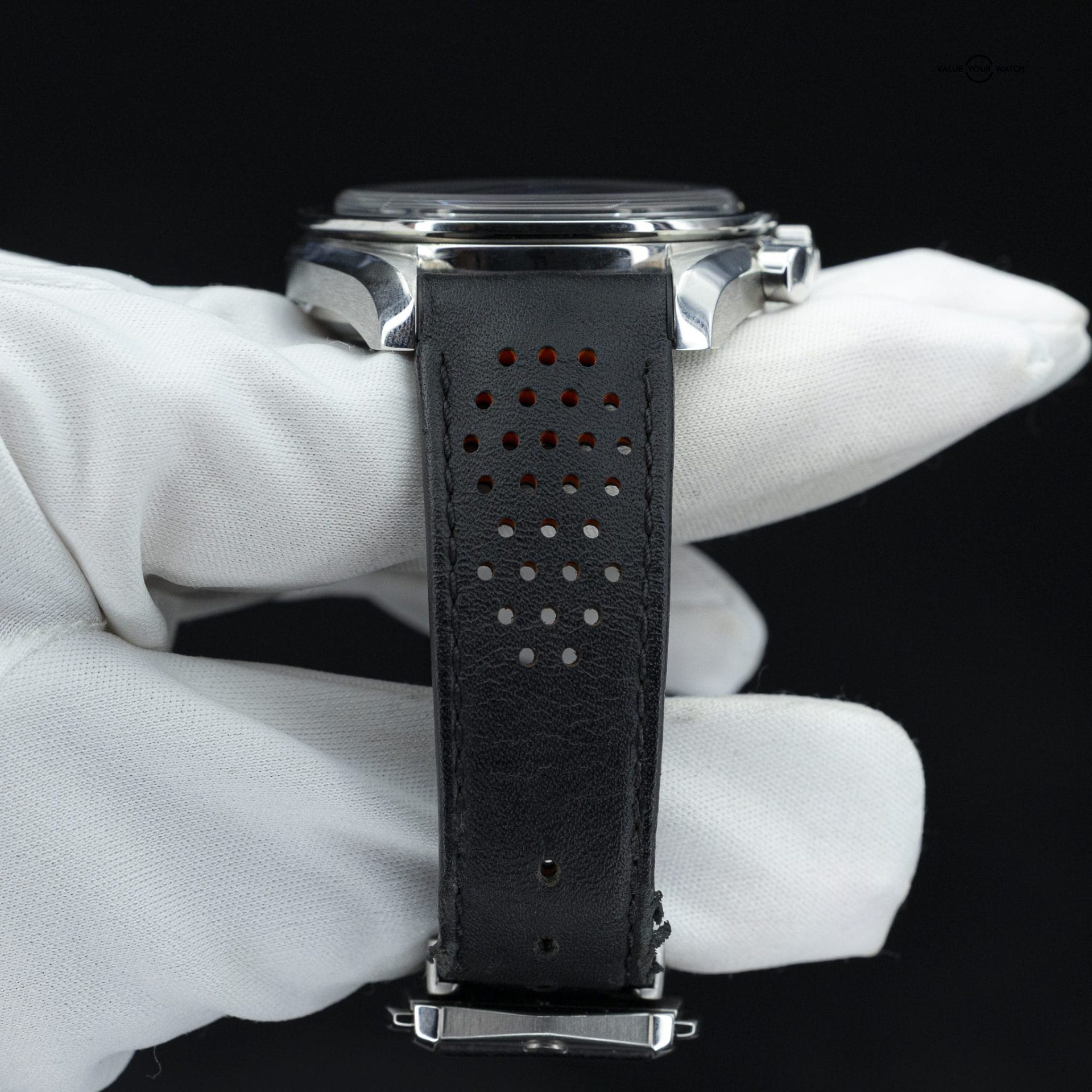 Bracelet/Strap: Black racing strap with red accents
