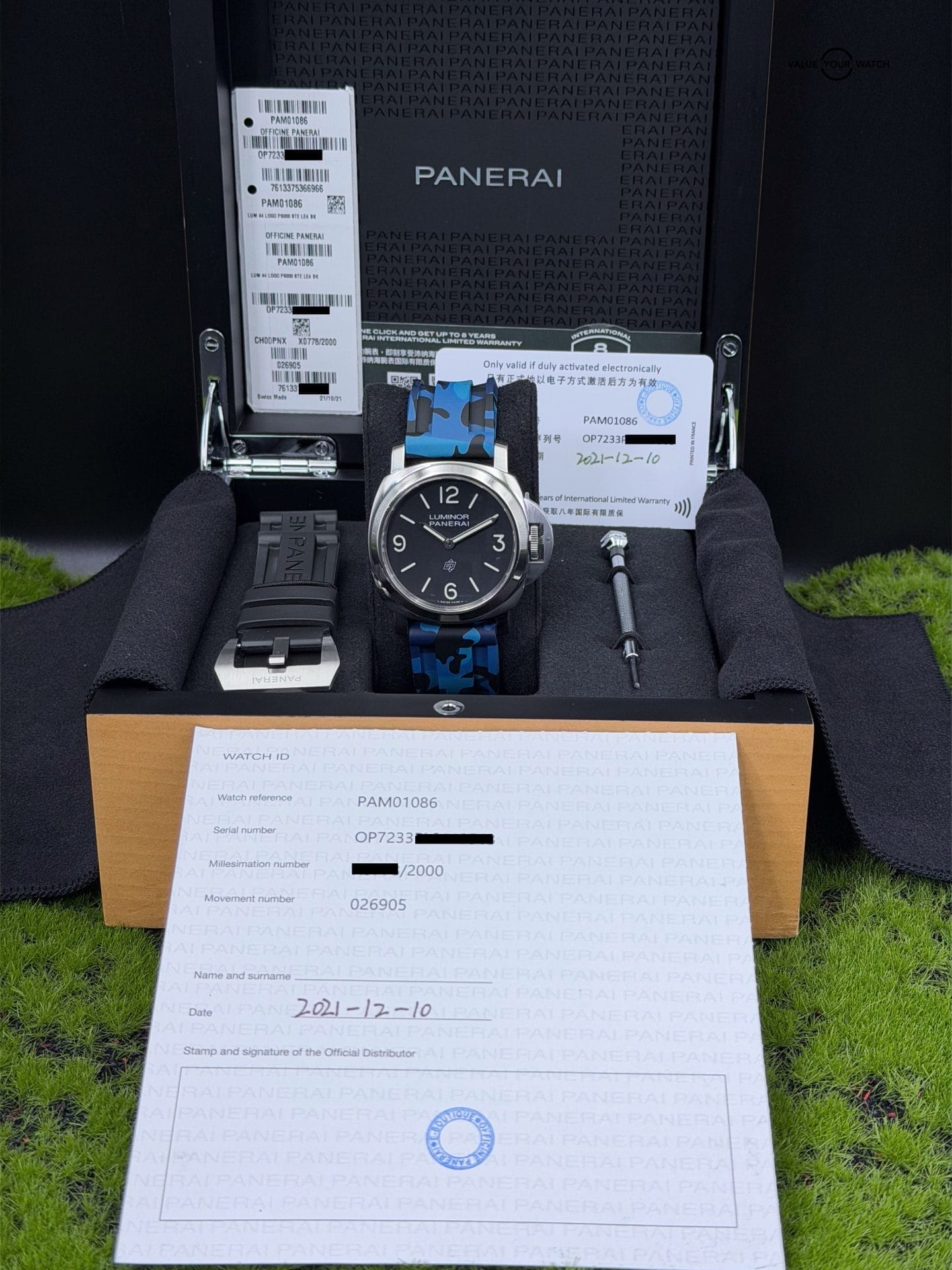 Offered for sale is a Panerai Luminor Base Logo, reference PAM01086, a modern interpretation of Panerai’s most iconic design language. Featuring a bold black sandwich dial with luminous Arabic numerals and the signature OP logo at 6 o’clock, this model embodies the brand’s military heritage and minimalist styling.