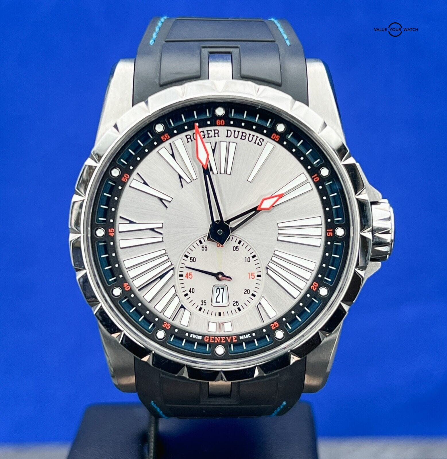 DESCRIPTION¬†The Roger Dubuis Excalibur (DBEX0724) features a bold and distinctive design, characterized by its 45mm diameter case made of titanium. It boasts a striking silver dial, which serves as the centerpiece of its design, adorned with intricate details such as Roman numerals and a date indicator at 6 o’clock. It will be a unique and rare addition to any watch collection.¬†This timepiece is part of a limited-edition series, with only 88 available worldwide.¬†CONDITION¬†Watch is in excellent condition with minimal sign of wear. All photos are taken by our in-house photographer of the actual item and is the best visual description of the condition we can provide. We do not use any stock photos. Please refer to the photos for condition. If you need additional photos or have any questions, please feel free to contact us.¬†AUTHENTICITYWe fully stand behind and guarantee that all our pieces are 100% authentic. For your extra peace of mind, all of our pieces are backed by eBay‚Äôs Authenticity Guarantee. Each piece is inspected by an independent expert before you receive it, so you can buy in complete confidence that it is authentic and just as we have explained in our listing.¬†¬†¬†¬†SHIPPING TERMS¬†All domestic shipments have a 2-day handling time and are shipped using Fed Ex 2 Day Service. All shipments are fully insured, and tracking numbers provided.¬†For International Shipping please contact us directly for assistance to your destination.¬†¬†RETURNS¬†Returns accepted for 14 days from purchase. Buyer responsible for any return shipping costs and must be in the exact condition they were delivered with all boxes, manuals and paperwork included.¬†¬†WARRANTY & DISCLAIMER¬†Adrenaline Timepieces is not a dealer nor affiliated with any of the brands that we sell. All items are considered as pre-owned. Any warranty provided is the remaining factory warranty if still valid.¬†¬†¬†ABOUT THE SELLER¬†I am a professional watch collector and love anything and everything about watches.¬†I am 100% committed to providing you with beautiful timepieces at reasonable prices and exceptional customer service. I am happy to answer any questions about the watch you might have. Just reach out to me via messages.¬†I have many references in the watch world and am happy to provide them as needed.¬†I look forward to helping you secure your next timepiece!¬†¬†¬†¬†¬†¬†