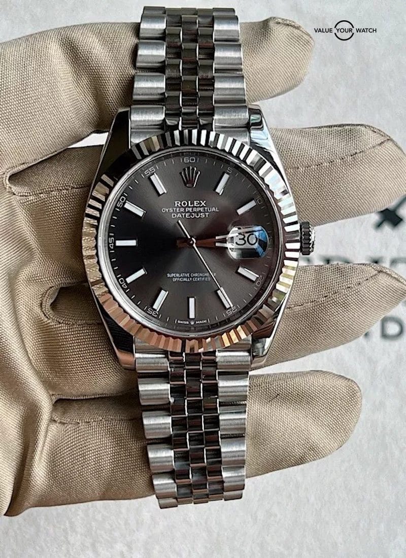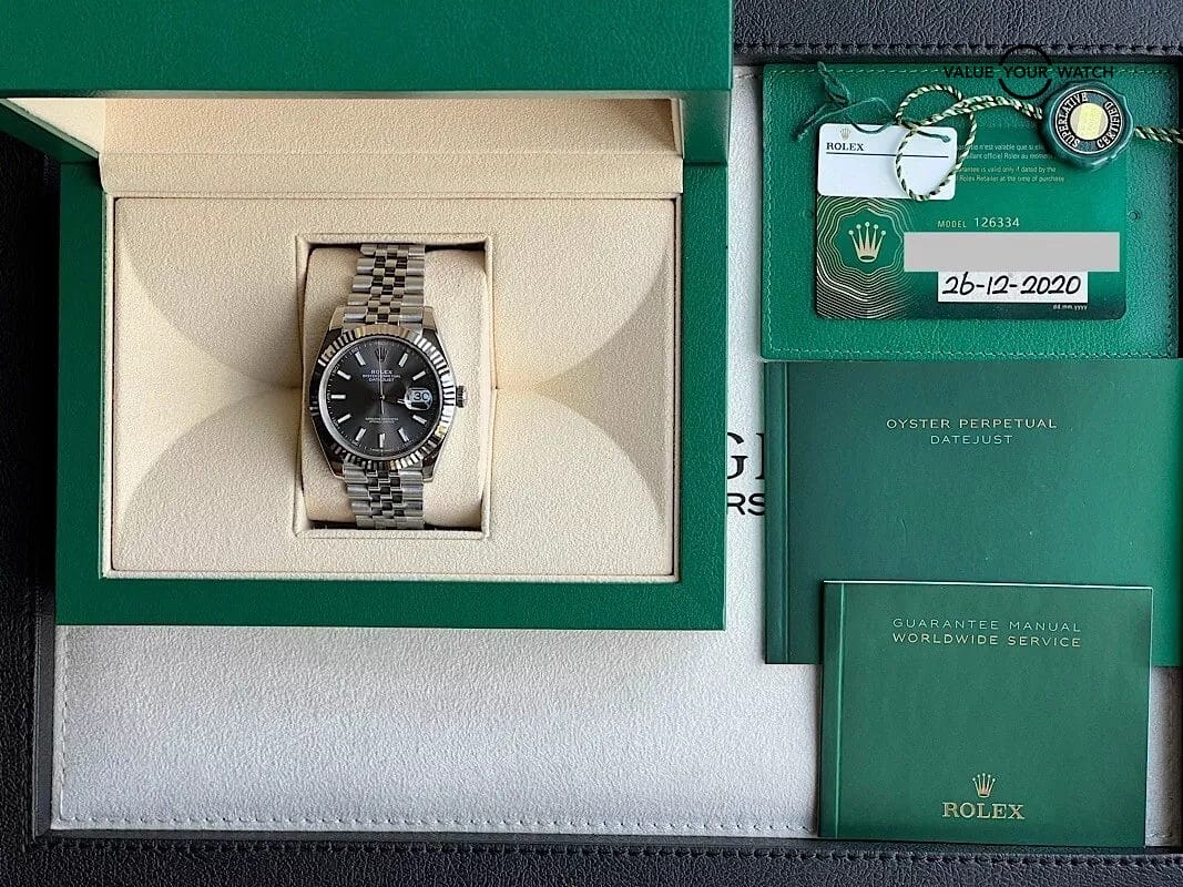 Rolex Datejust 41mm M126334 Slate Jubilee Bracelet Fluted Bezel Box & Papers