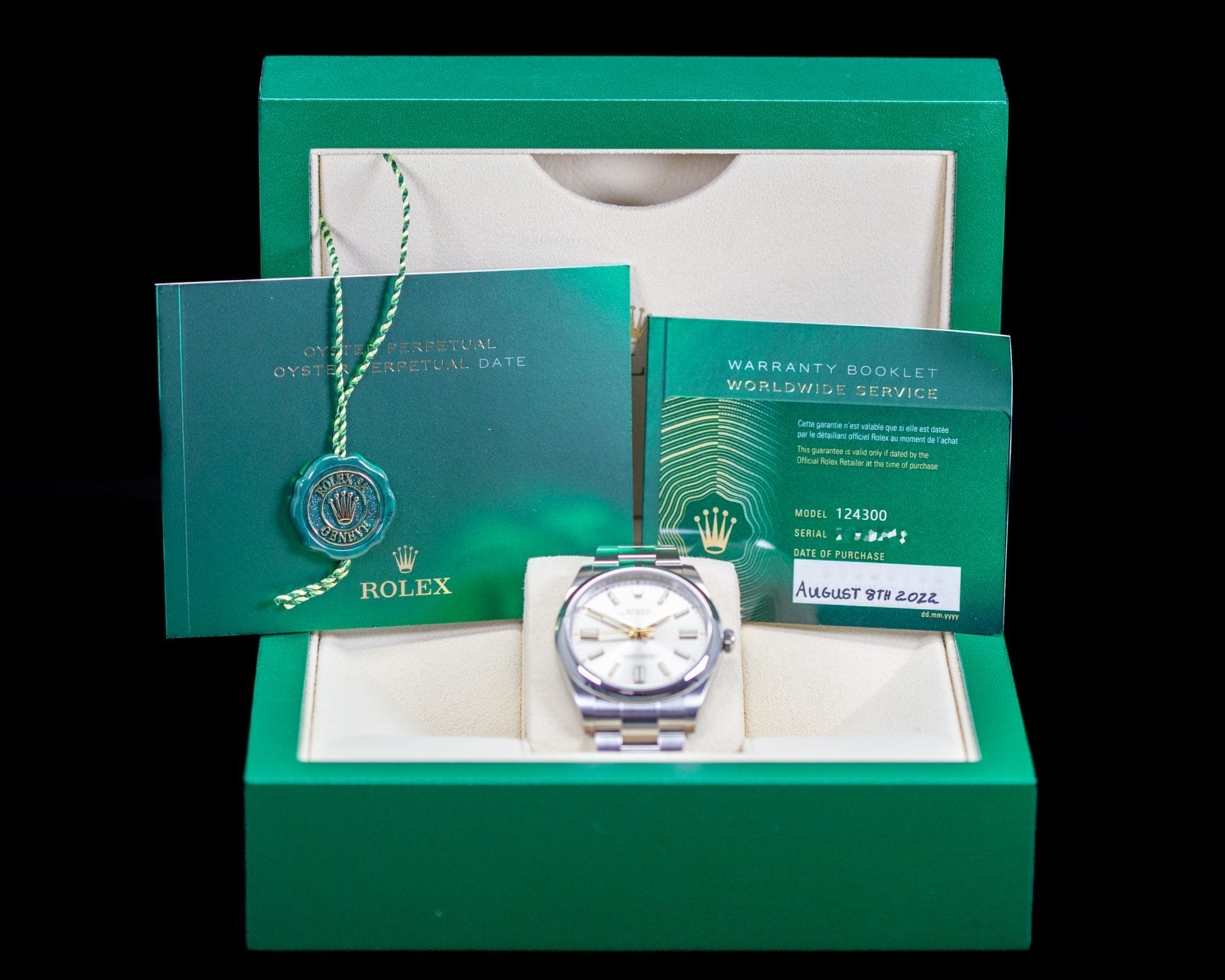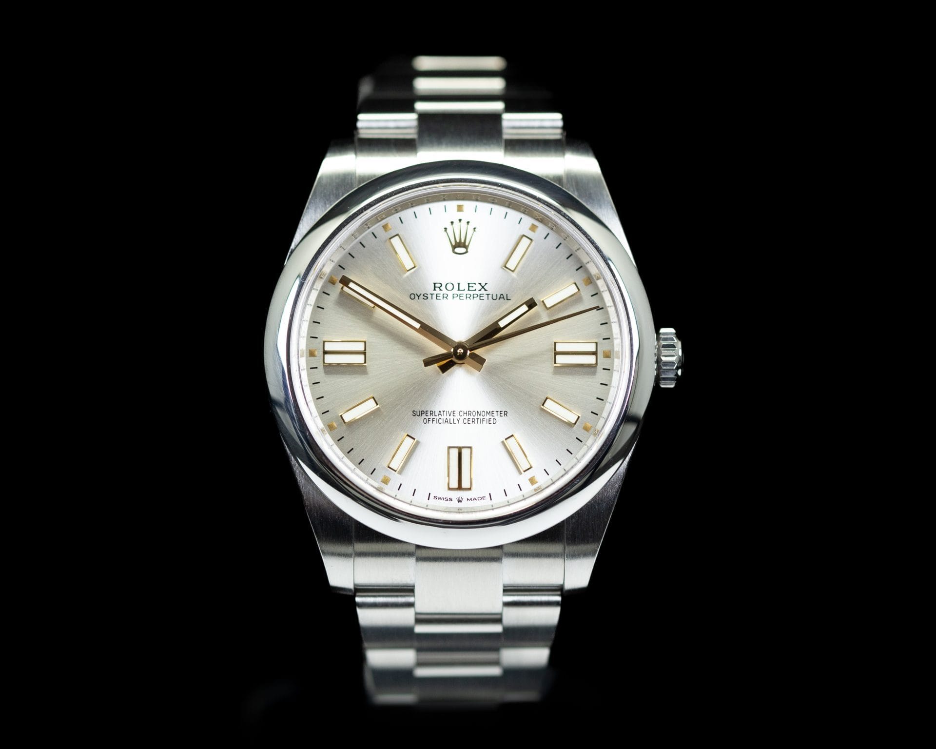 Presenting the Rolex Oyster Perpetual 41, Reference 124300. A contemporary take on one of Rolex’s most timeless and versatile models. Known for its clean aesthetics and robust construction, the Oyster Perpetual line represents the purest expression of Rolex design.