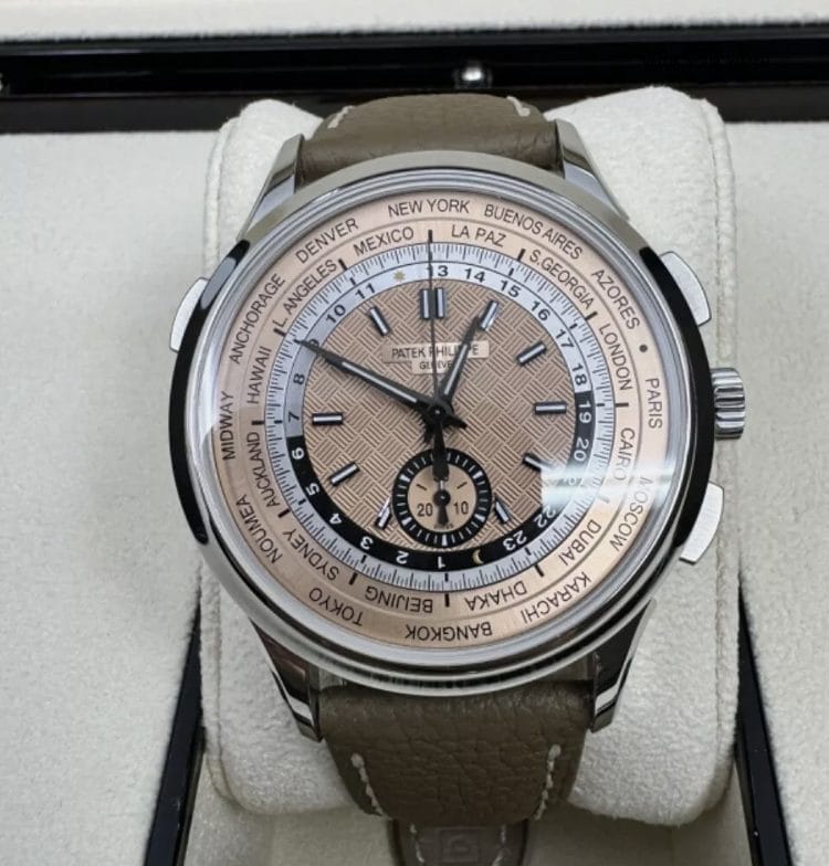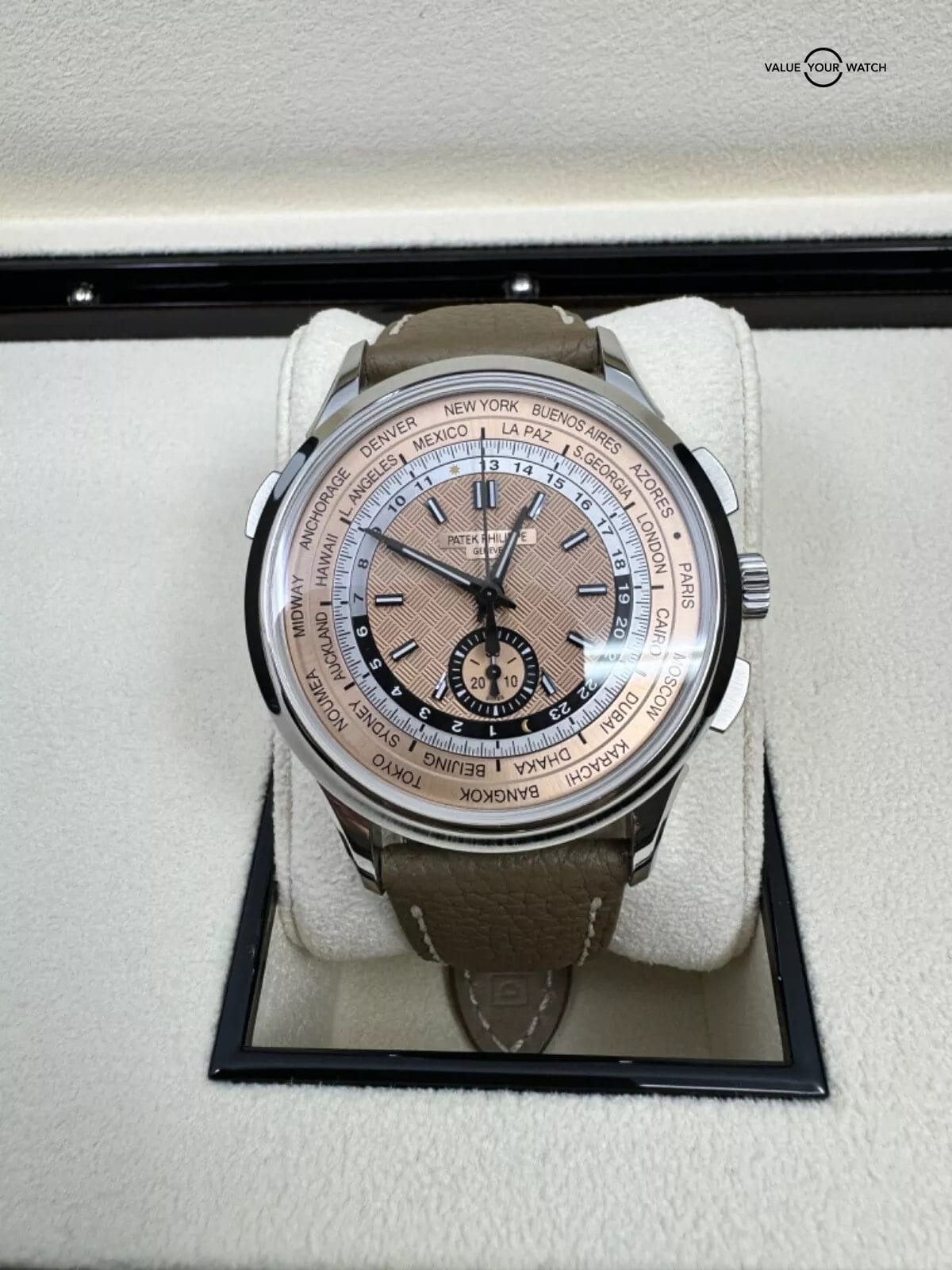 Salmon Dial Patek Philippe 5935A-001 World Time 5935A Flyback Chronograph Steel