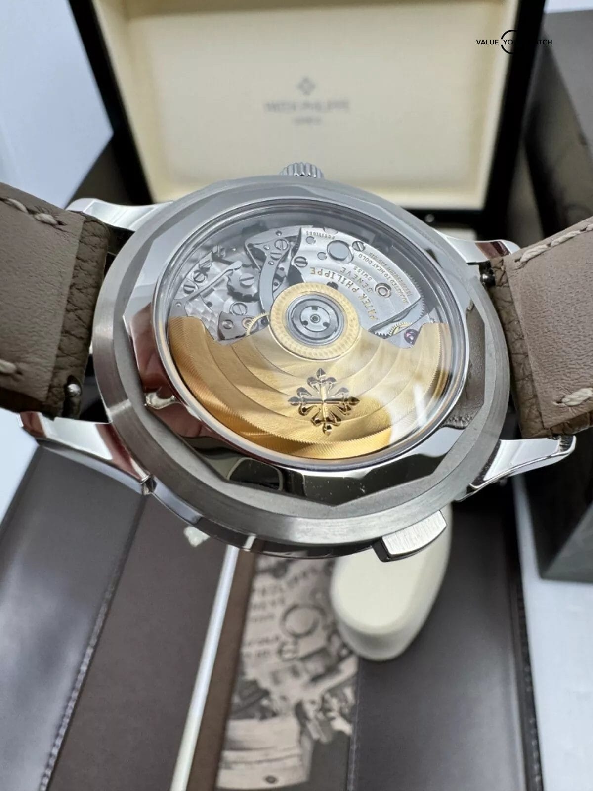 Watch is in really good condition, has small light scratchesHas everything but the certificate of origin, it’s possible that the AD kept it from the original client in order to prevent flipping. But we know how that goes.This kind of watch is all about complications, and obviously a lot of the precious metal versions get a little bit chunky and heavy. But this is so comfortable to wear due to its light steel construction (a relatively rare material for Patek) it’s so practical.