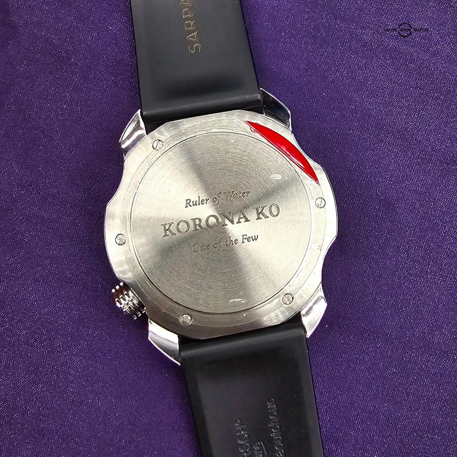 The Korona Ruler of Water is cased in stainless steel at 42mm, and is waterproof to 300m. One cool feature is that in the 2nd crown position, you can rotate the inner bezel! So it functions as a true dive watch.