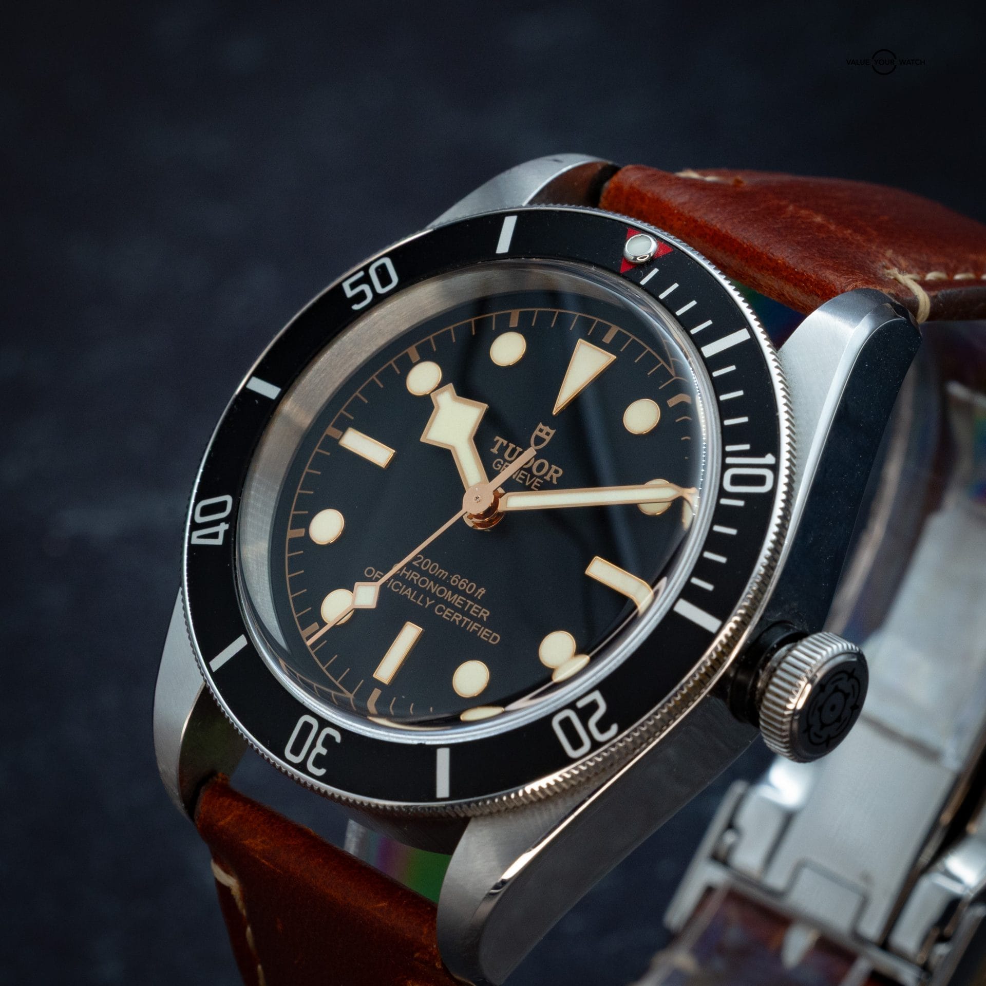 The Black Bay 79230N combines Tudor’s tool-watch DNA with a warm, vintage aesthetic. This reference features a black bezel and gilt accents, powered by an in-house MT5602 movement with 70-hour reserve. A robust and collectible full set from 2020.