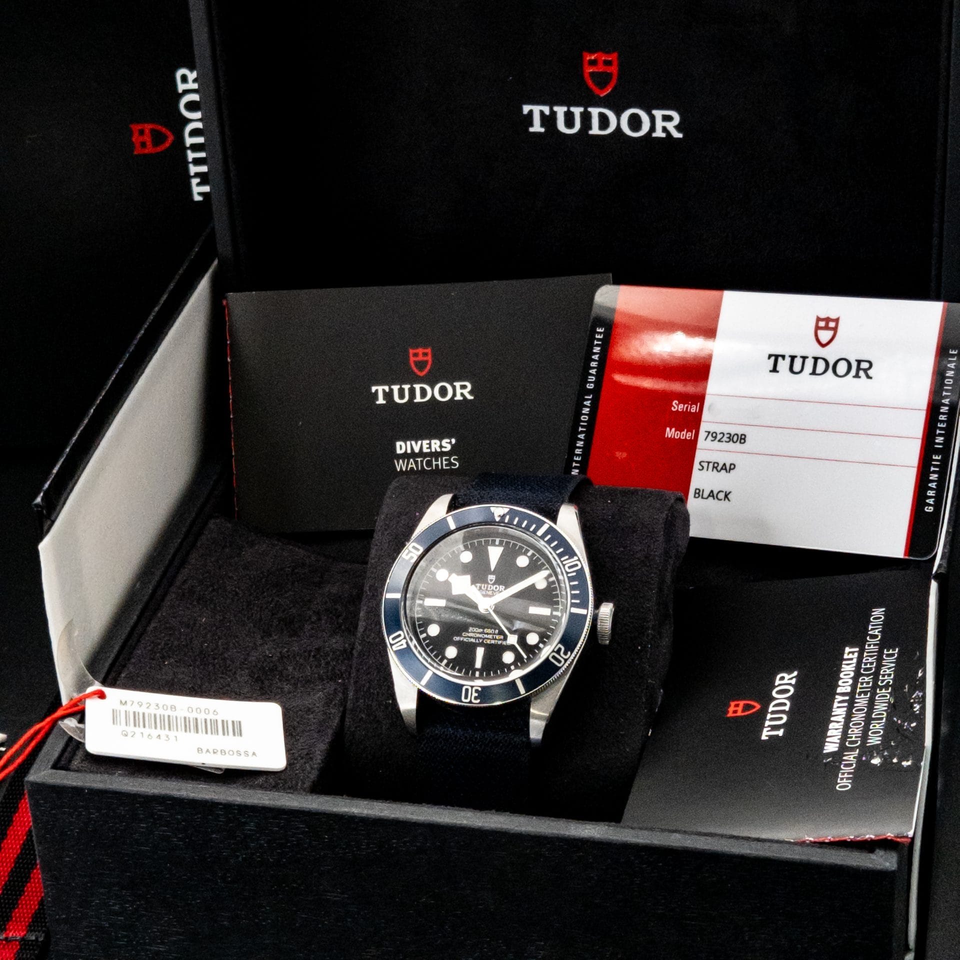 🕰️The Tudor Black Bay 79230B is a 41 mm stainless steel dive watch blending Tudor’s heritage design with modern engineering. With a black dial accented by grey indices (or luminescent markers), it features a bold blue bezel, snowflake hands, and a domed sapphire crystal. Inside, it houses Tudor’s in-house MT5602 automatic movement, delivering approximately 70 hours of power reserve and 200m water resistance — rugged, reliable, and instantly recognizable.