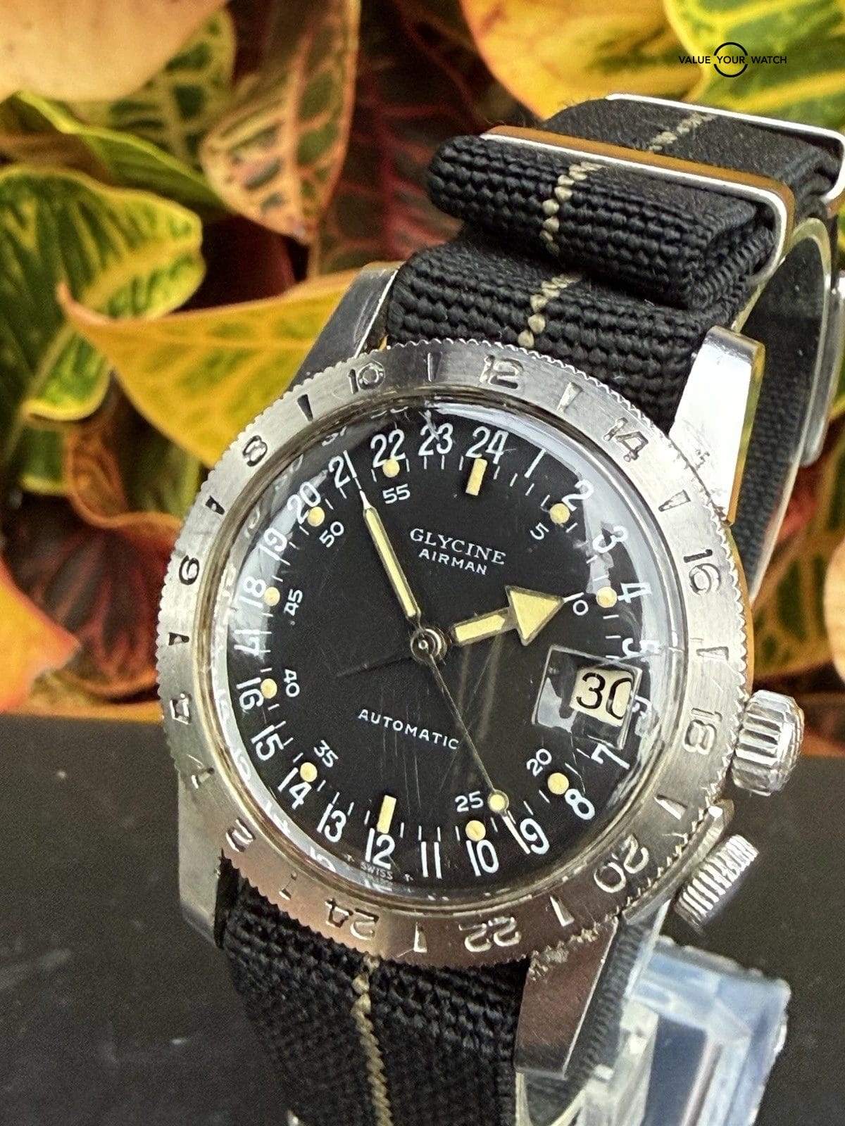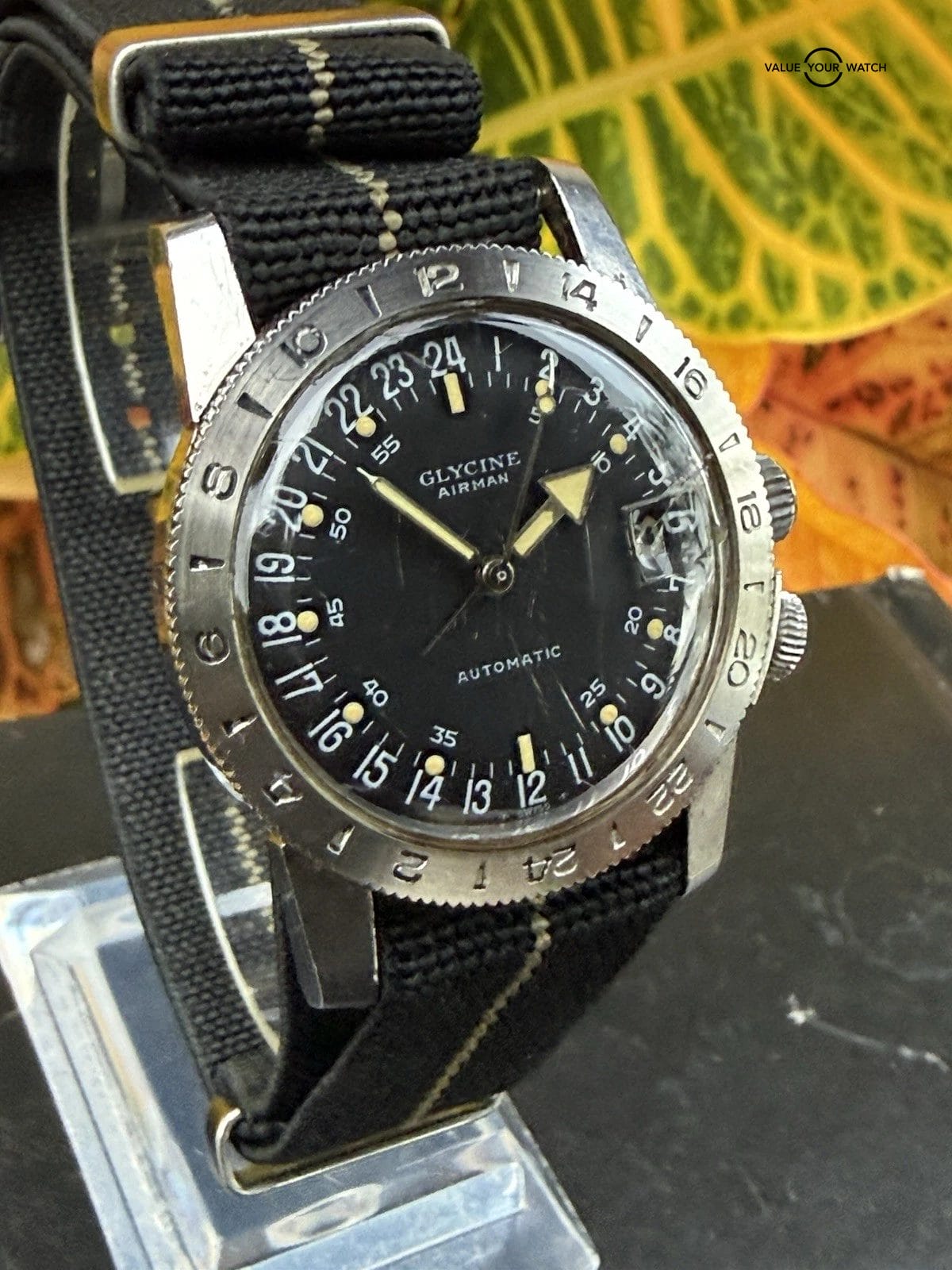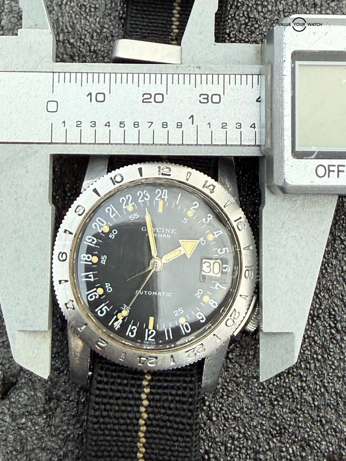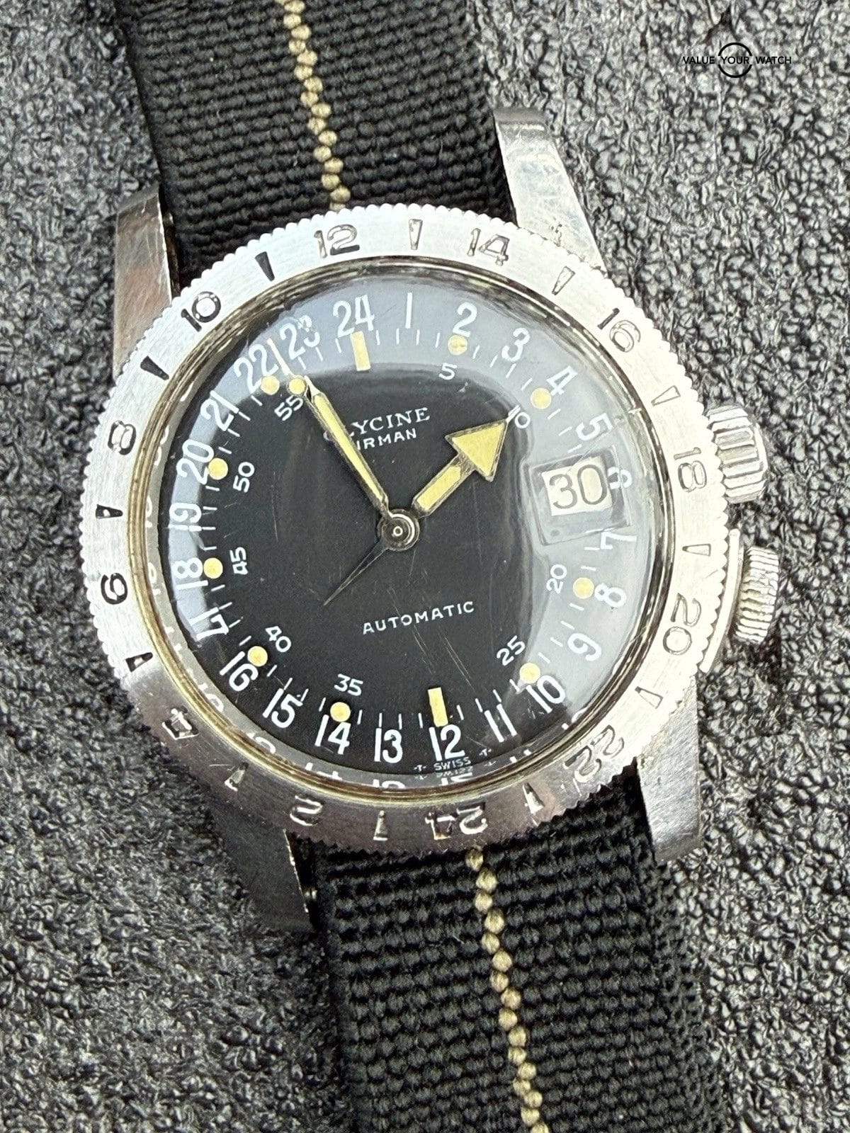 Specification: Vietnam Era Glycine Airman Automatic 24 Hour GMT Watch Hacking Runs Estate Sale