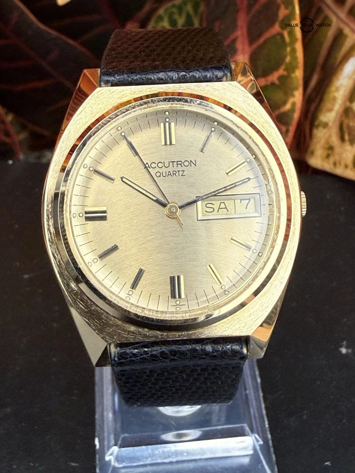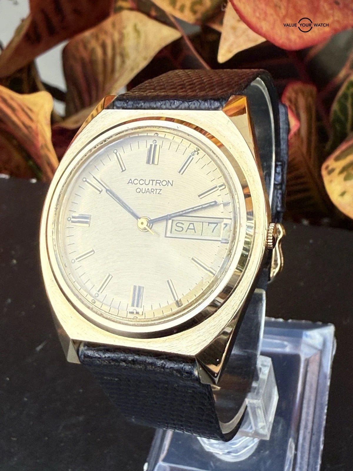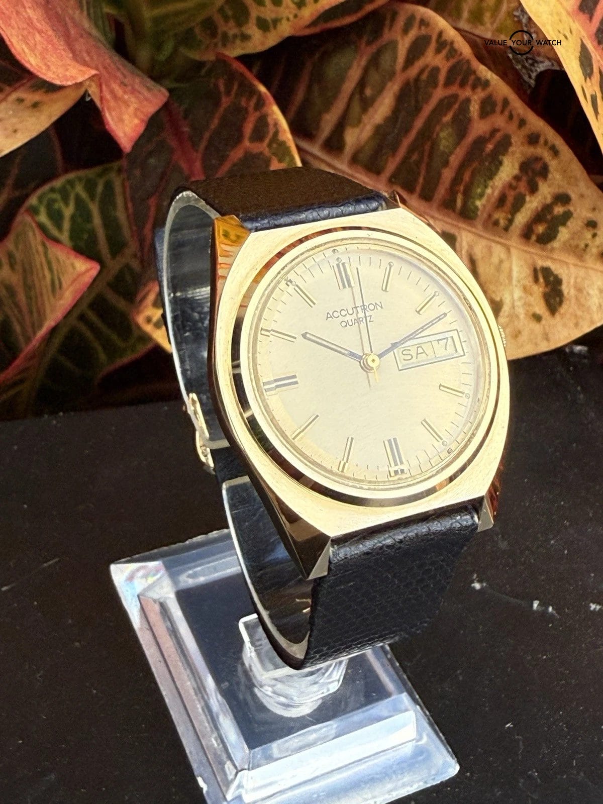 Specification: Vintage Bulova Accutron P0 1980 Swiss Quartz Day / Date Watch Engraved Full Set