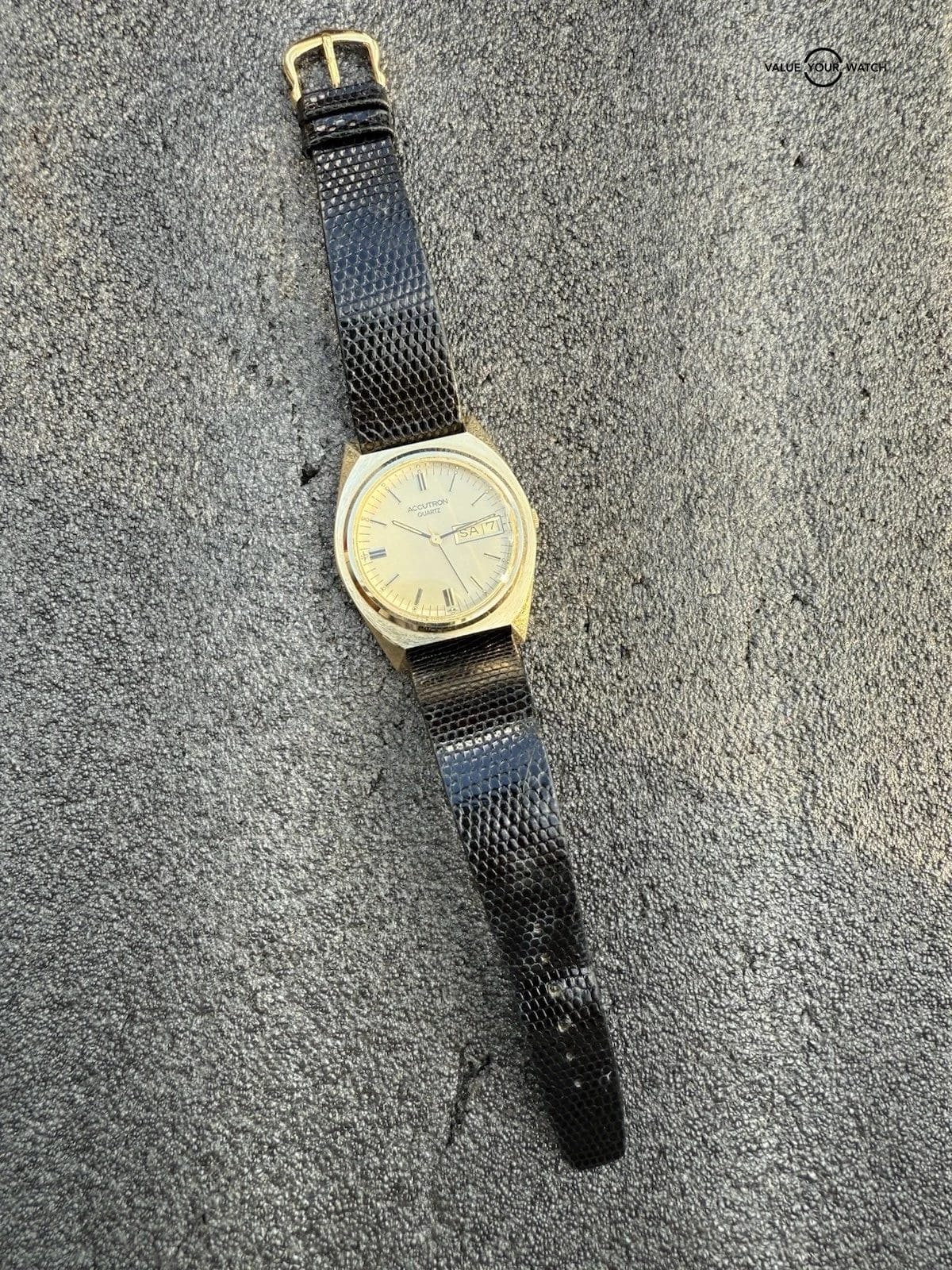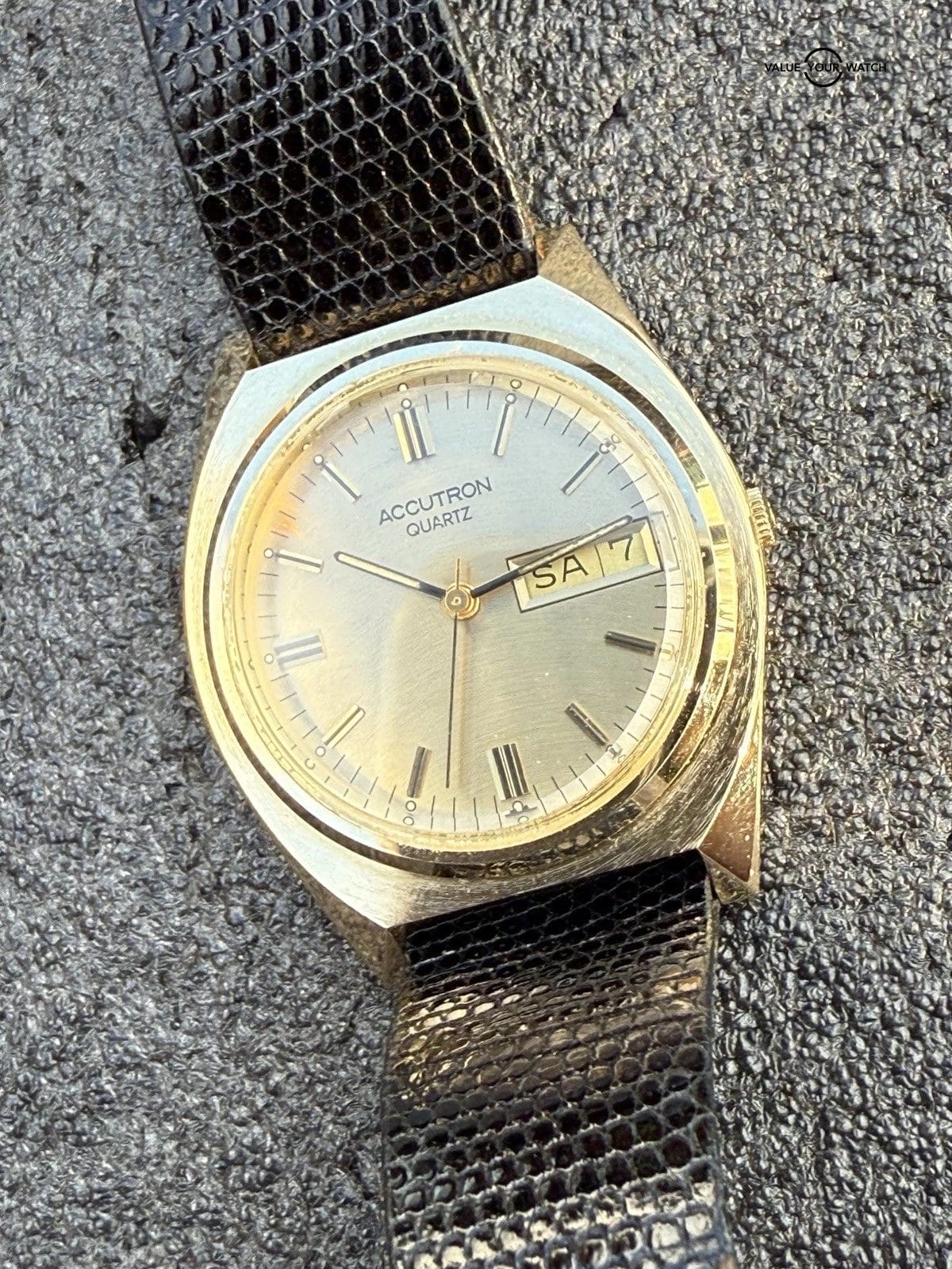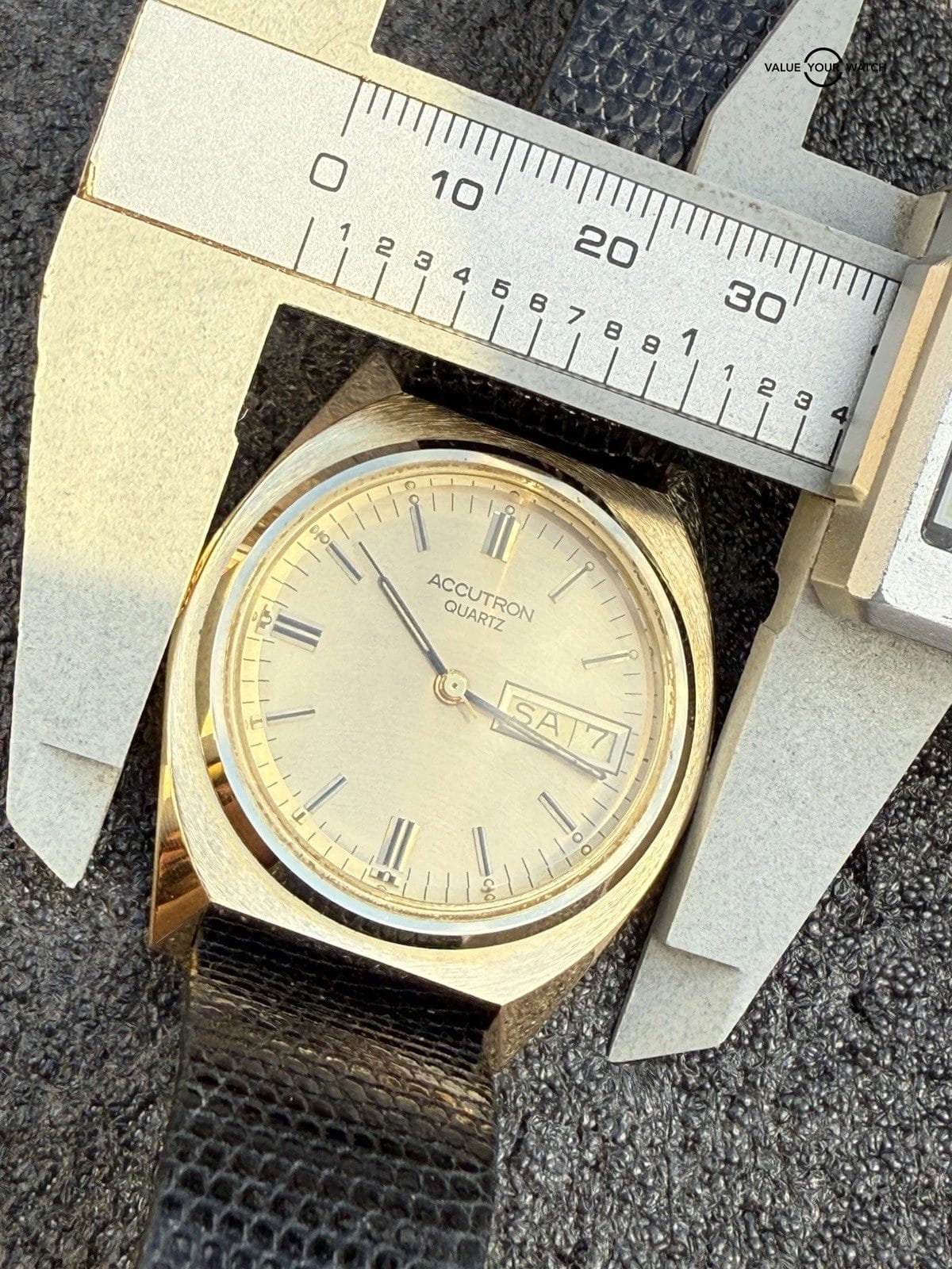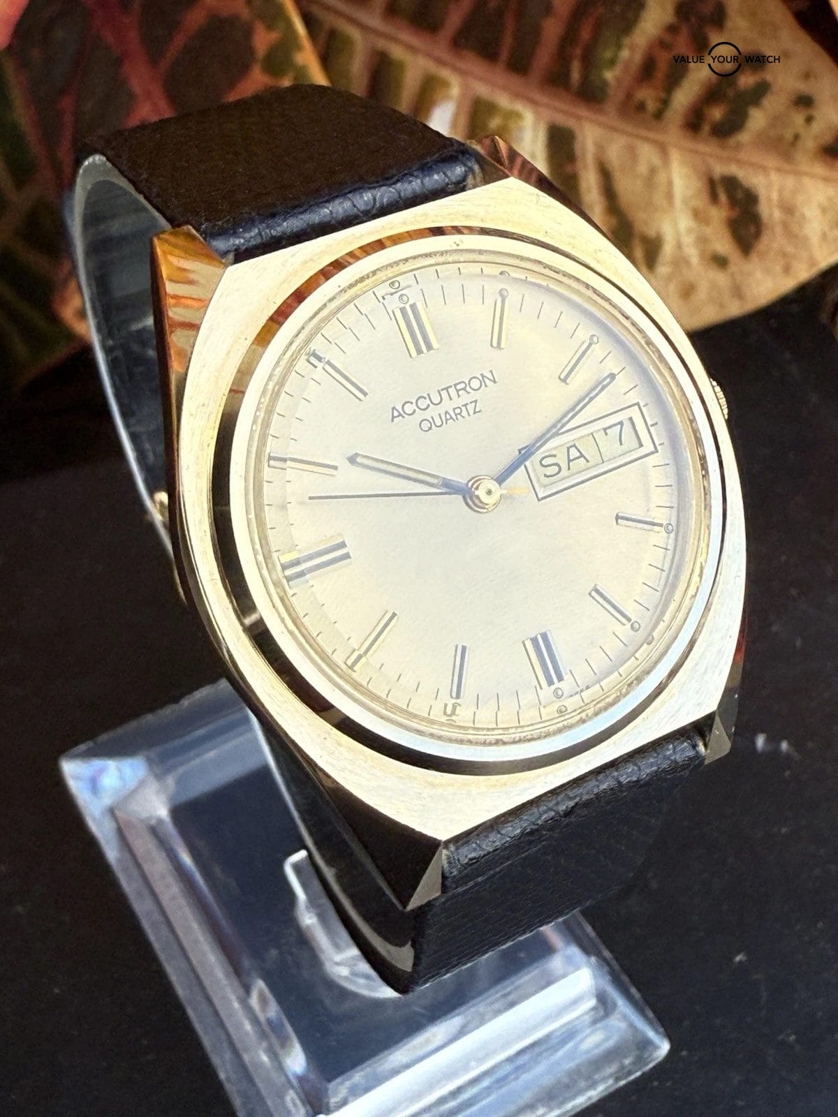 Specification: Vintage Bulova Accutron P0 1980 Swiss Quartz Day / Date Watch Engraved Full Set