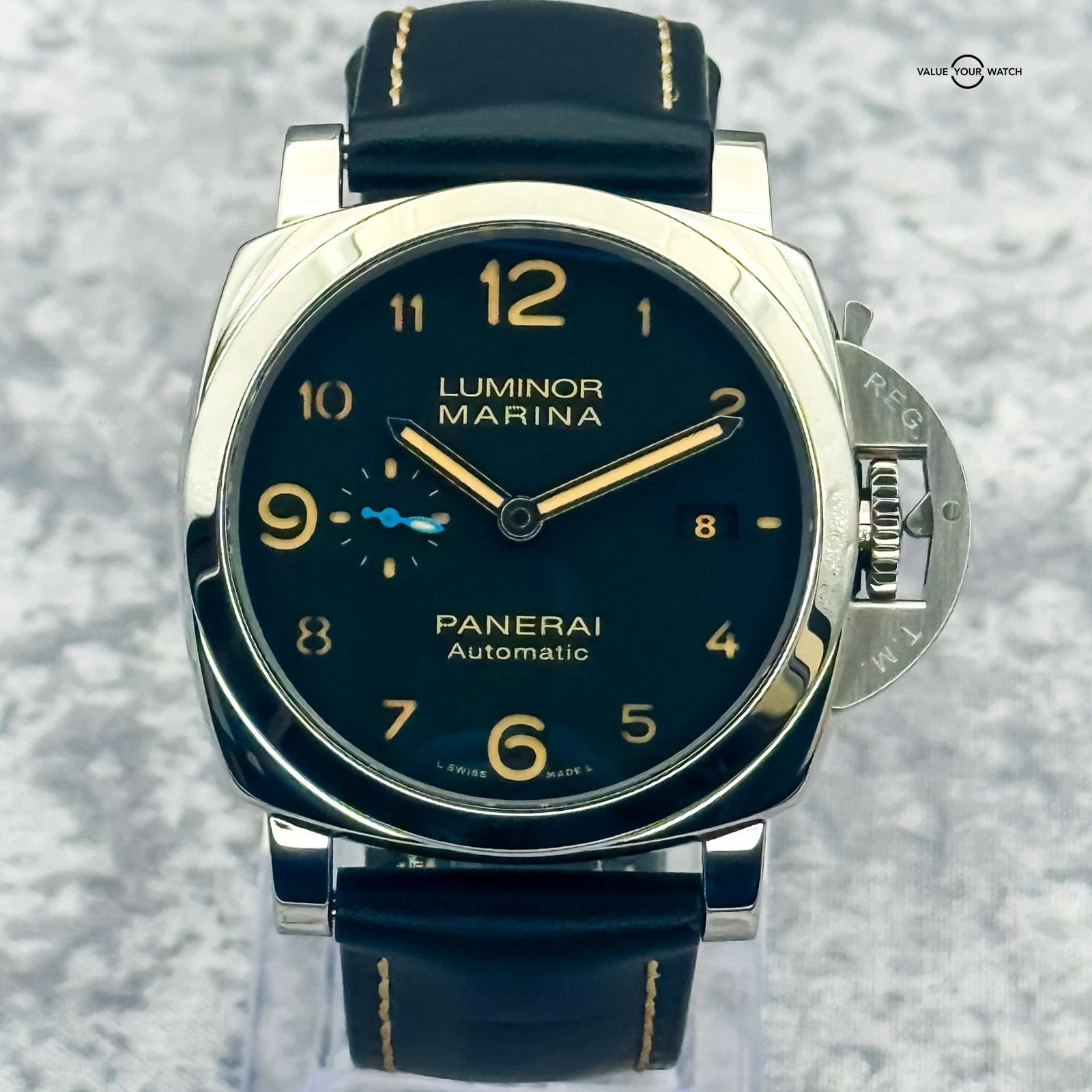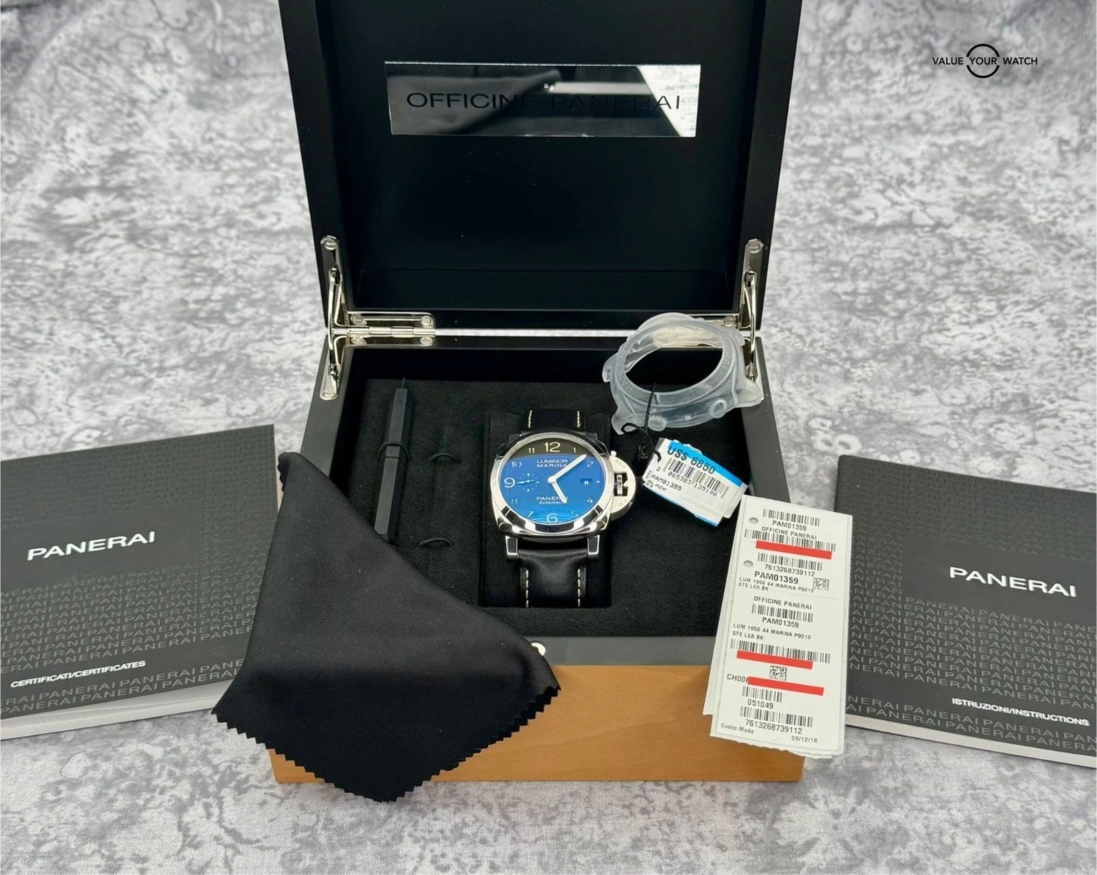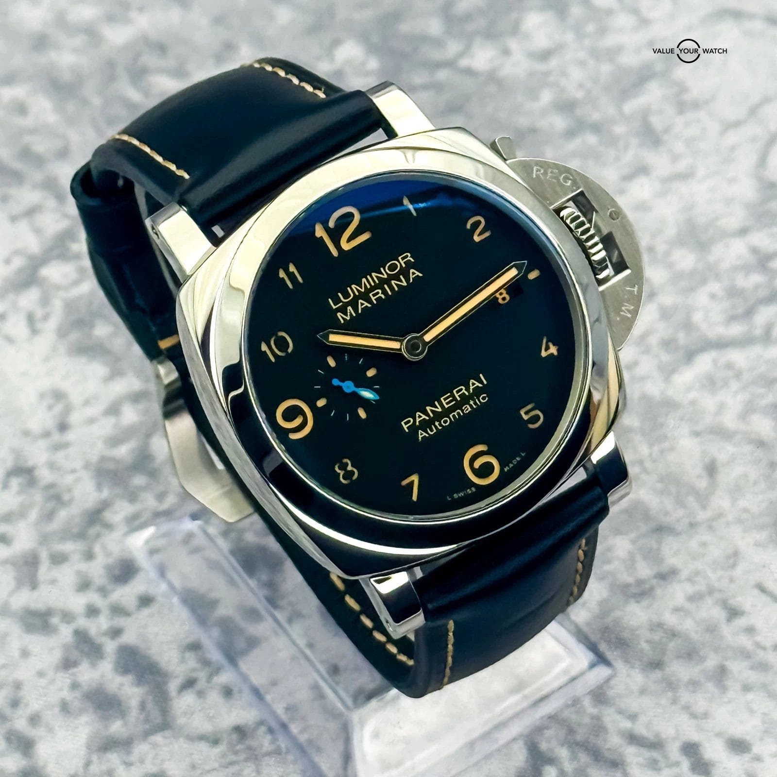 Specification: 2019 Panerai Luminor Marina 1950 3 Days 44MM Black Dial Leather Strap (PAM01359)