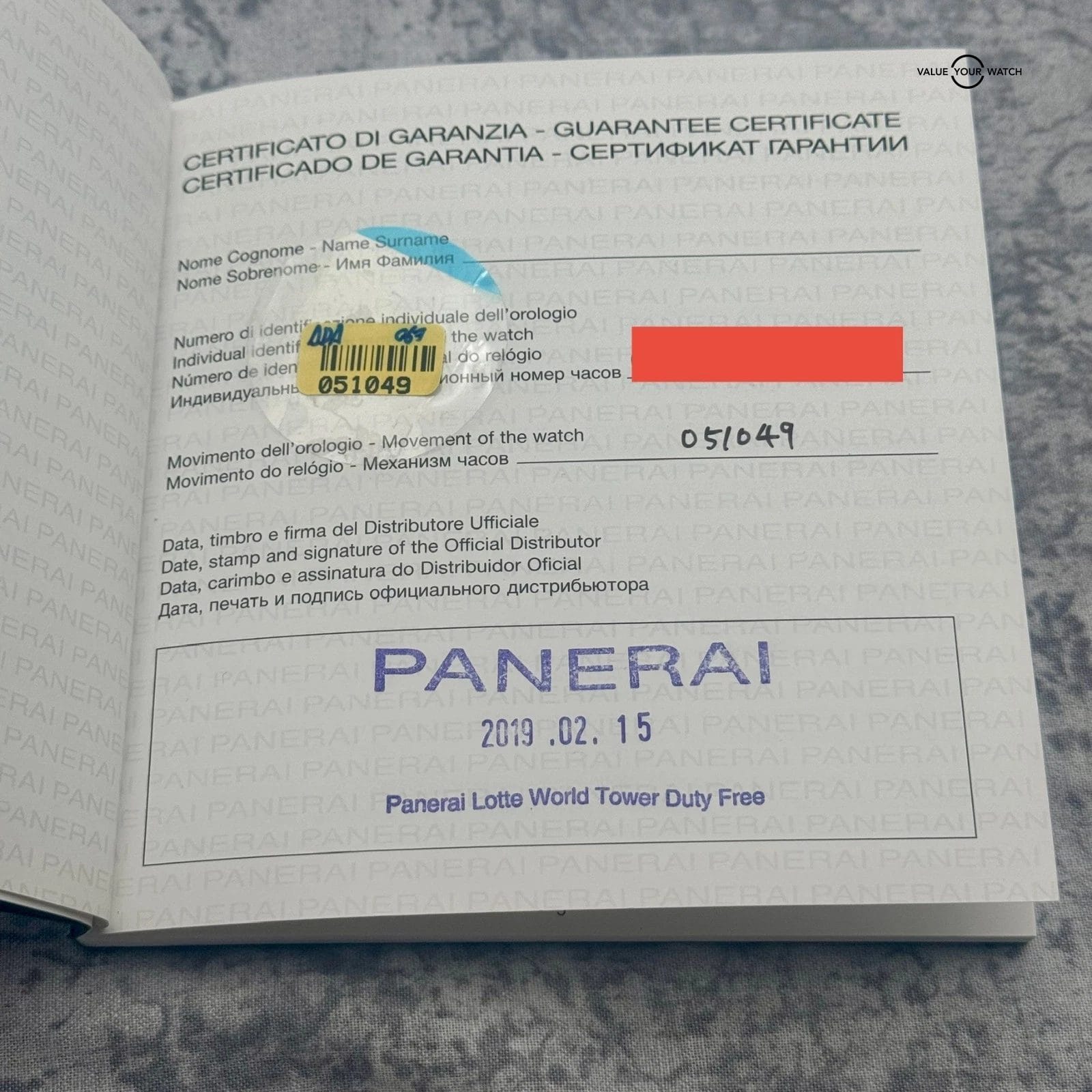 Warranty/Guarantee Certificates (Date: 02-15-2019)