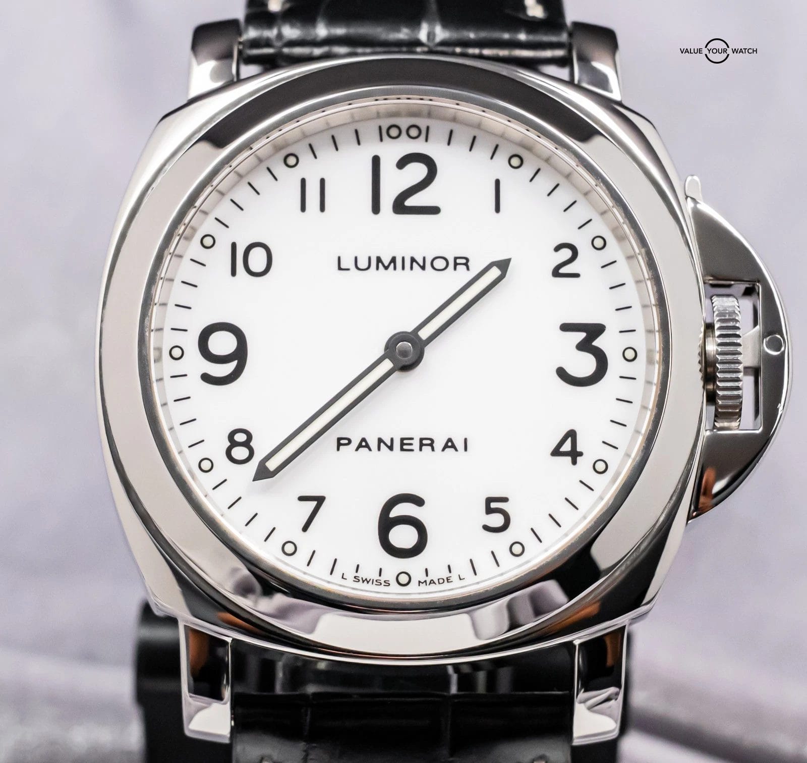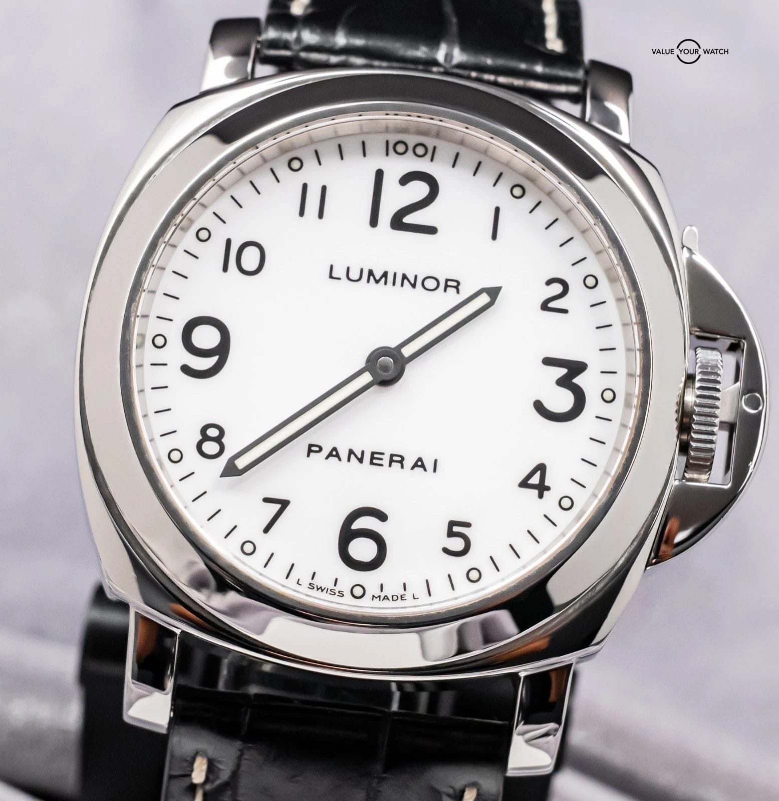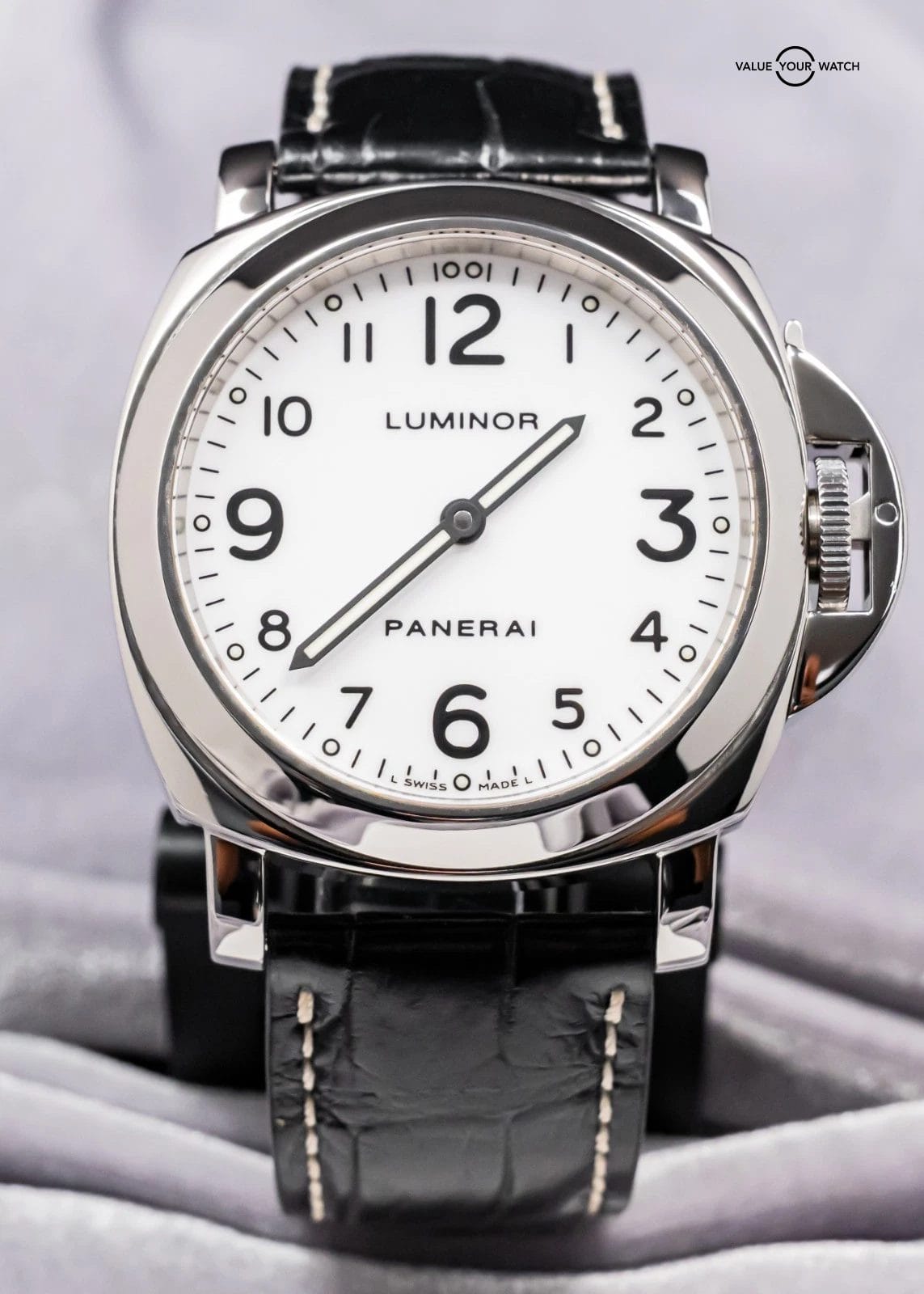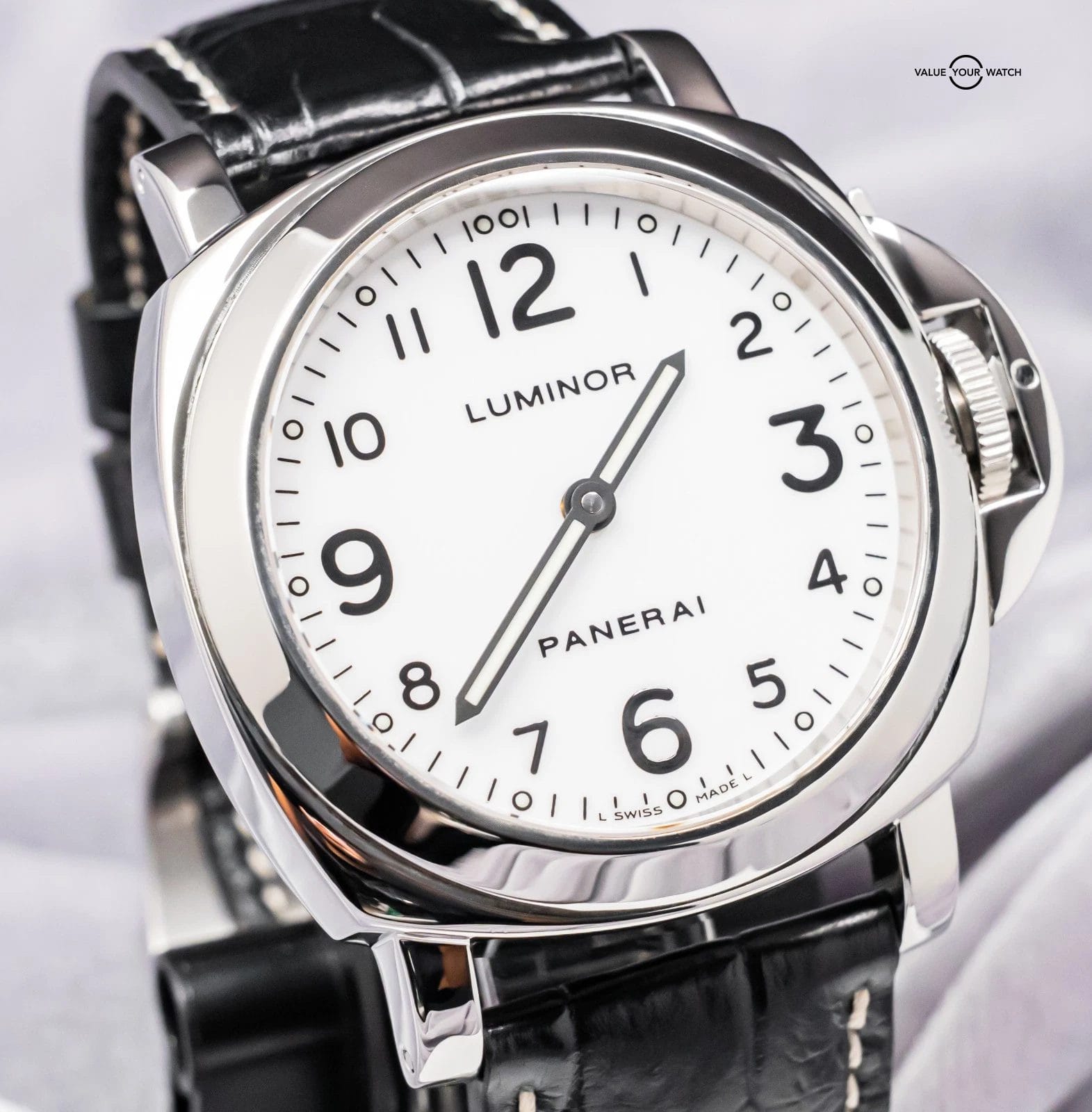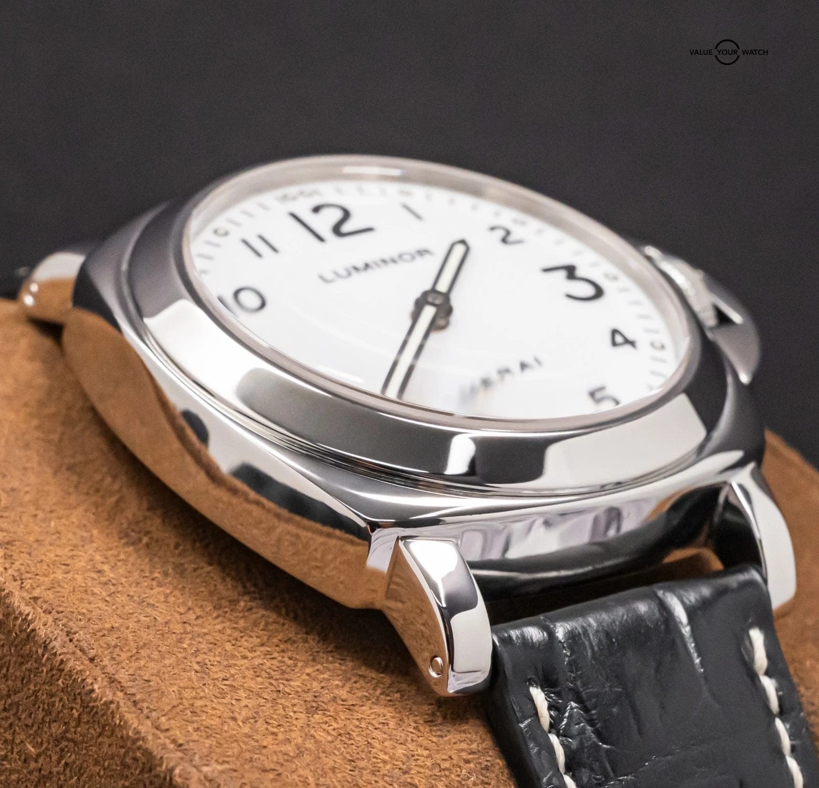 STUNNING Panerai 10 Luminor Base 44 mm with White Dial and Black Panerai Alligator Strap! Arrives as watch only and is a “C” serial, denoting 2000 manufacture at Panerai. This is at a solid price point for a White Luminor. Ready to be on wrist!