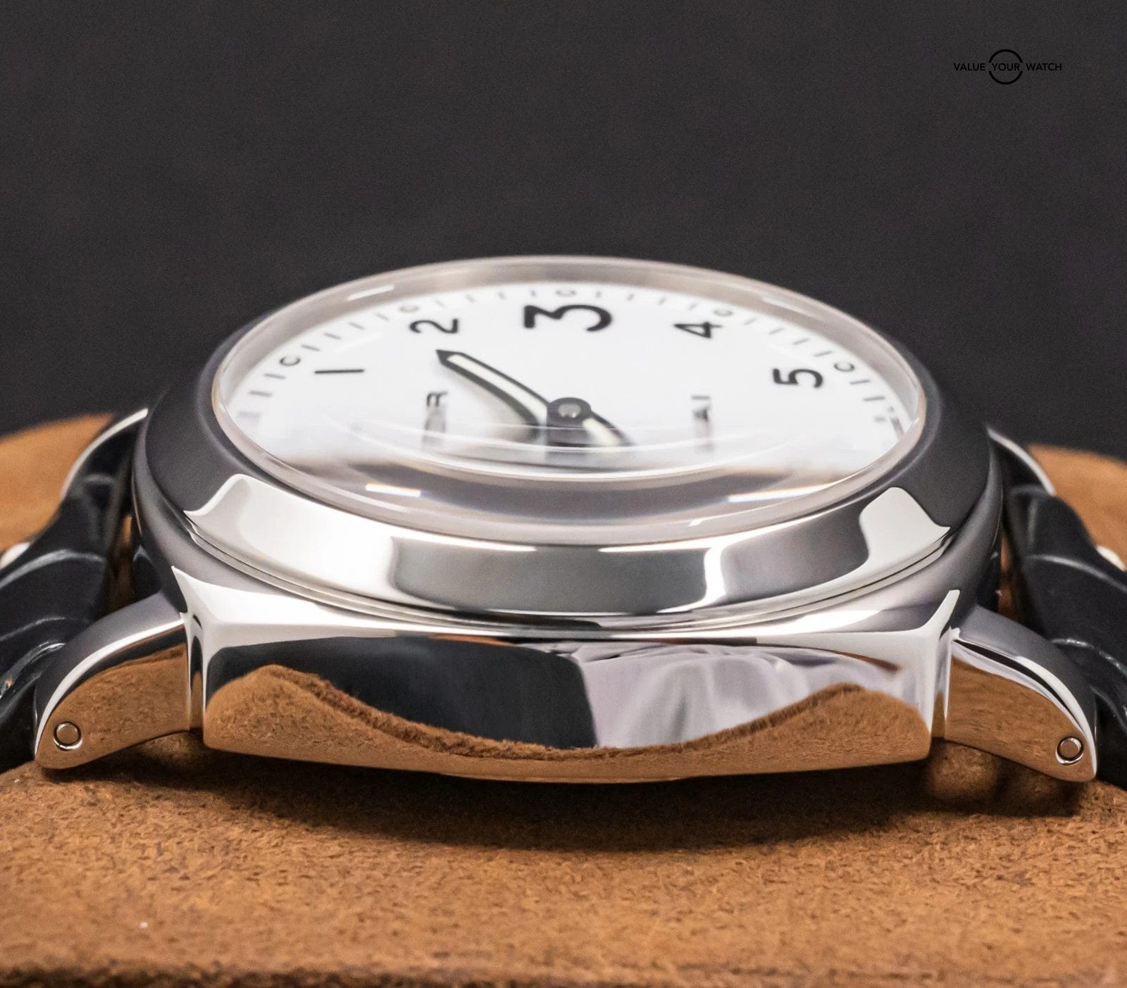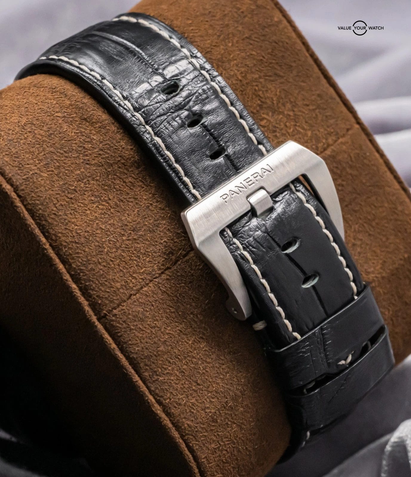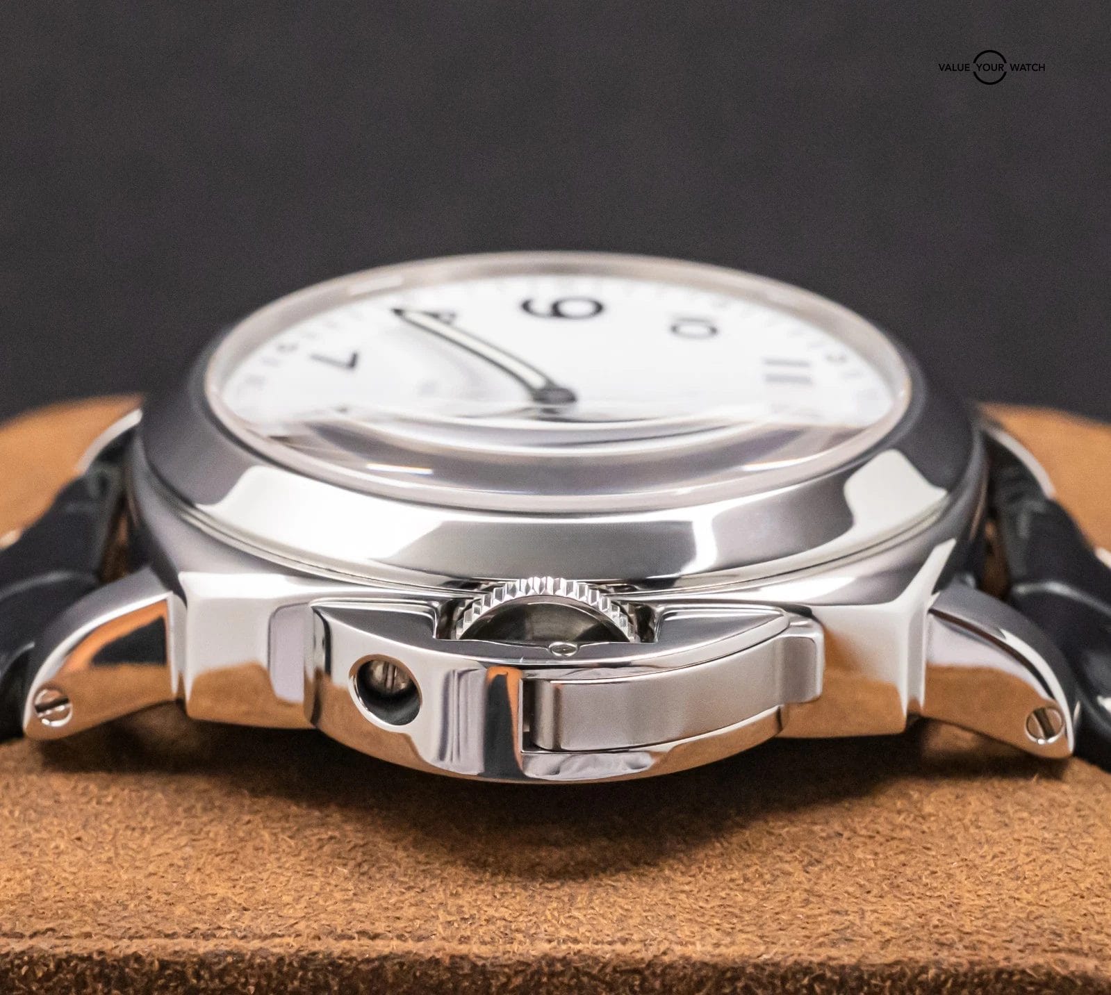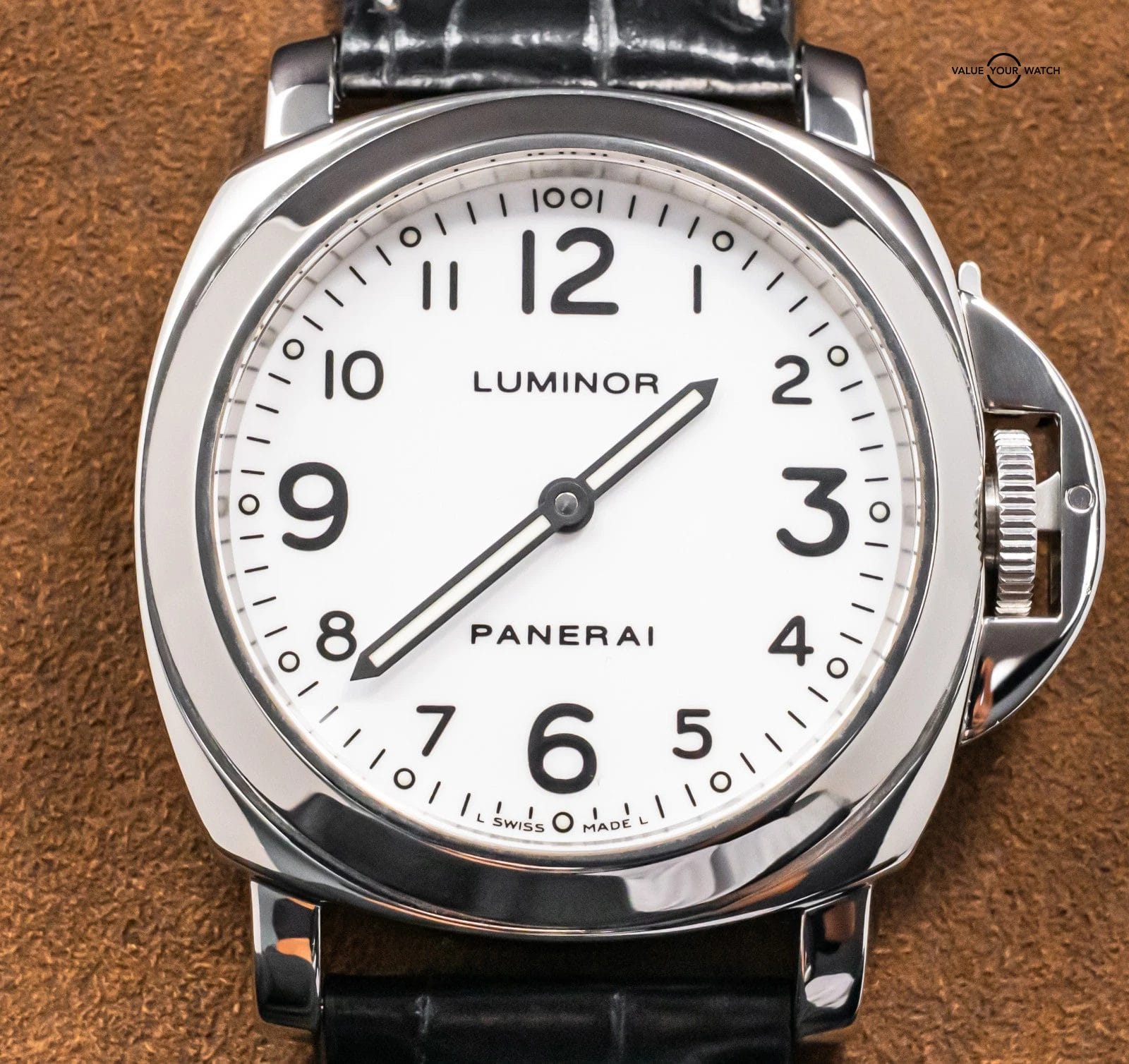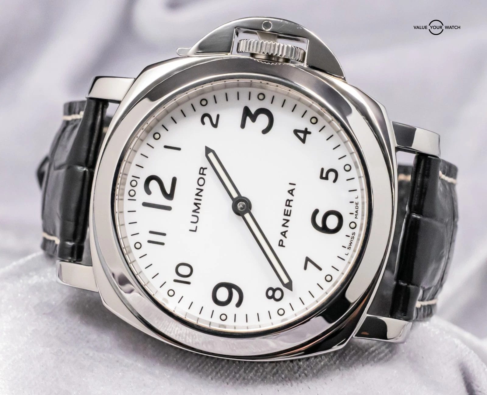 STUNNING Panerai 10 Luminor Base 44 mm with White Dial and Black Panerai Alligator Strap! Arrives as watch only and is a “C” serial, denoting 2000 manufacture at Panerai. This is at a solid price point for a White Luminor. Ready to be on wrist!