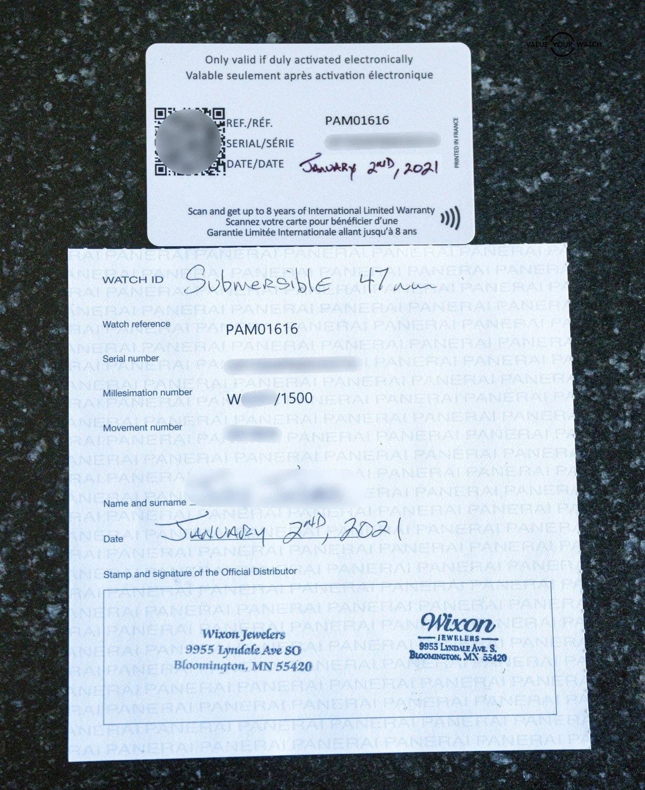 Do not hesitate to contact me with any questions. I sell over 900 watches per year, have fantastic reviews online, and thousands of references; I seek a very simple and pleasant buying experience for my clients through fostering relationships in the watch community. The serials have been blurred for privacy.