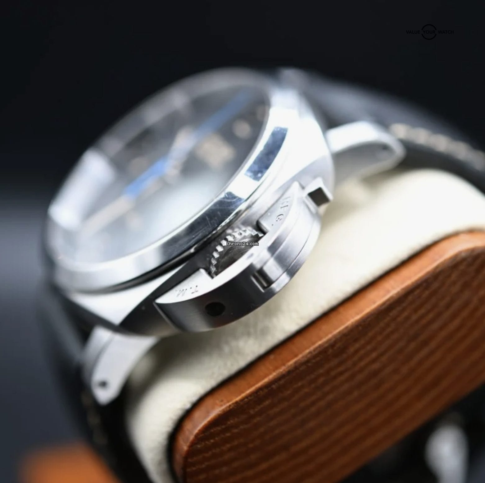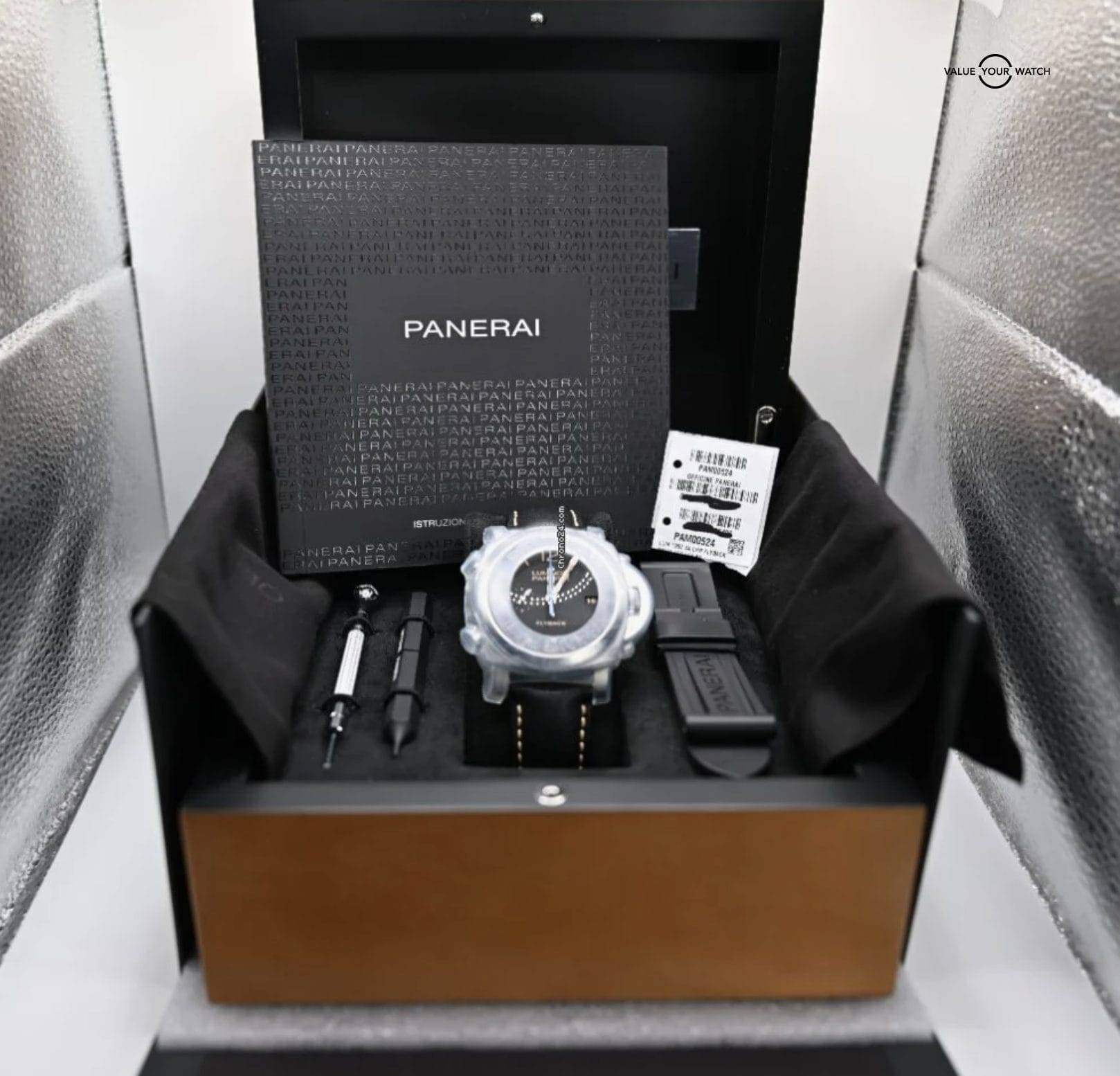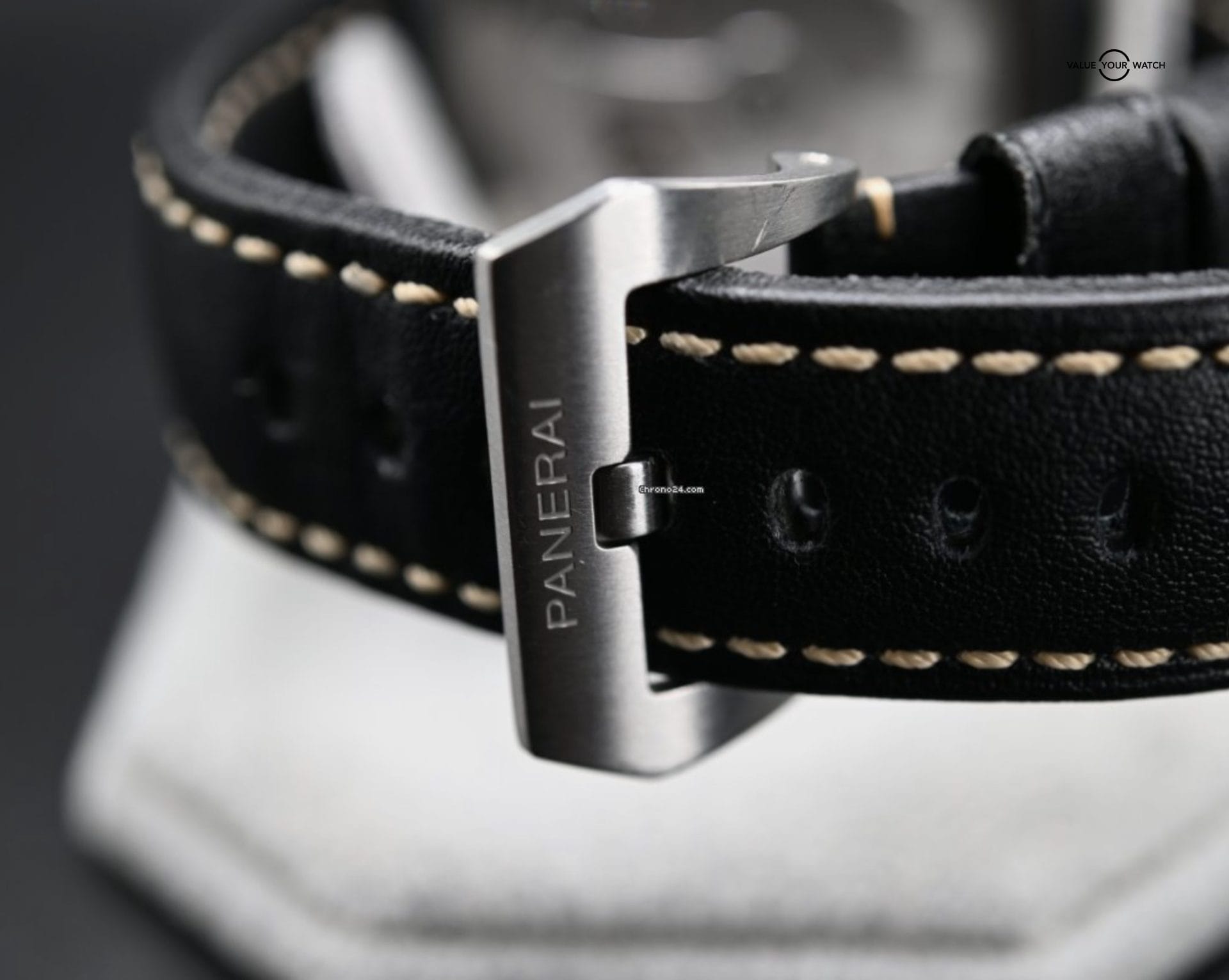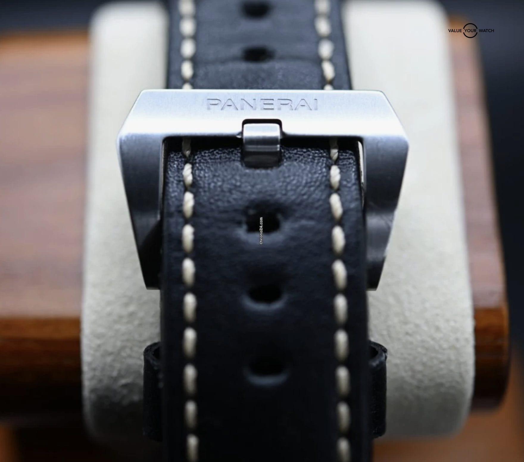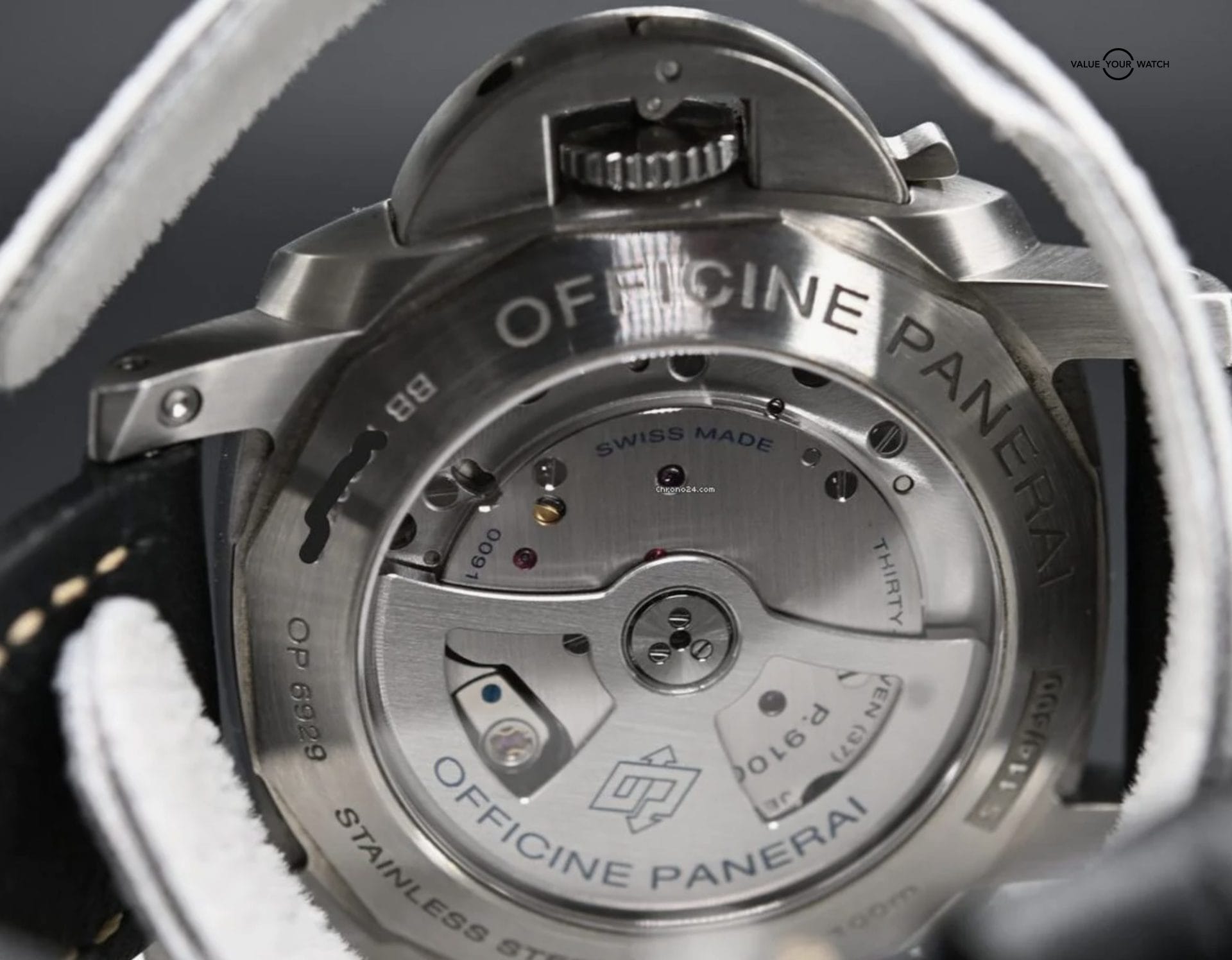 The PAM00524 has a transparent case back, which will allow you to view the automatic P.9100 movement, which provides a 72hr power reserve. Retail:$11,200