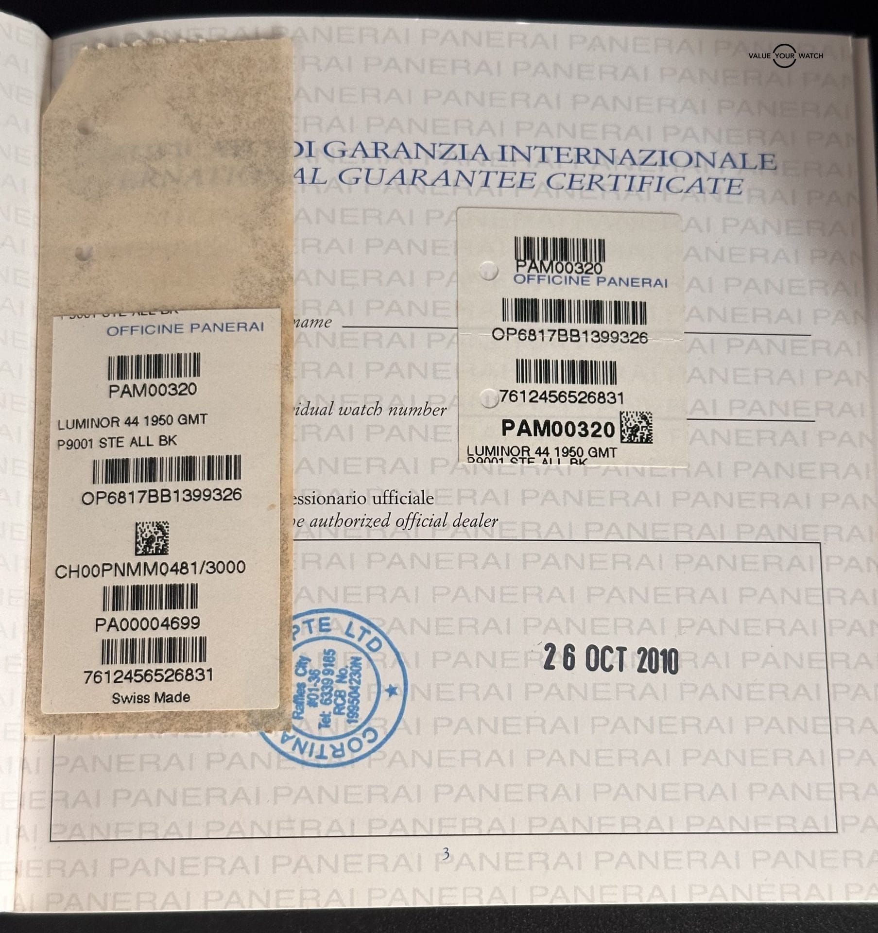 Specification: Panerai Luminor 1950 3 Days GMT 44mm steel PAM 00320 full set