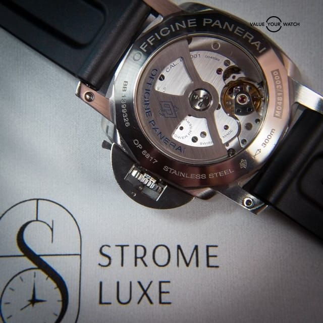 Condition: This discontinued model is in good condition, showing minimal signs of wear for its age. The sapphire crystal shows very minor imperfections near the 12 o’ clock & near the date wheel, both very hard to see from the naked eye(see last photo), and the case is free from major scratches or dents. Please see photos carefully, they depict the condition of the watch as accurately as possible. The original rubber strap is in great shape, offering comfort and style. Time Graph results show the watch is keeping excellent time & shows 0 signs of needing servicing. Features: – Model: PAM 00320 – Case Size: 44mm – Movement: Automatic, Caliber P.9001 with 3 Days Power Reserve – Functions: Hours, Minutes, Small Seconds, Date, GMT – Water Resistance: 300 meters – Dial Color: Black with luminous hour markers – Case Material: Stainless Steel – Bezel: Polished Stainless Steel – Strap: Original Panerai Leather Strap with Panerai Buckle Included in the Sale: – Original Panerai Boxes – Tags – Instruction Manuals -Extra Pins -Tools Shipping: Overnight/insured via FedEx Why Buy From Me? I am a trusted seller with a history of positive feedback. I aim for a smooth transaction and your satisfaction is my top priority. Please feel free to reach out with any questions or for additional photos. Thank you for looking! IG📸: @StromeLuxe |
