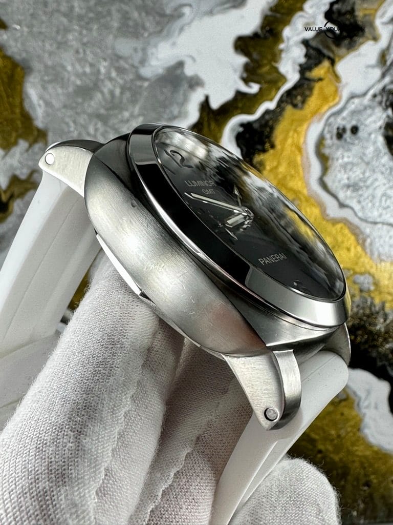 PAM 320 Luminor GMT 3 Day Power Reserve – an iconic and instantly recognizable 1950 style Luminor wrapped in a well-balanced blend of polished and brushed stainless steel. Panerai packed the 320 with more than just meets the eye – in addition to a date window and secondary hour hand, the watch features what is known as “zero reset hacking seconds”, a convenient touch not commonly found in newer models. Panerai also tucked in a power reserve indicator, viewed through the exhibition caseback – giving you a reason to stare at all 229 components of Panerai’s in-house P.9001 movement.