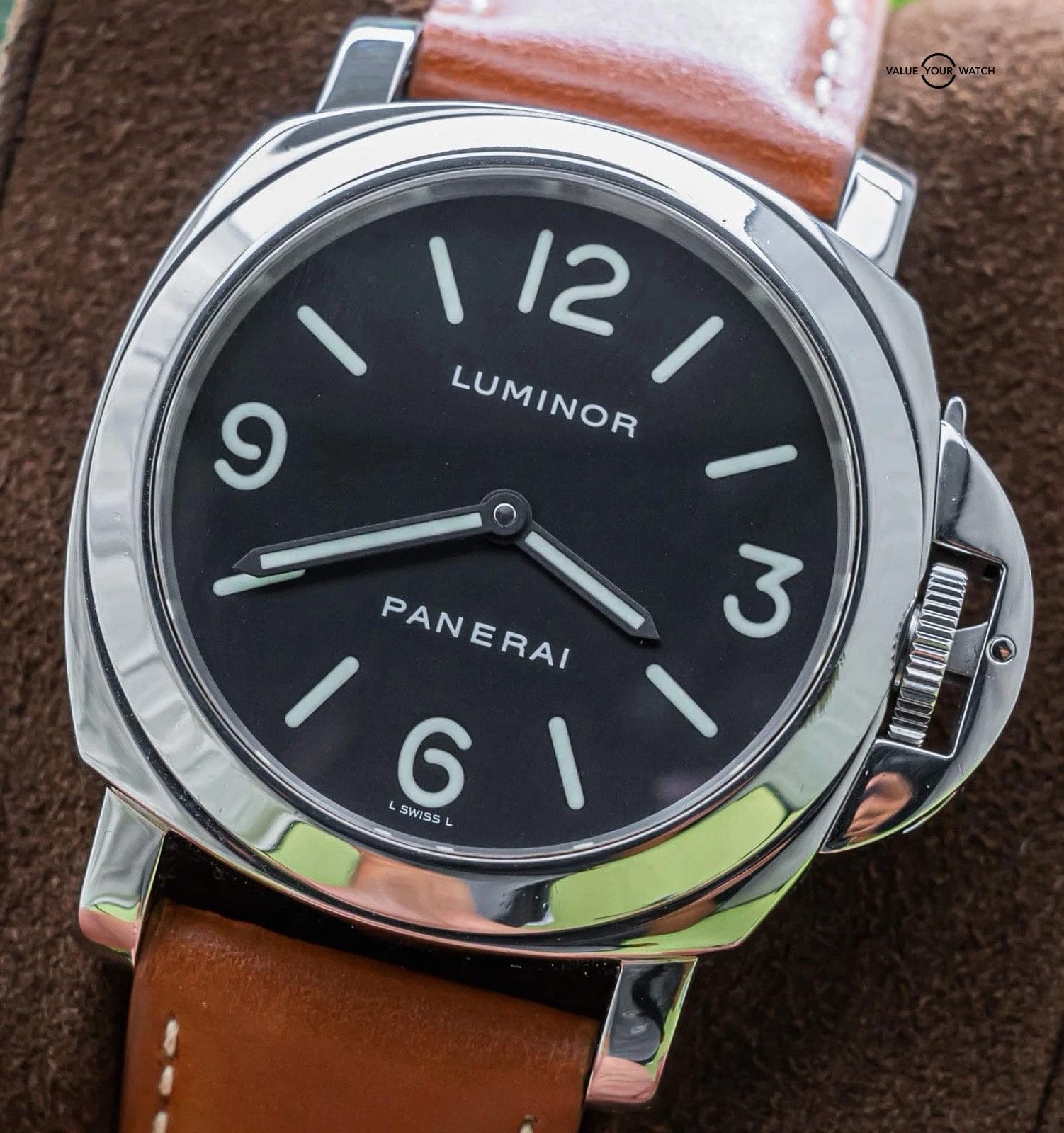 Specification: Panerai Luminor Base 44 mm SERVICED Black Dial Box Brown Leather PAM00002 PAM2