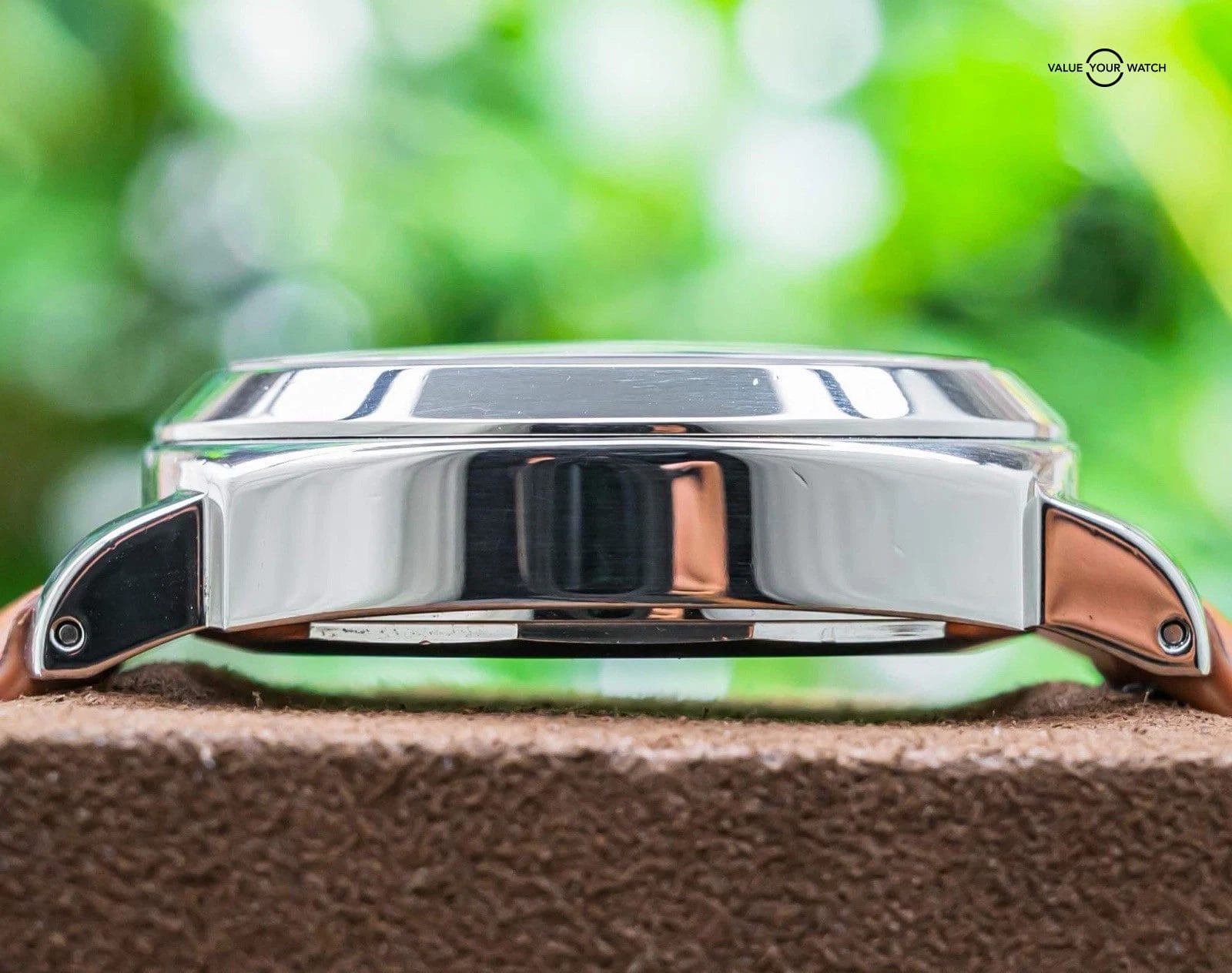 The watch is in good condition with minor typical wear as pictured including some dings, nothing notable. SERVICED at my watchmaker in August 2024 and is keeping good time on my timegrapher when tested! Do excuse dust/lint in the pictures as all of our watches are photographed outdoors in natural lighting/conditions. A classic Luminor is needed in any watch collection, such a clean look!