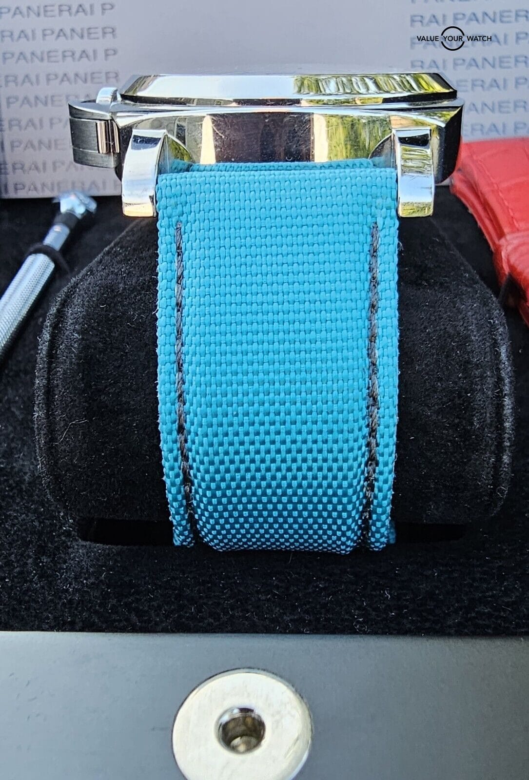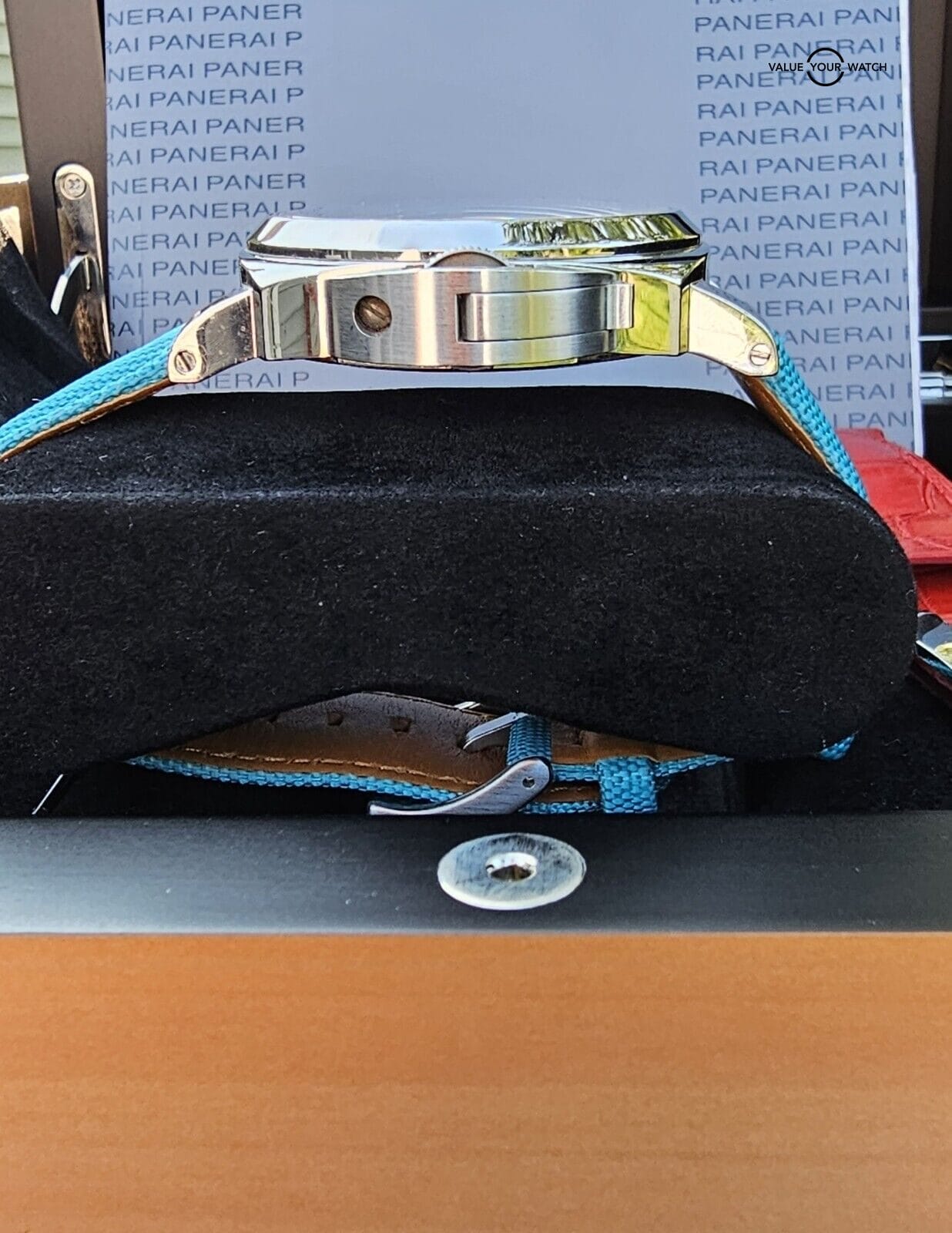 Panerai 561 PAM00561, limited numbered edition #581/1000. Double Boxed, with booklet, serial stickers, strap tool, Red Panerai Gator Leather Strap and Panerai buckel, and an extra after-market nylon blue strap. I have many additional extra straps of different styles, materials, and colors. This watch was previously authenticated, and a report can be provided upon request.