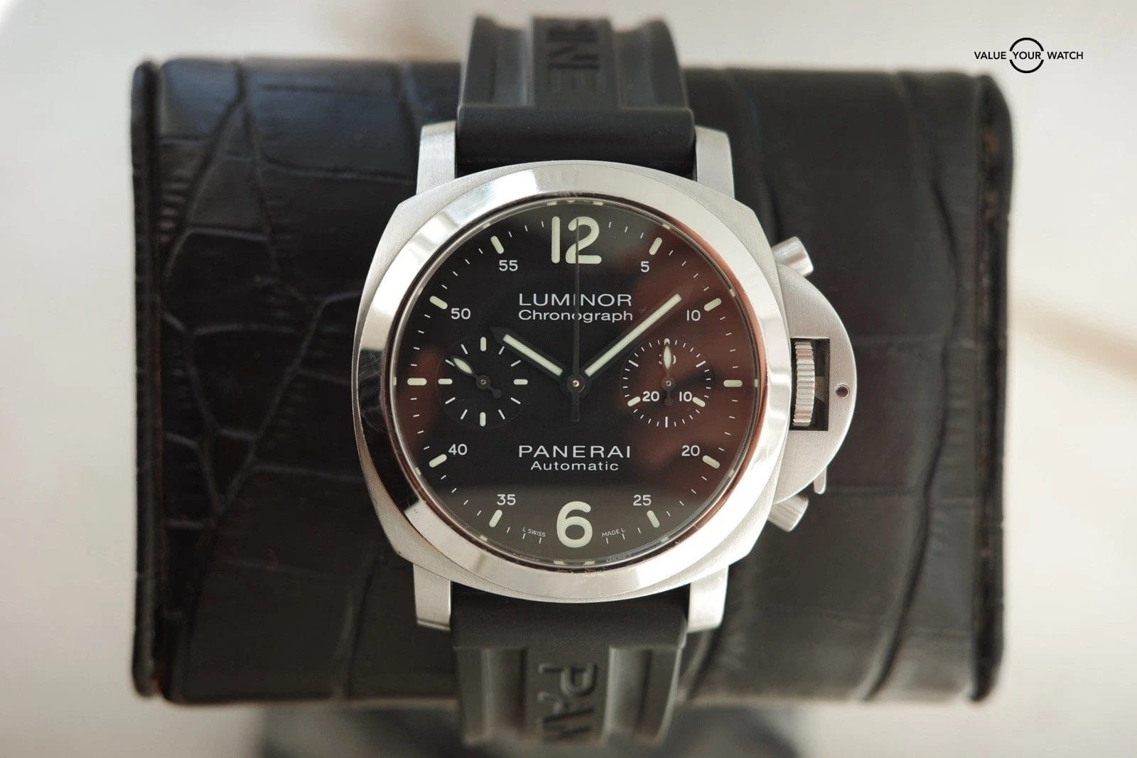 Specification: Panerai Luminor Chronograph 40mm Black Dial Steel Mens Watch PAM00310