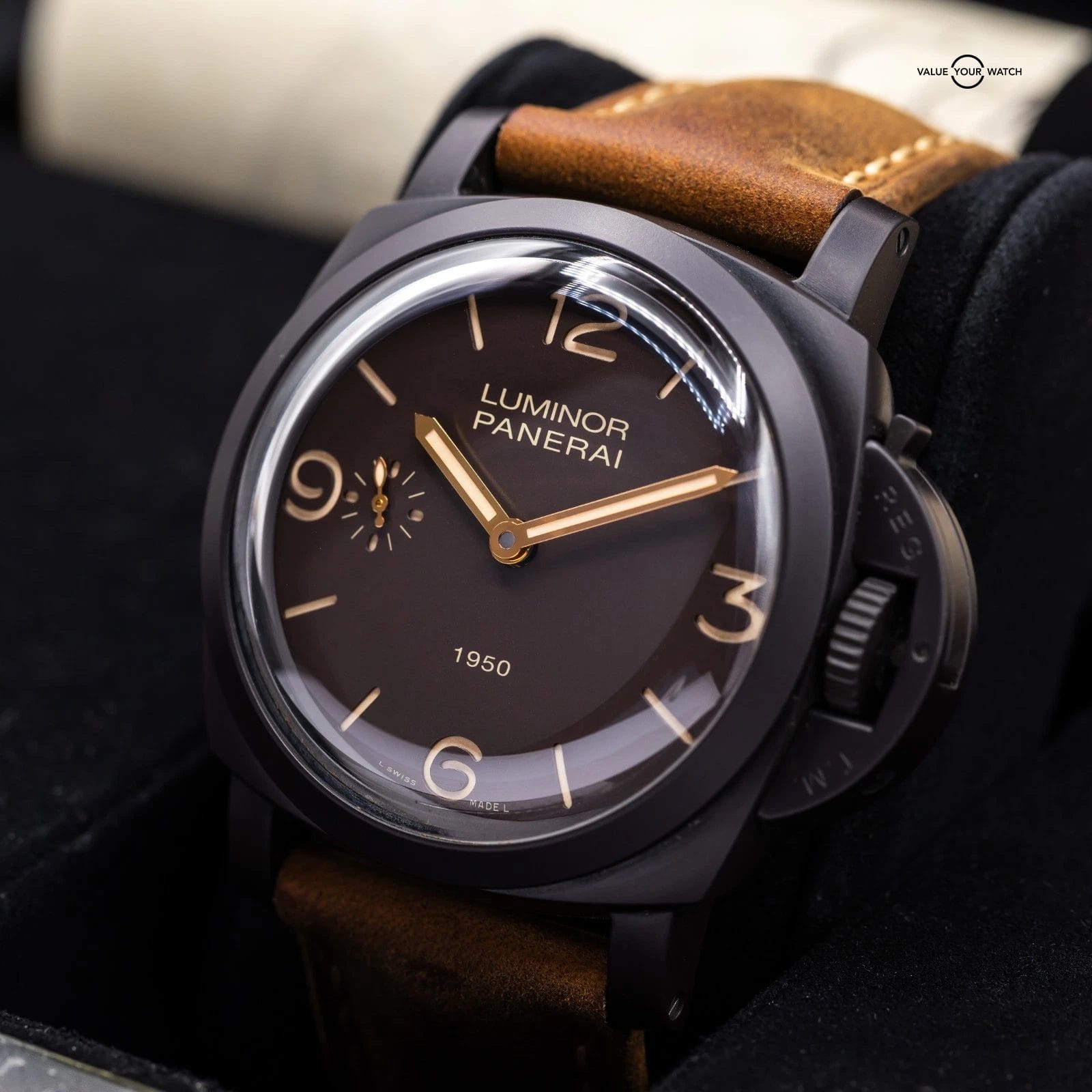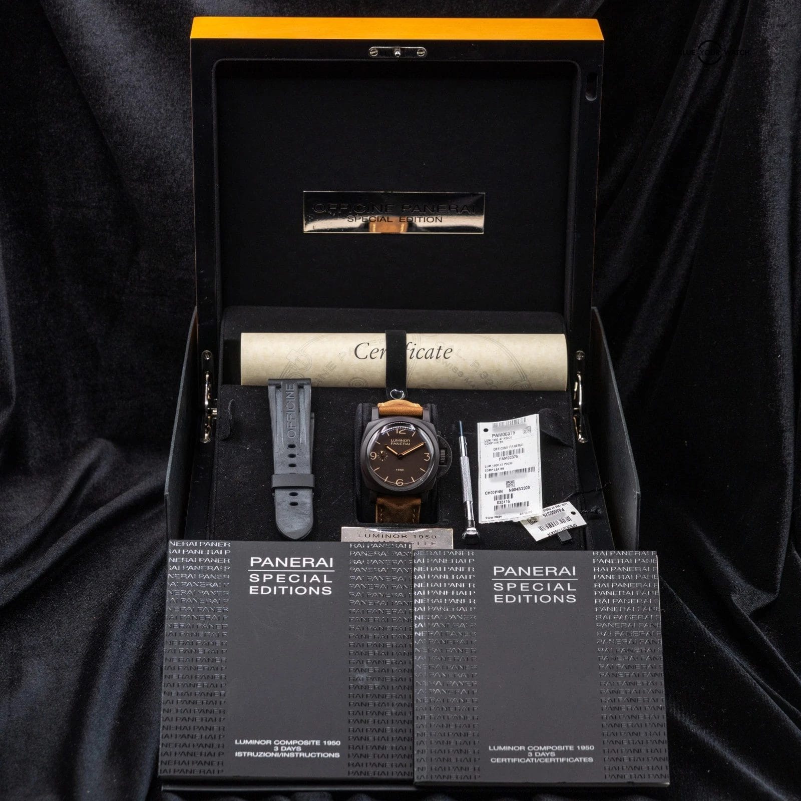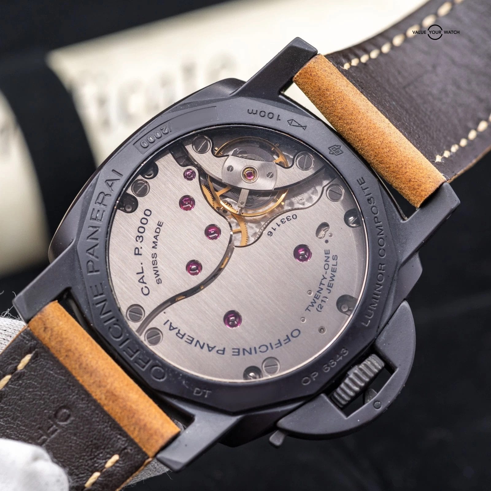 Up for sale here is a very cool special material limited edition by Panerai. The Composite case is made from Aluminum that is subject to Plasma Electrolytic Oxidation, which essentially grows a thick and very hard crystalline layer on top of the aluminum. At 47mm, this timepiece is still lightweight and very comfortable on the wrist! Ref. PAM00375