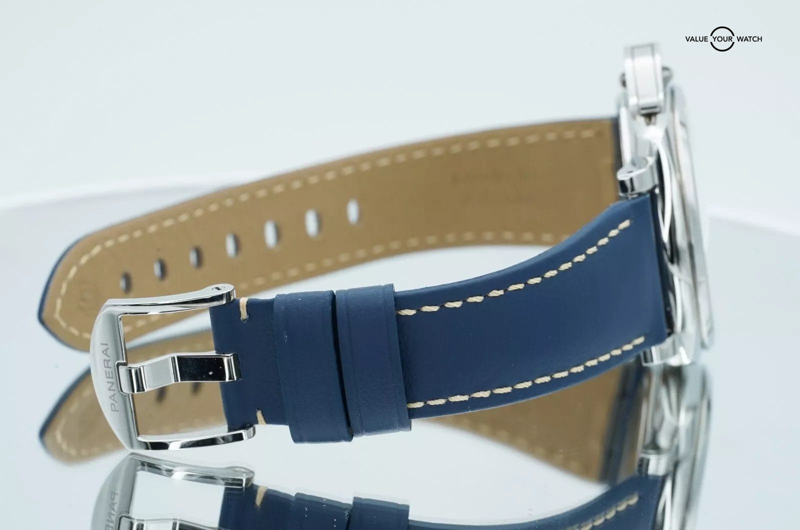This beautiful timepiece comes with the outer cardboard box, outer black box, inner pearwood box, instruction manuals, hangtag, case cover, cloth, 2 Panerai straps (brown calfskin is unworn), and warranty card (Dated in March 2022). The watch is in excellent pre-owned condition. The watch is in excellent pre-owned condition with light cosmetic wear on the case. Pay close attention to the pictures as they accurately describe the condition. Mechanically the watch is functioning as it should. Serial numbers and names are blurred in photos only for privacy reasons.